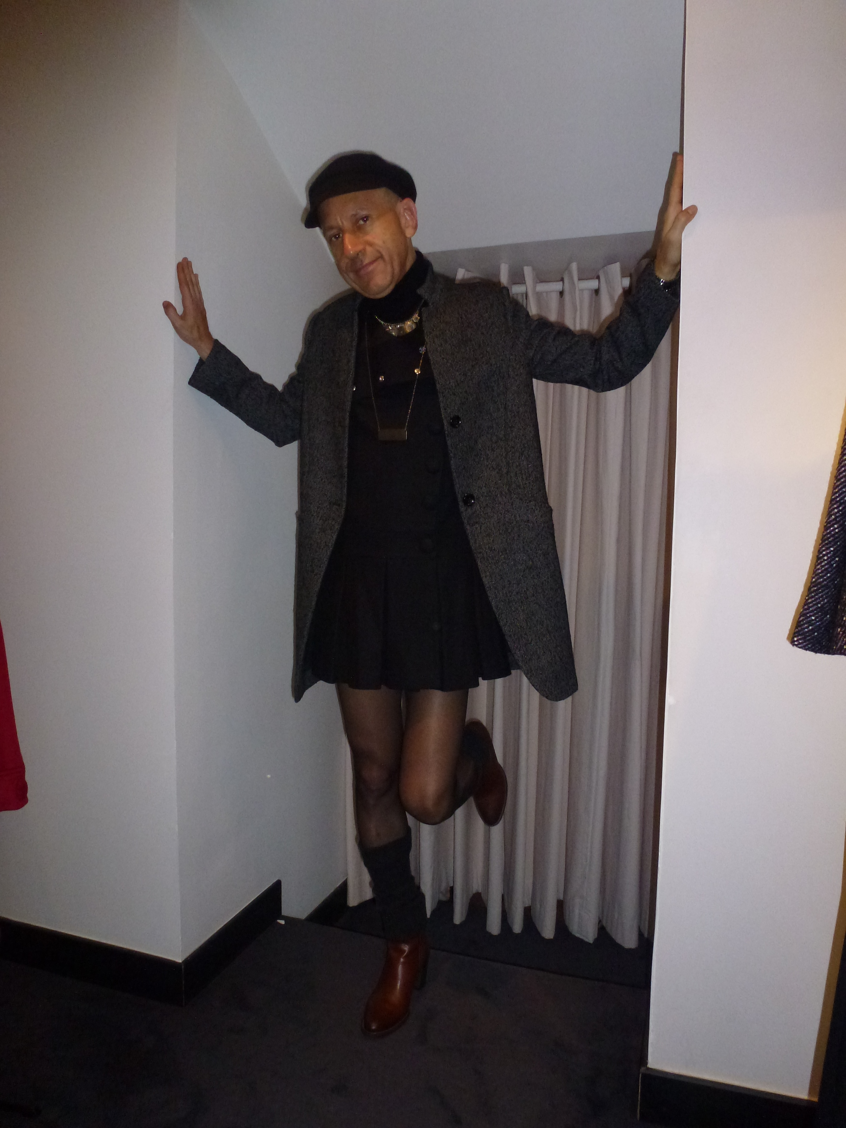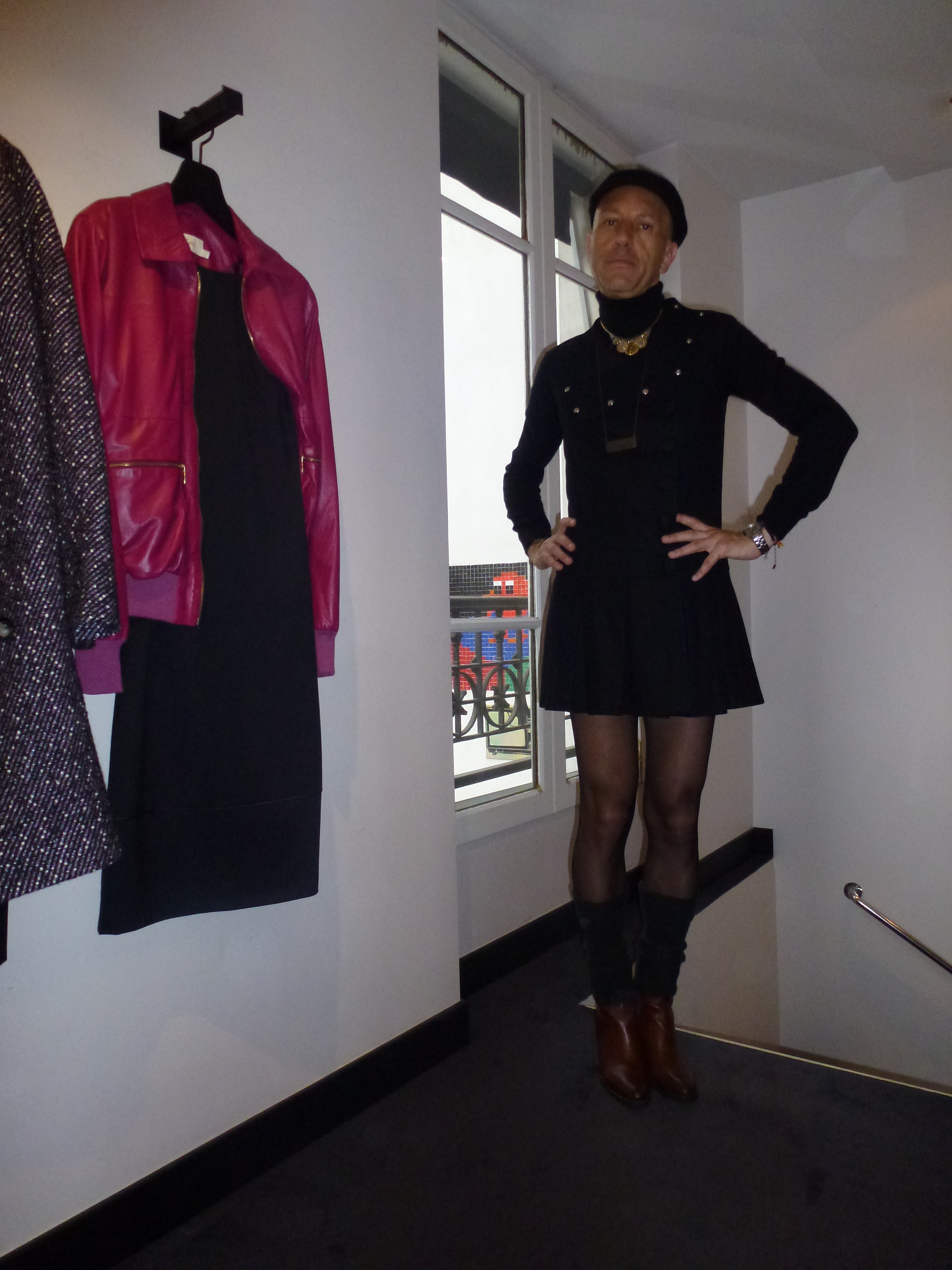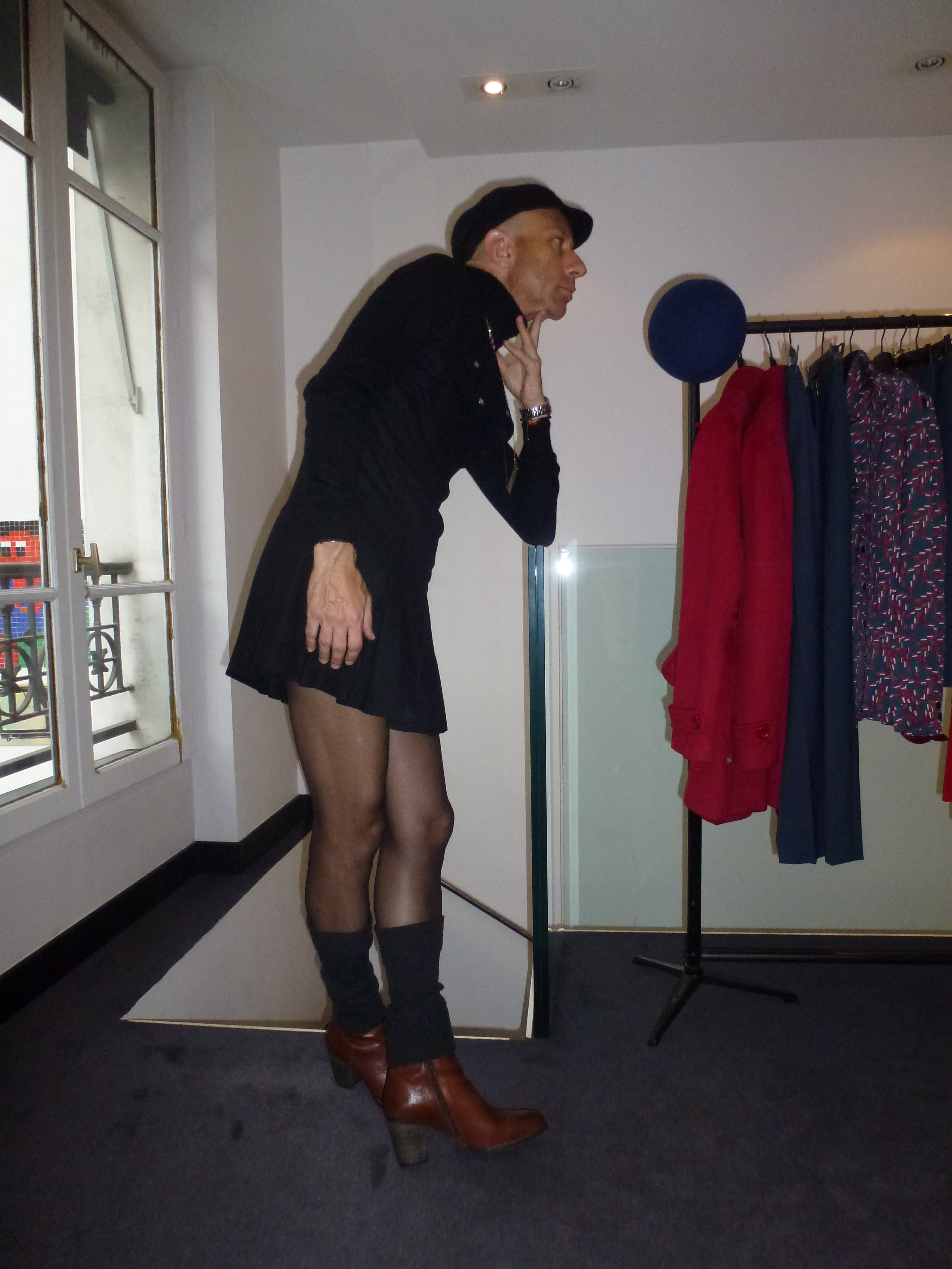 Robe et manteau: BGN; collants et chaussettes: Falke; chaussures: Les Petites Parisiennes; collier: Satellite; sautoir: Clara Jasmine Bijoux; casquette: H&M.