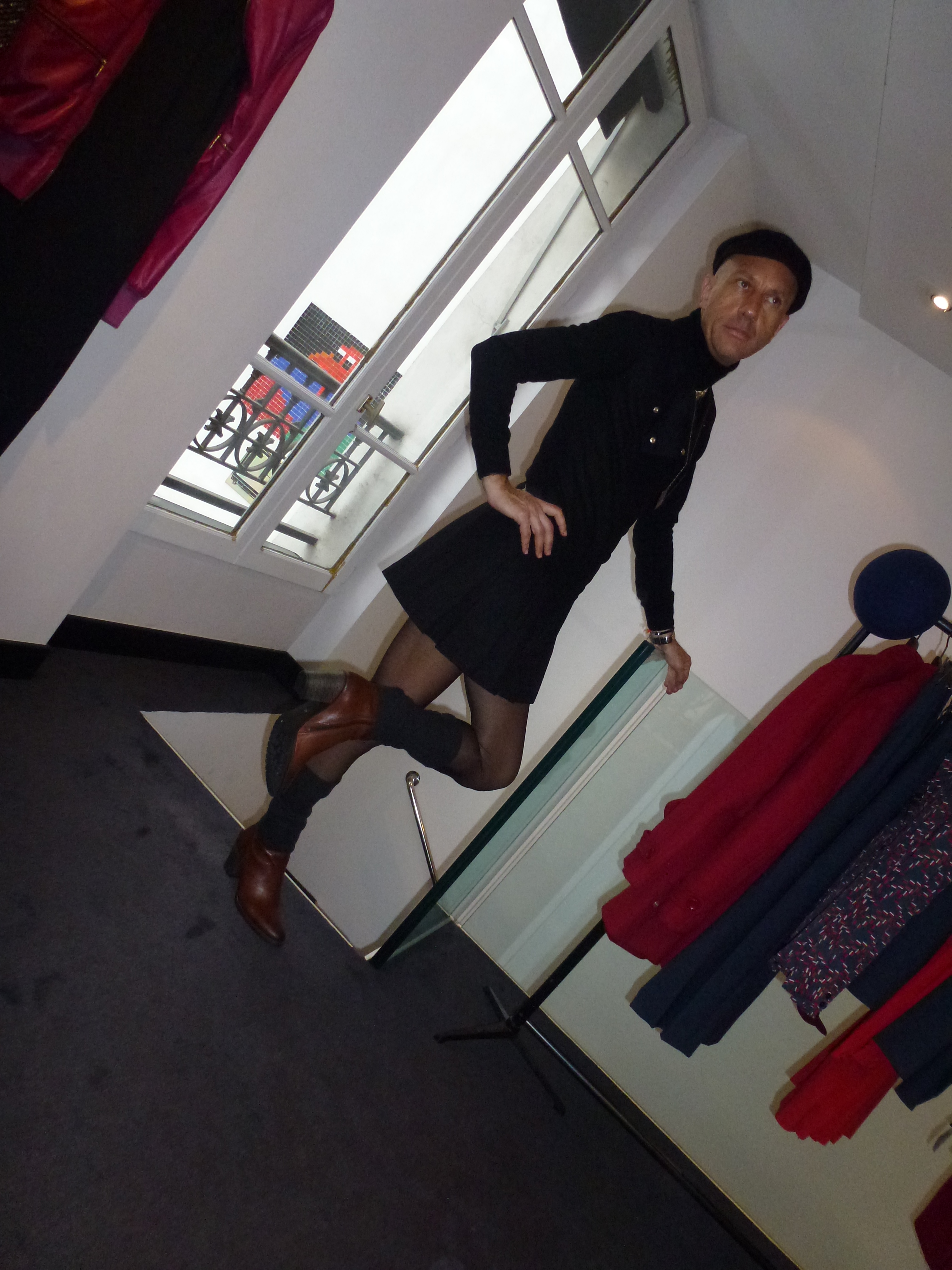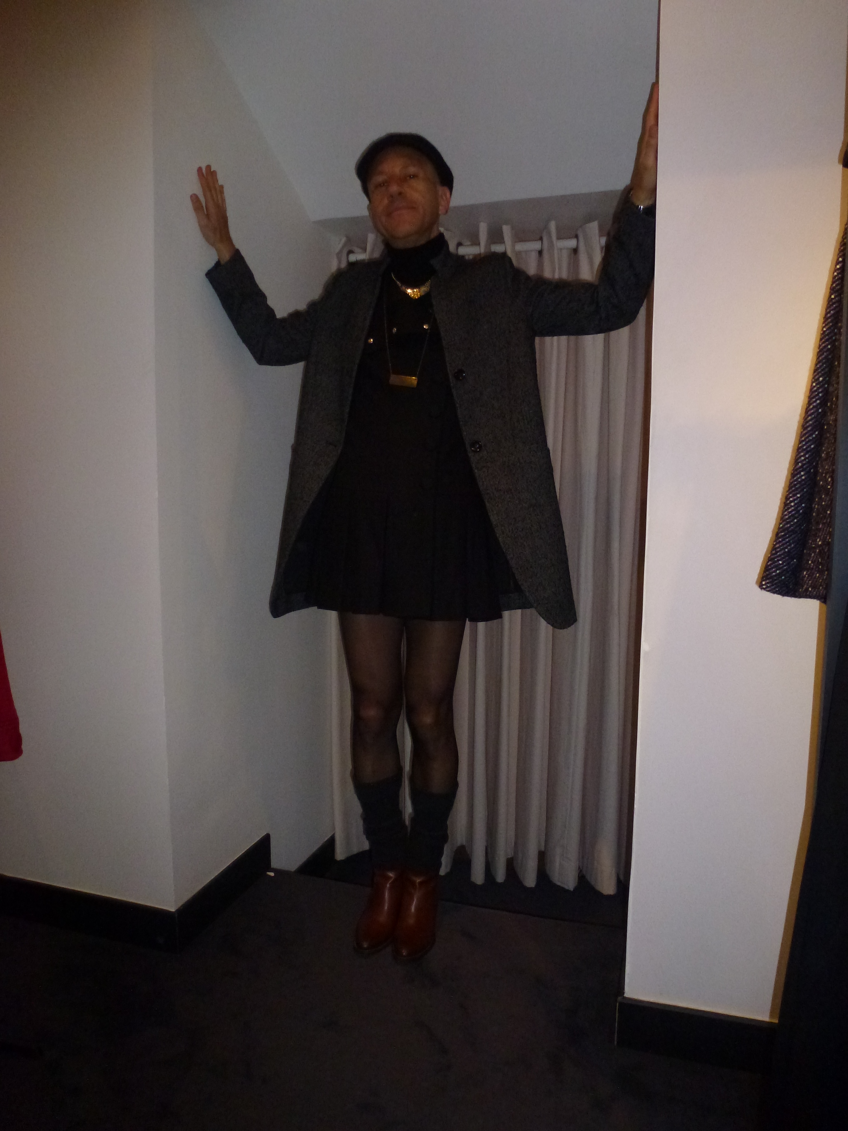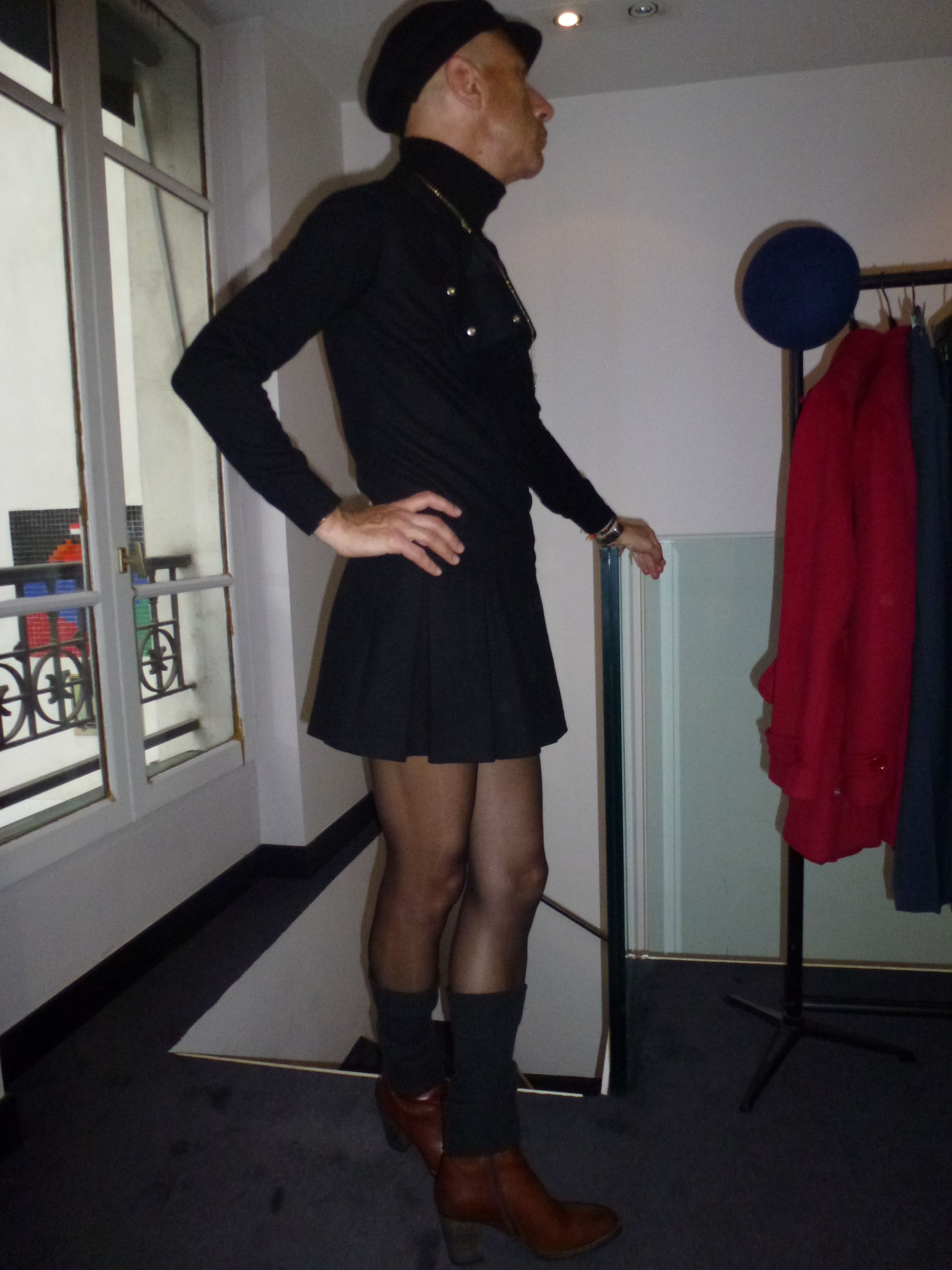 Robe et manteau: BGN; collants et chaussettes: Falke; chaussures: Les Petites Parisiennes; collier: Satellite; sautoir: Clara Jasmine Bijoux; casquette: H&M.