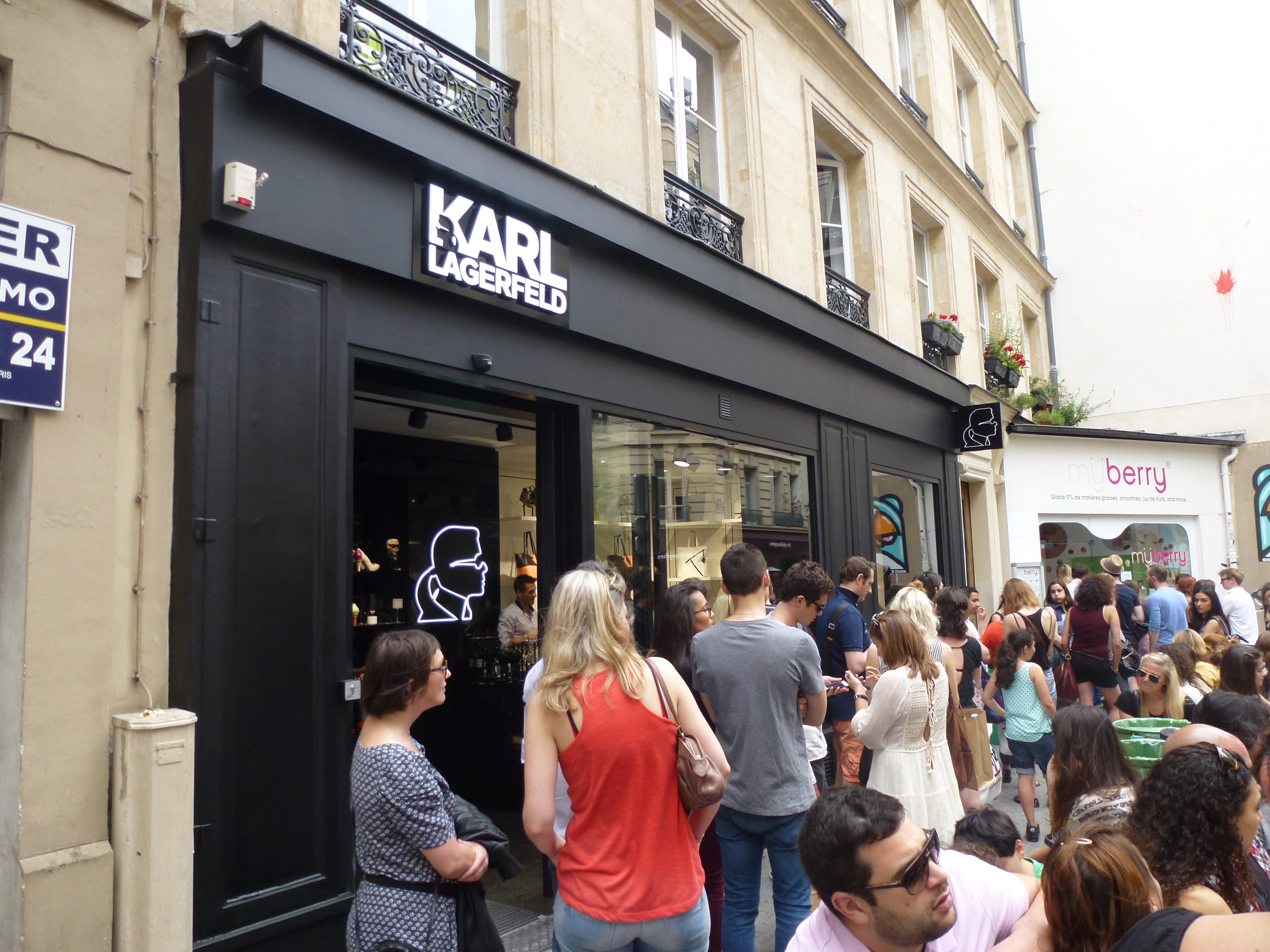 Je suis aussi passé à la boutique Karl Lagerfeld ouverte depuis vendredi au 25 rue Vieille du Temple (ex-café Colombus): la boutique est petite, mais bien agencée et l’accueil est très sympathique. On y trouve de très belles pièces homme/femme et la patte de Karl est bien présente avec des détails qui font la différence. Prix abordables. J’ai craqué pour un joli tee-shirt jaune fluo: coupe près du corps parfaite, tissu agréable au toucher et à porter, la tête de Karl en motifs très discrets, prix 69€.