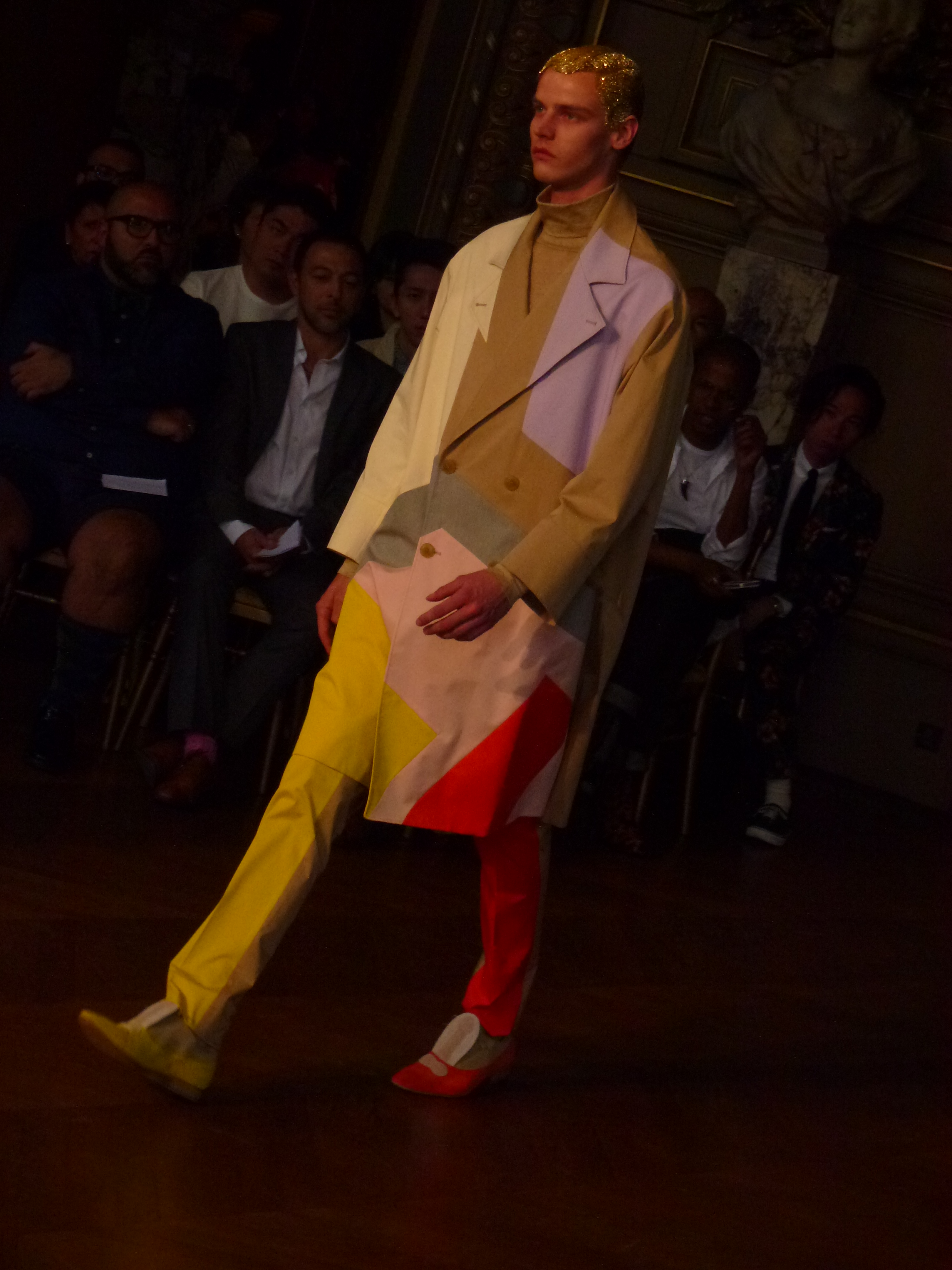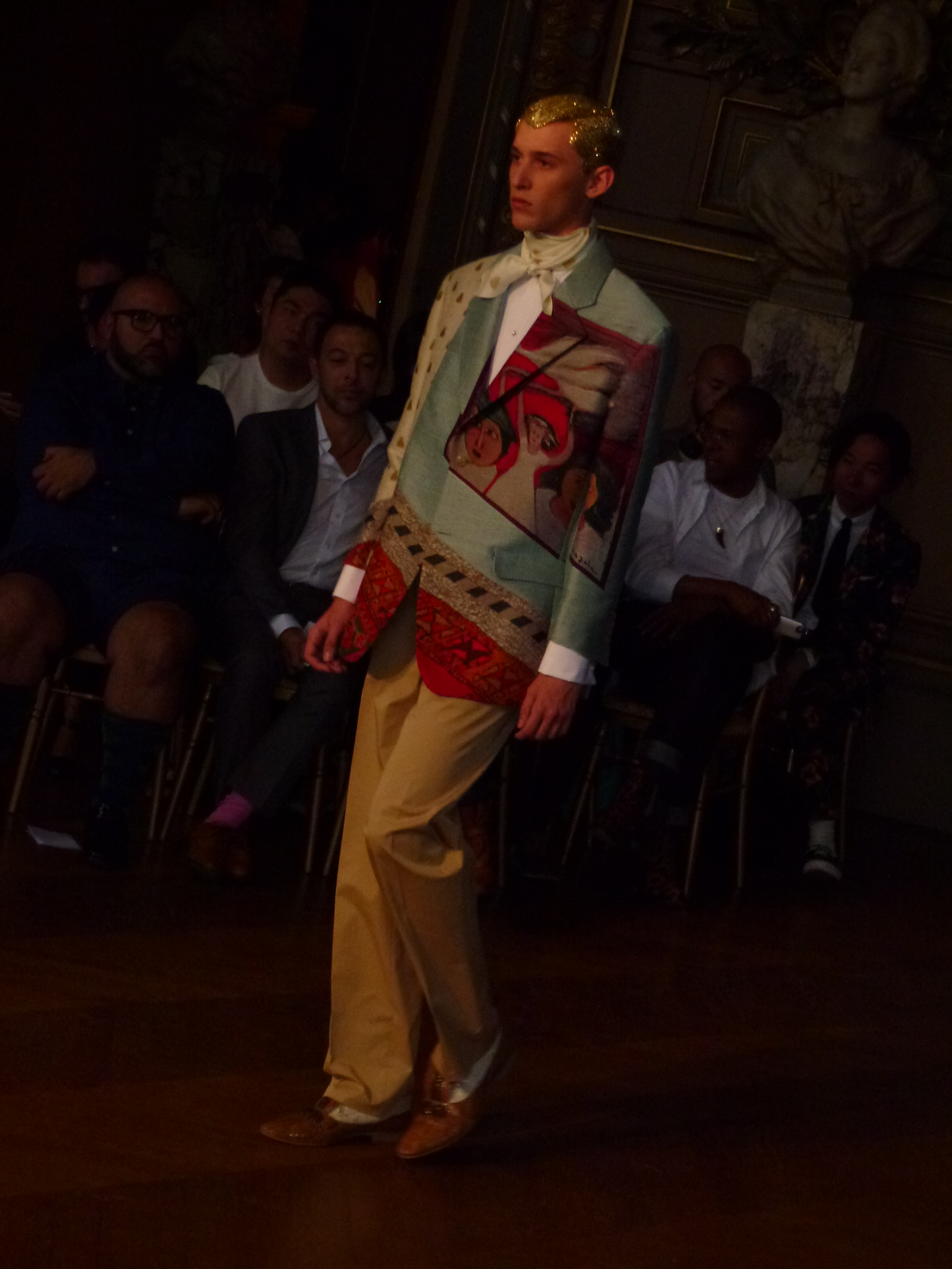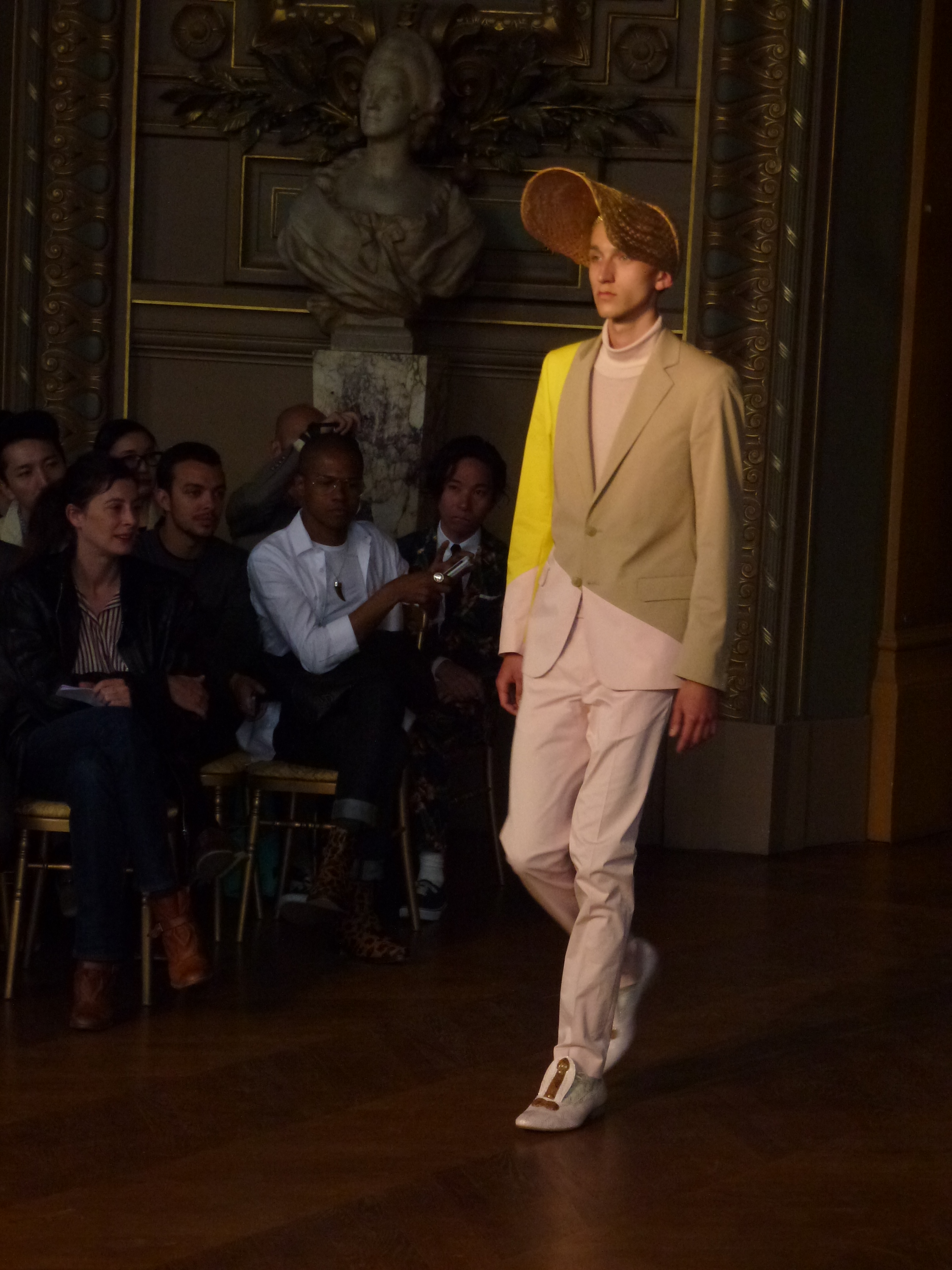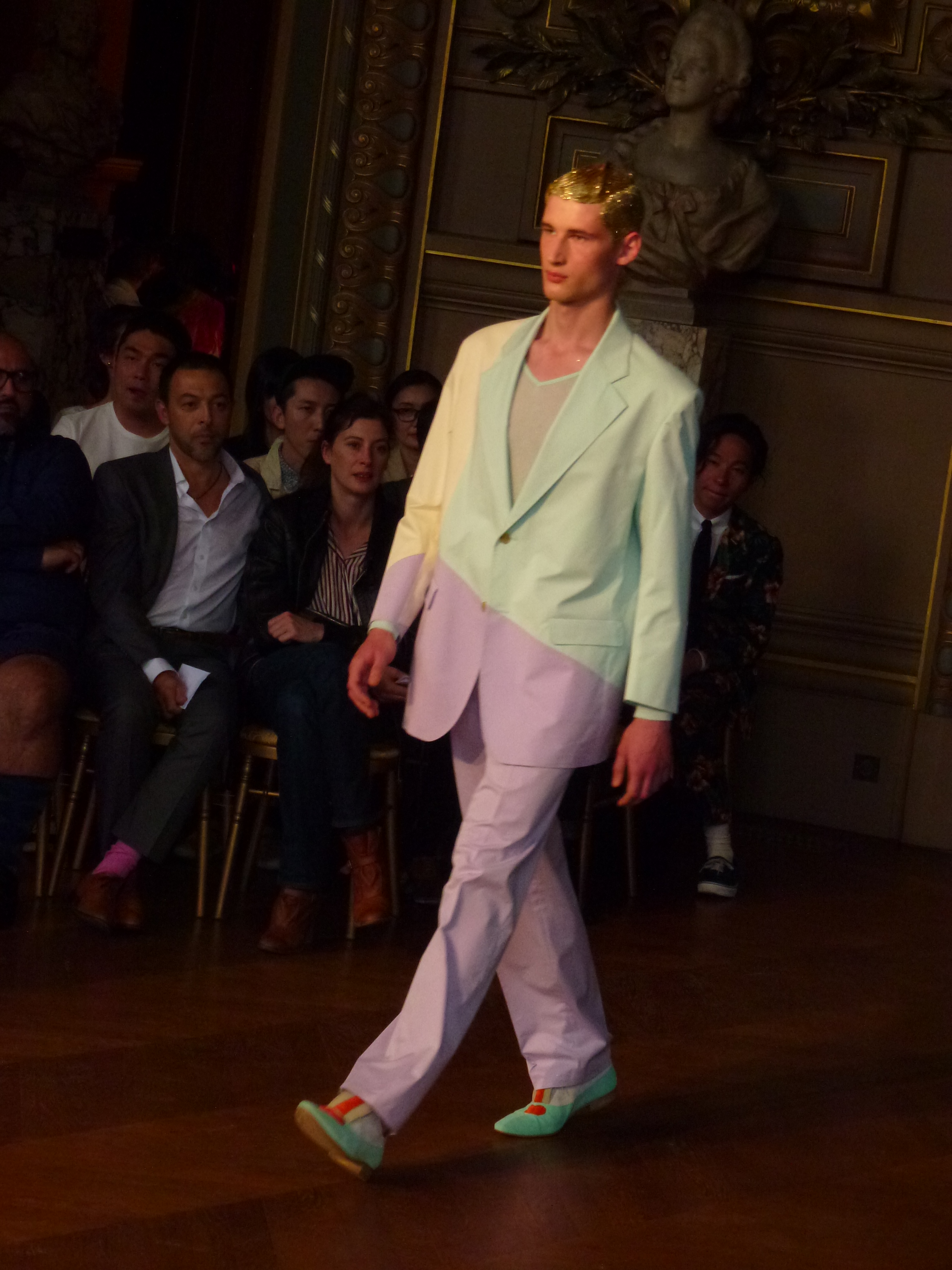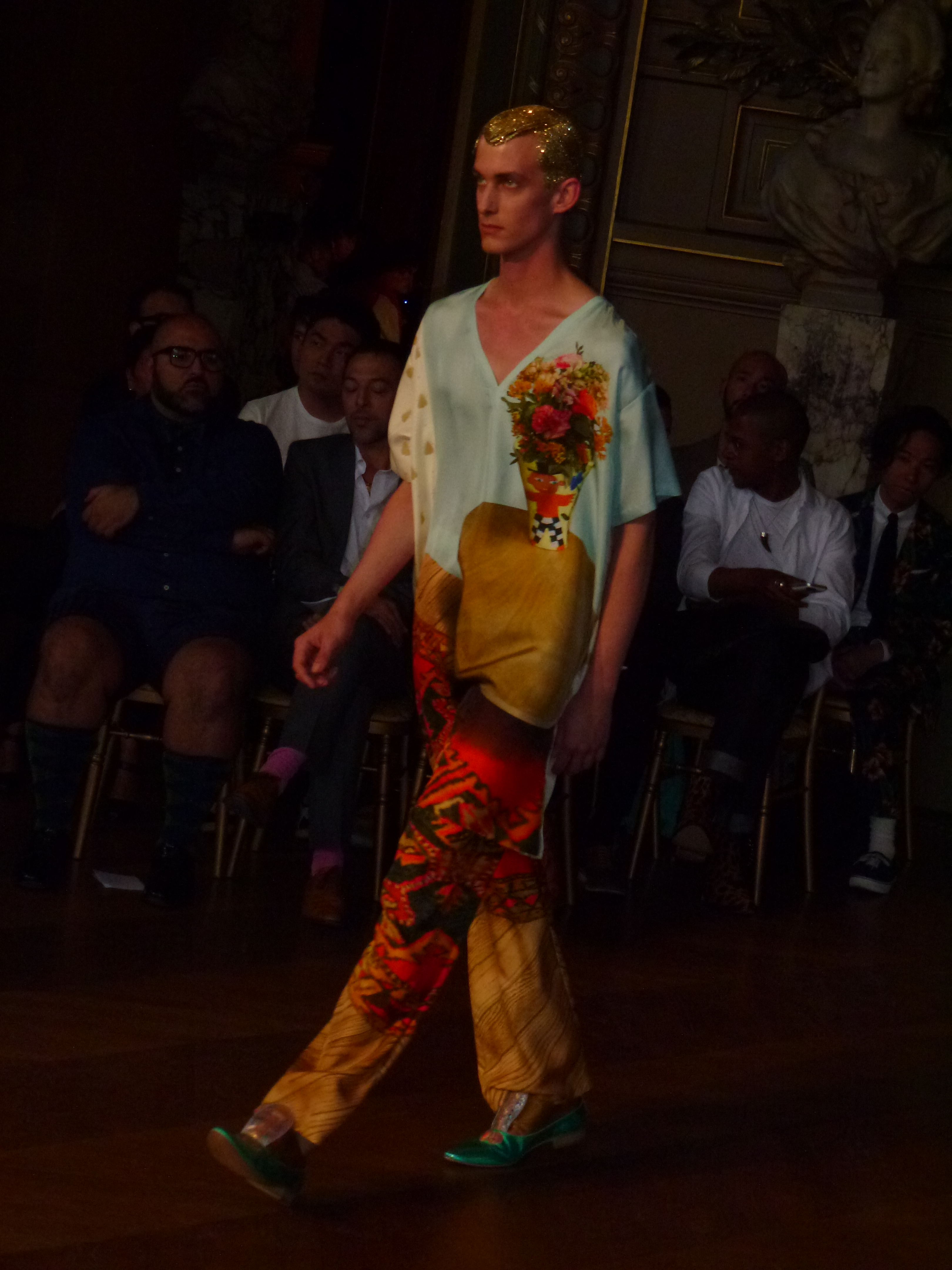 Ensuite, Walter van Beirendonck à la Rotonde du Glacier du Palais Garnier (Opéra de Paris): un défilé somptueux, très couture, des tenues très fraîches avec un jeu subtil des couleurs.