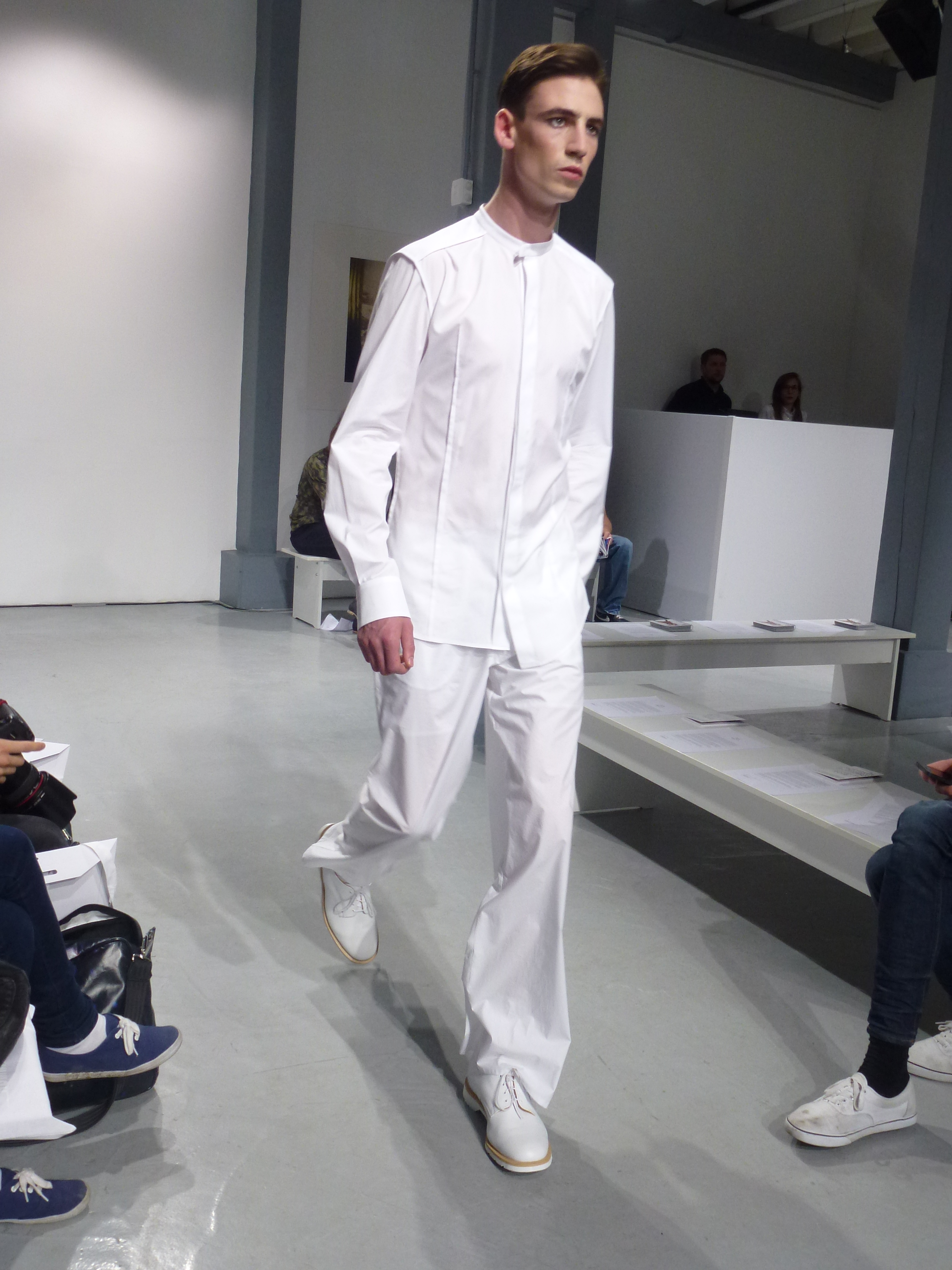 J’ai pu assister au défilé « 22/4 _Hommes _Femmes »: une collection complètement androgyne, d’inspiration sportswear, un choix de matières nobles et des finitions méticuleuses, une impression de légèreté et de pureté en blanc et bleu dominants: