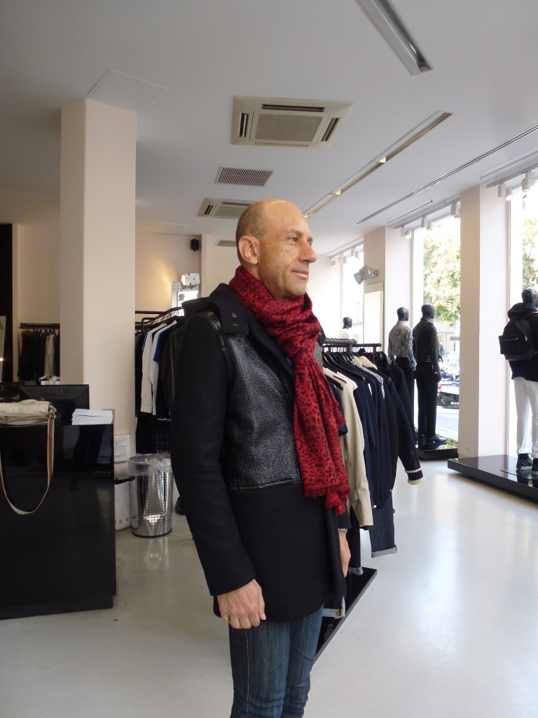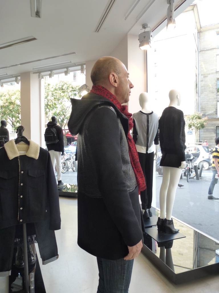 Parmi la collection Sandro hiver 2013/2014, que je trouve dans son ensemble d’une grande sobriété, j’ai craqué pour ce joli manteau noir (modèle « Mardi »): court, bien coupé, bi-matière avec une partie brillante qui donne un aspect moderne, et avec une capuche qui donne du style. A assortir avec une jolie écharpe (également Sandro collection hiver 2013/2014) d’un rouge assez vif qui se combine bien avec le noir brillant. Ici porté avec un jean slim, pour une tenue pouvant être mise pour aller travailler.