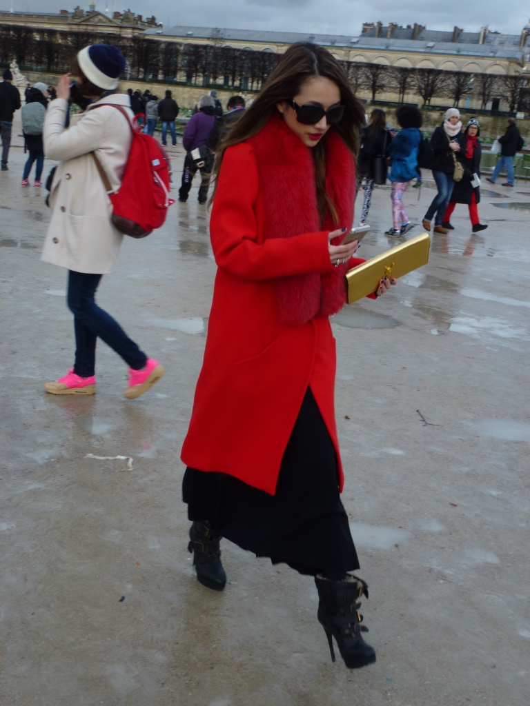 Le meilleur du streetstyle du lundi 3 mars (photos prises aux abords du défilé Elie Saab à l’Espace Ephémère Tuileries, dans le Jardin des Tuileries, après une grosse averse!):