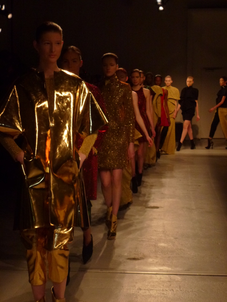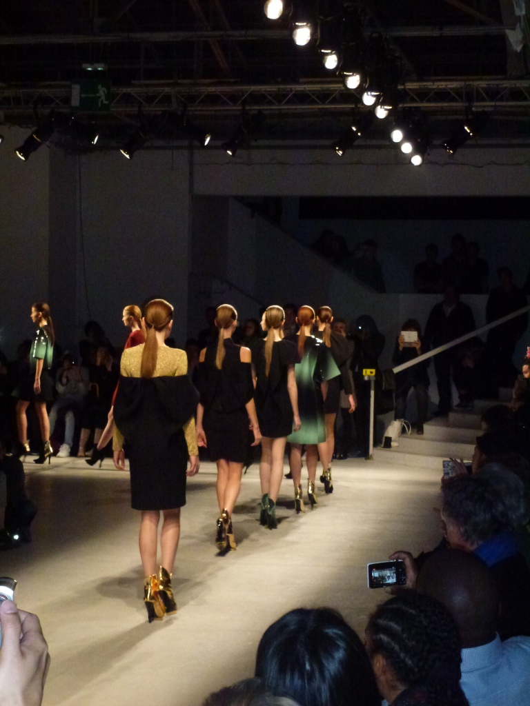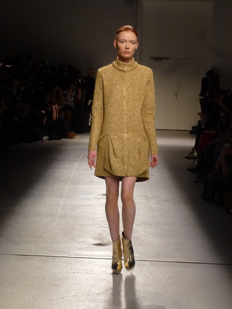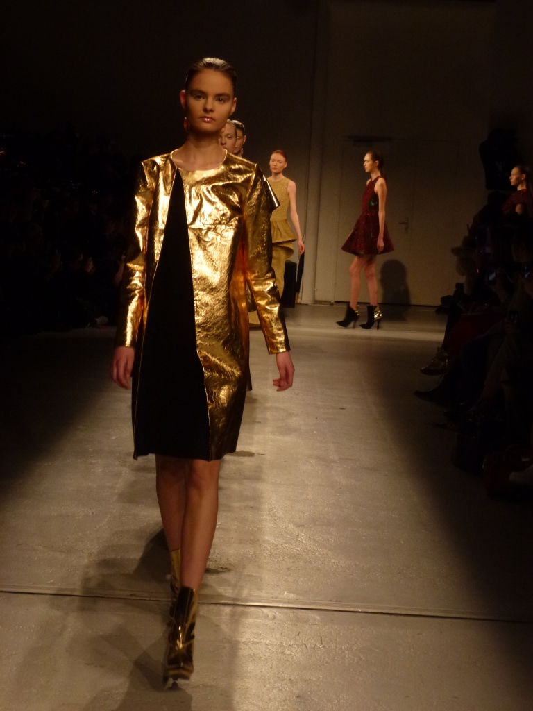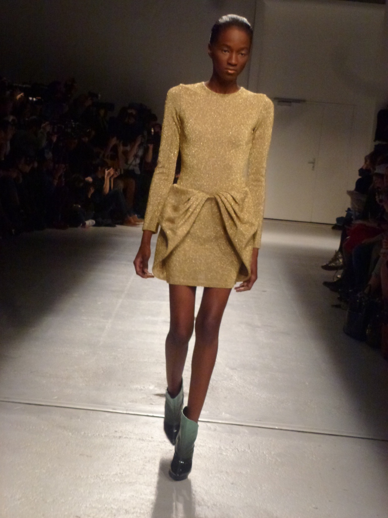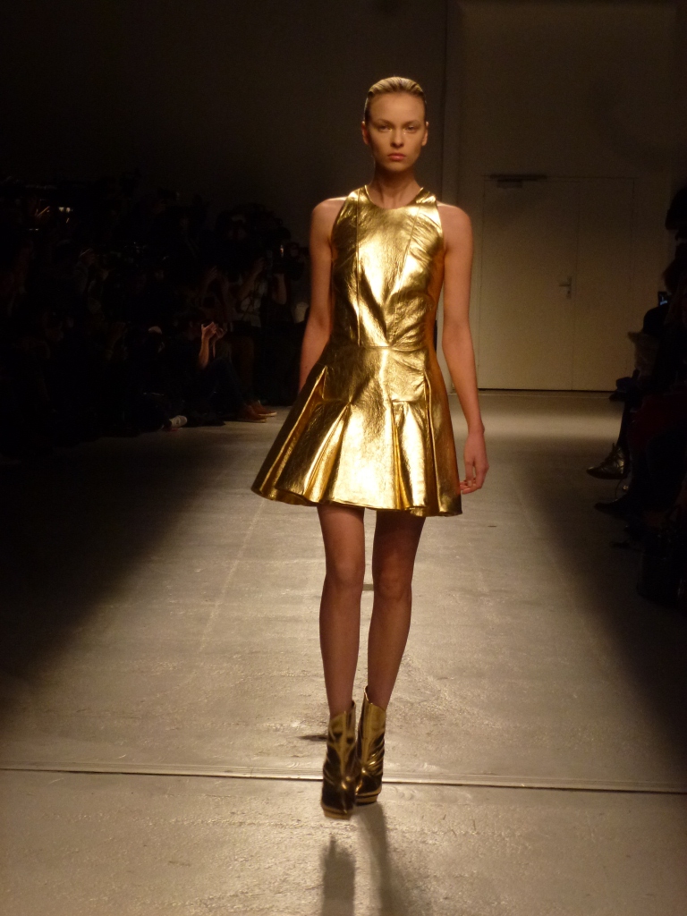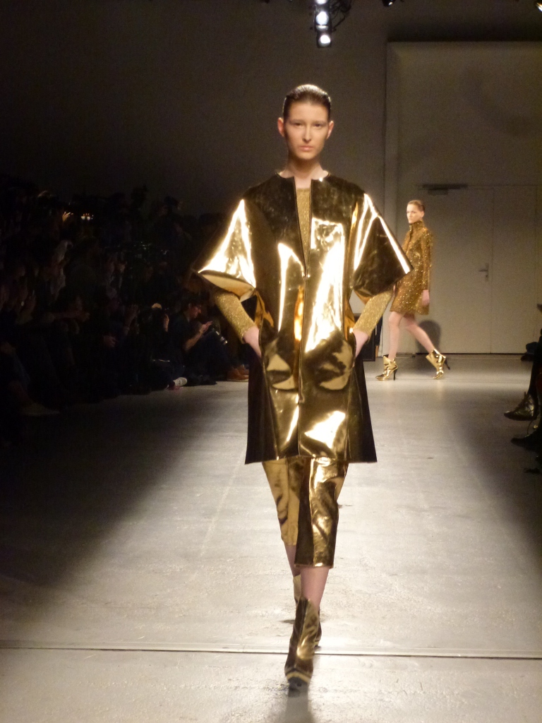 Défilé Amaya Arzuaga au Palais de Tokyo: somptueux, le grand chic, cuir or et vert dégradé du plus bel effet!