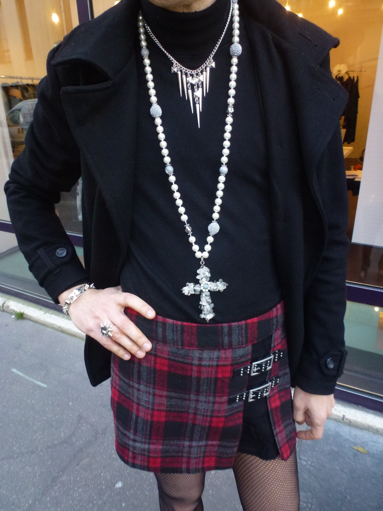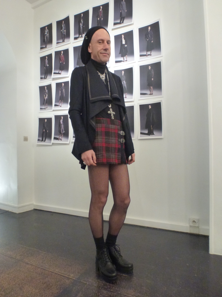 Dans l’attente d’un temps plus printanier sur Paris, je vous propose un look de mi-saison délicieusement rock, pour ne pas renoncer à montrer ses gambettes! Ces photos ont été prises en mars dernier dans le prolongement de la Fashion Week, à l’occasion de l’ouverture dans le Marais d’un nouvel espace permanent de présentation des collections du créateur Gustavo Lins (5 rue Barbette, Paris 3ème). J’ai notamment pu essayer une superbe « veste-écharpe » de la collection Automne/Hiver 2014/2015 (deux dernières photos), qui allait très bien avec ma tenue du jour et qui comporte plusieurs éléments faisant tout le charme de cette marque très créative (drapés, volants, torsions/spirales, dans des coupes plus ou moins déstructurées).