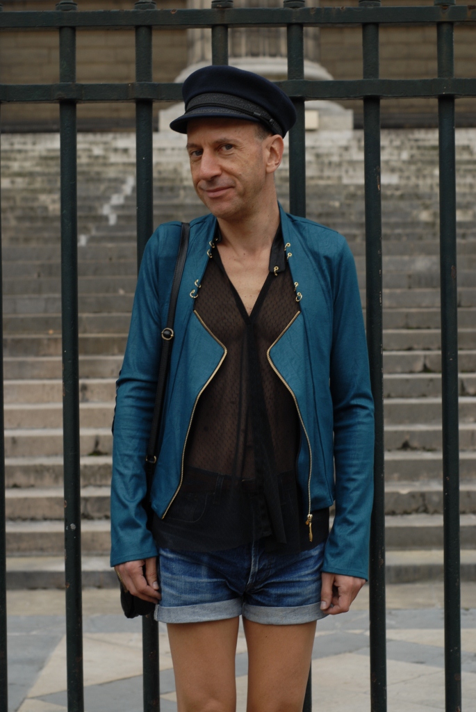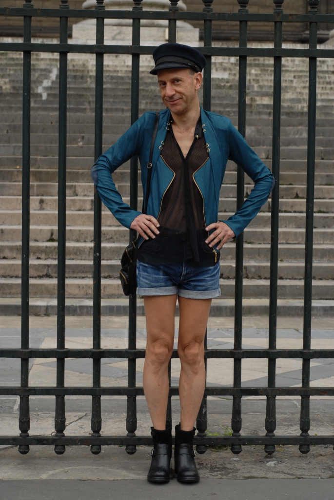 Je vous propose aujourd’hui une sympathique tenue de mi-saison, pleine de mélanges. Belle combinaison du bleu du short et de la veste avec le noir du top, mais aussi du côté brut du jean avec l’aspect raffiné de la veste et surtout du top en dentelle transparent. Les accessoires sont incorporés dans les vêtements grâce aux piercings dorés sur le top et la veste. Les chaussures et la casquette concourent à la touche rock du look.