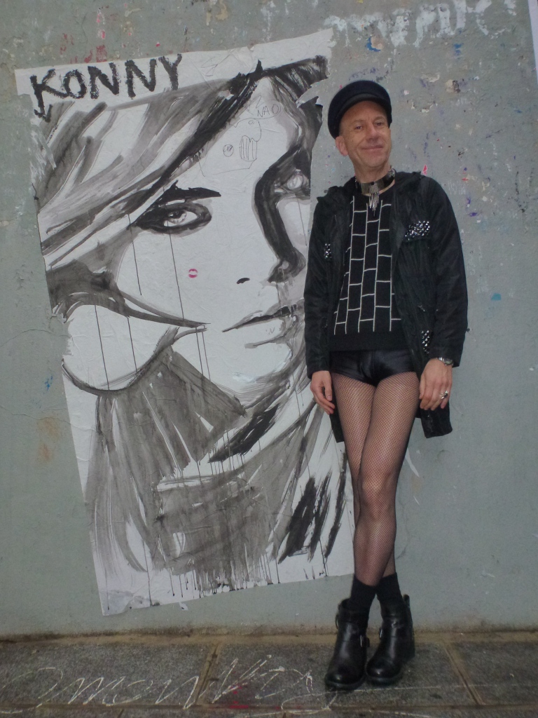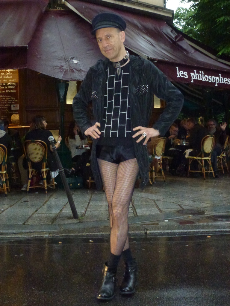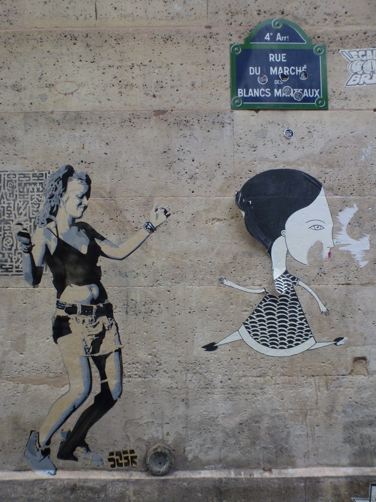 Petit shooting entre deux averses: l’occasion d’un clin d’oeil à quelques-unes de mes adresses préférées dans le Marais: café-restaurant Les Philosophes (excellente cuisine, 24 rue Vieille du Temple), galerie Carré d’Artistes (qui soutient les jeunes – et moins jeunes – créateurs, et permet aux amateurs d’art d’acquérir des oeuvres uniques à prix abordables, 29 rue Vieille du Temple), et aussi le street-art qui s’affiche sur les murs du Marais.