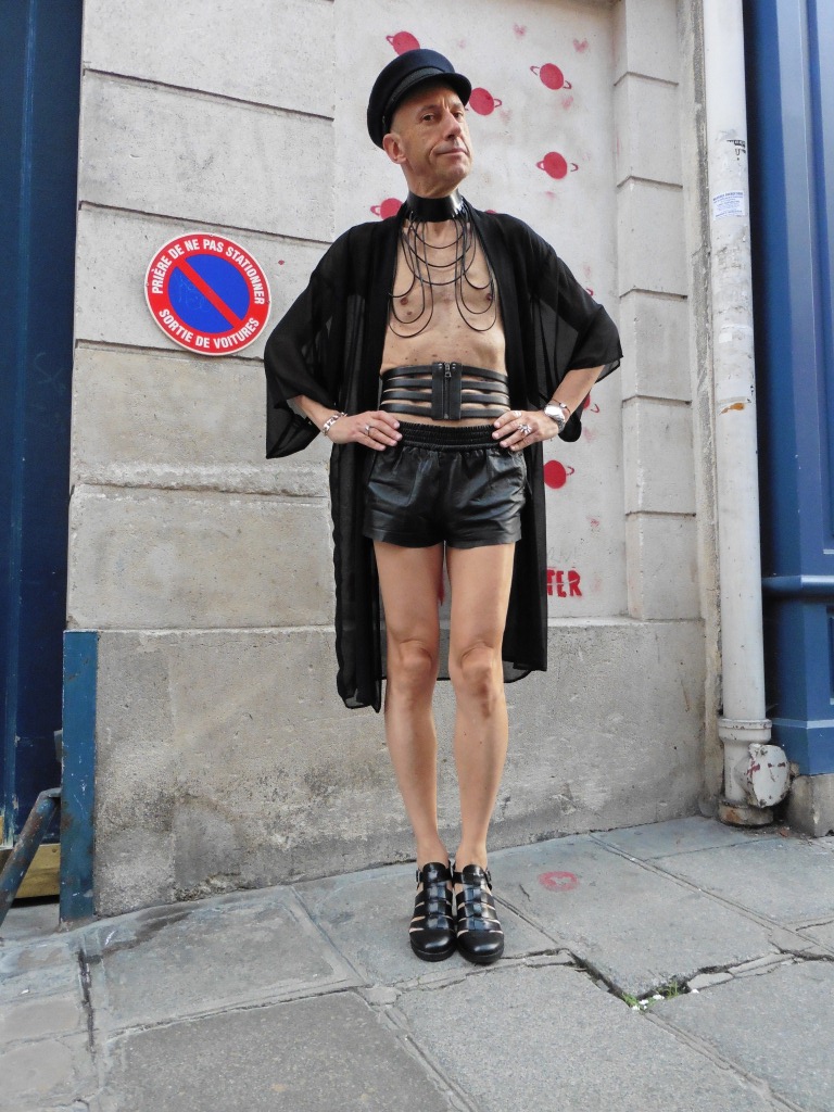 Le collier DSTM donne son plein effet à même le corps. Le look peut naturellement être adapté en gardant la couleur peau (qui contraste avec le noir) avec un body et des collants transparents.