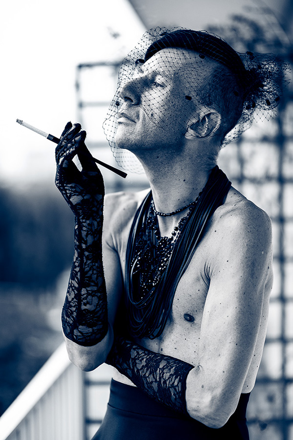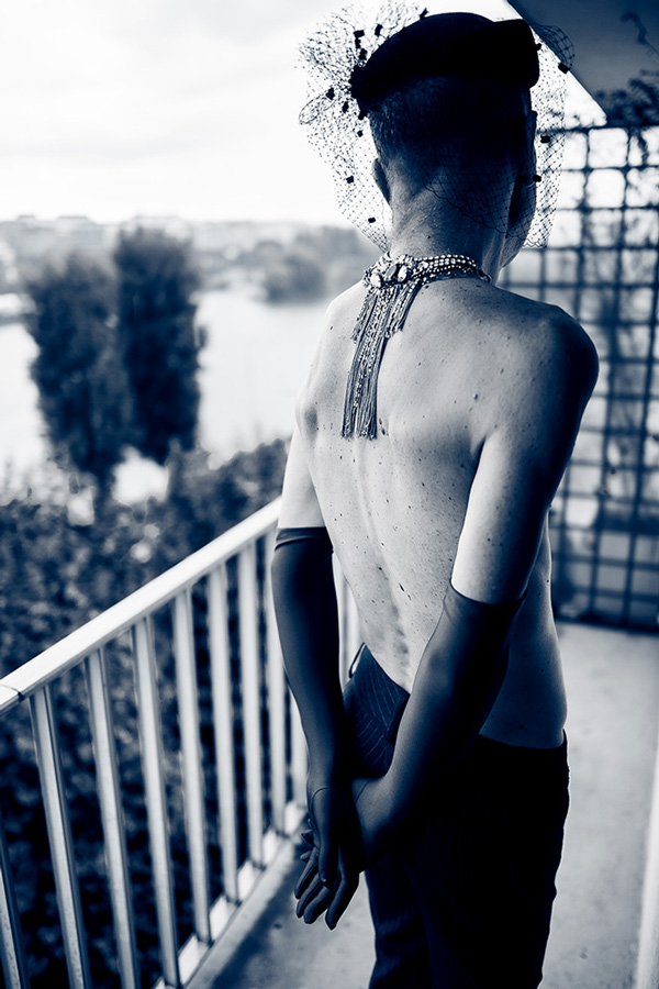Après le « shooting de rêve » de cet été que vous avez beaucoup aimé, voici un autre superbe shooting, en région parisienne cette fois. Alexandra Reznik, styliste et illustratrice russe qui en a assuré le stylisme, a bien voulu nous parler de son inspiration en quelques mots: « Tout le monde connaît François comme quelqu’un de différent des autres. Il crée son propre style avec toutes ces jupes et robes courtes incroyables qu’il affectionne, ou bien avec des shorts et tenues de ce genre. Il est devenu une personne qui ne passe pas inaperçue et je l’ai vraiment adoré dès que je l’ai vu pour la première fois à la Fashion Week parisienne de l’été 2013. Mon amie et grande photographe ukrainienne Daria Nelson rêvait de réaliser un shooting créatif et d’exception avec lui depuis le jour où elle a vu ses photos sur mon profil facebook. Nous avons donc décidé de travailler ensemble. Comme tout le monde connaît François comme un homme qui porte des robes ou des jupes fabuleuses, j’ai pensé qu’il fallait lui faire porter un pantalon. Mon idée de départ était d’imaginer un homme avec un look inhabituel dans le quartier d’affaires de La Défense. Le temps n’était malheureusement pas de la partie et nous avons dû prendre les photos sur le balcon. Finalement c’était mieux! Nous avons pu composer différents looks en choisissant parmi ses magnifiques bijoux, chaussures, chapeaux. Nous étions comblées et tout excitées de réaliser ce shooting inédit pour Monsieur « Lutin En Folie »! Et j’ai été encore plus abasourdie quand j’ai découvert le travail de Daria: le résultat était de toute beauté! Elle a sa propre vision des choses. Lors de ce dernier séjour à Paris, nous étions obsédées par l’histoire de Jean Paul Gaultier et d’Yves Saint Laurent , et aussi par le film de Xavier Dolan « Laurence anyways » que nous avions tant aimé. Durant notre travail nous avions ainsi en tête la musique, les looks, les images et les souvenirs de tous ces très bons moments passés ensemble! Merci Daria! Merci François! » Et moi je rajoute merci infiniment Daria et Alexandra pour ce magnifique travail !!!