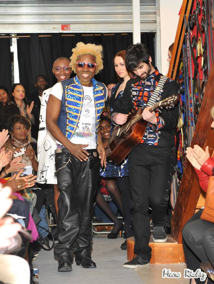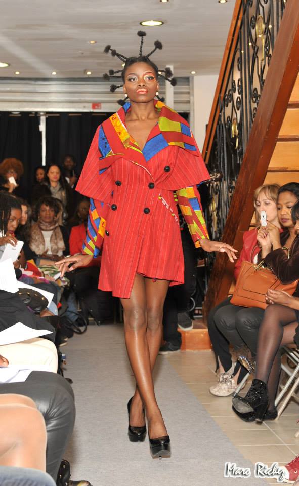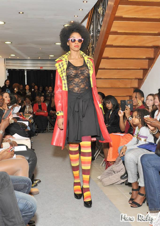 Défilé Anggy Haïf au même endroit: une collection dénommée Pulsion qui nous invite à un voyage Paris-Cameroun. Voyage entre le classicisme parisien et la folle musique africaine. Des coupes fortes, maîtrisées. Une étude sur le corps de la femme, une sublimation des courbes féminines. Des matières fortes, colorées: wax, soie, cuir, dentelle… Un mélange détonnant, subtil. Des associations millimétrées propres à la maison Anggy Haïf. Une esthétique forte, affranchie des codes, aboutie. Bravo!!!