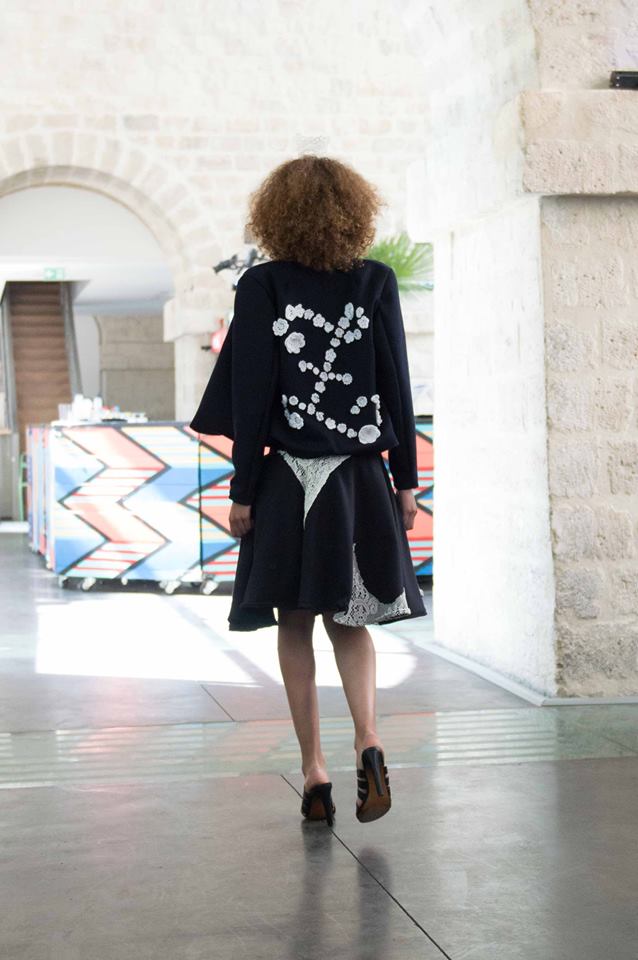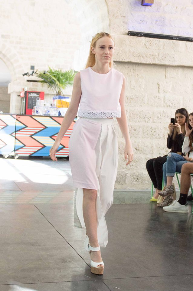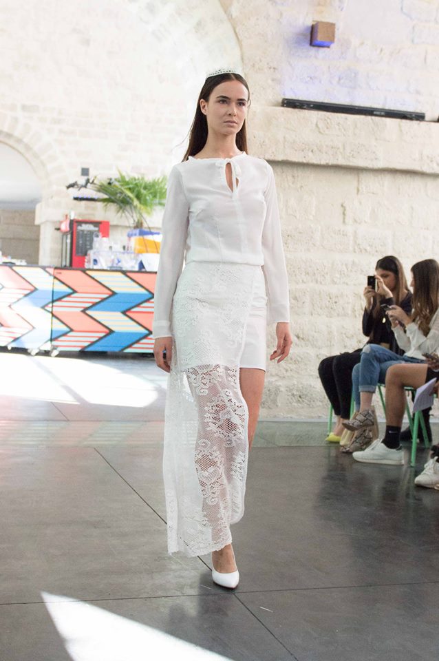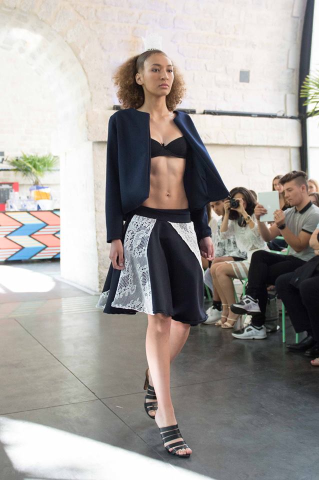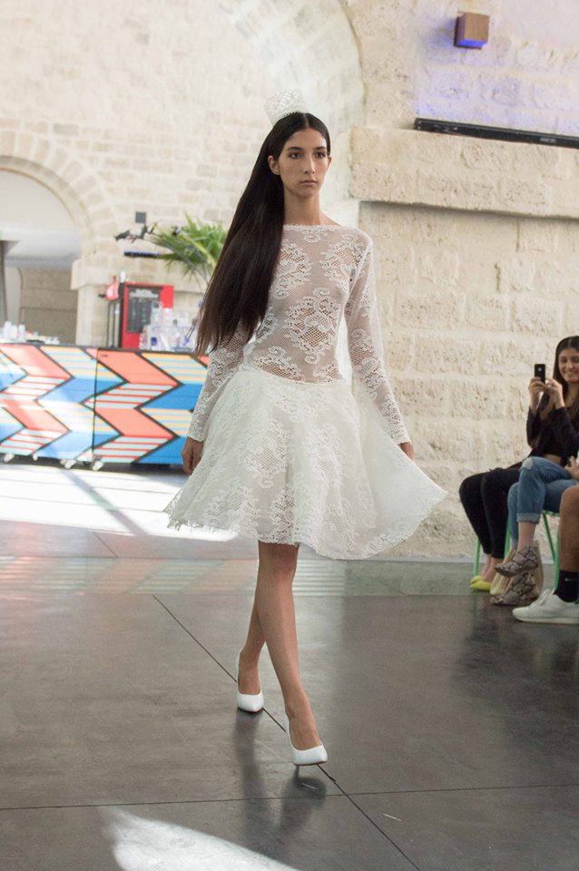 Défilé Reouven Zana au bar/café Echelle 1 (12ème arrondissement): première collection couture pour ce jeune créateur parisien de 17 ans! Autodidacte et fasciné par Karl Lagerfeld, toujours très élégant et doté d’une personnalité très attachante, il jongle entre ses cours dans un lycée parisien et sa passion pour la mode. Pour cette collection intitulée « Premier Bourgeon » il a trouvé son inspiration chez Brigitte Bardot et l’idée de liberté qu’elle incarne. Ceci se traduit par des silhouettes romantiques d’une grande pureté, mettant en scène des jeunes princesses des temps modernes, chic et sexy à la fois. Matières nobles comme le crochet, la dentelle ou encore la laine. De petites fleurs tricotées par des doigts de fée apparaissent sur certaines tenues. Bravo! On lui souhaite plein succès dans une carrière qui apparaît d’ores et déjà bien engagée!
