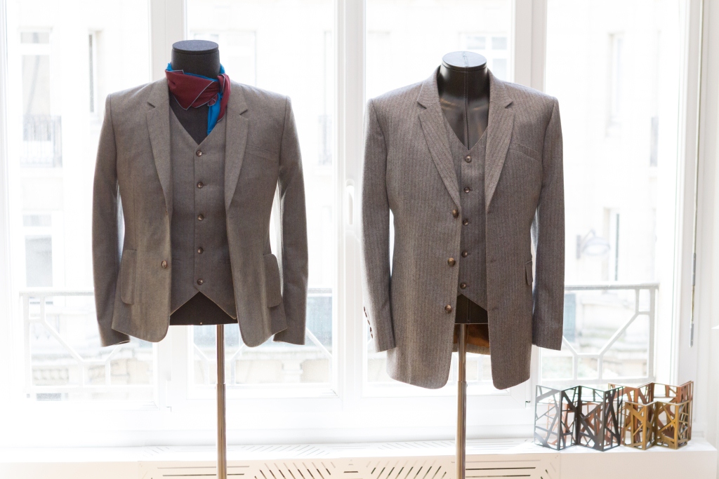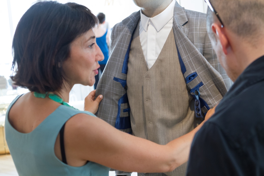Lors de la dernière fashion week homme (printemps/été 2016), j’ai été invité à une présentation de la jeune marque Dupuy de Lôme Paris. Fascinée par les silhouettes d’hommes, sa créatrice Magali B. Roussel réalise des costumes au style raffiné selon des coupes revisitées et plus fashion, mais surtout elle a créé un concept « d’écran total » qui protège du piratage des données des smartphones et cartes bancaires, grâce à la technologie anti-NFC. La NFC (Near Field Communication) est une communication sans fil, sans contact, permettant l’échange de données entre appareils à proximité. Pour s’opposer au piratage de données par NFC, et plutôt que de recourir pour se protéger à des étuis qui alourdissent la silhouette, la créatrice a eu l’idée d’intégrer la technique anti-hacking au costume. Les poches du costume sont ainsi conçues pour assurer une protection bloquant les ondes et empêchant les transferts de données. Par ailleurs la créatrice apporte un soin tout particulier aux coupes et aux matières, pour que le costume outil de travail procure du plaisir à celui qui le porte. C’est ainsi qu’elle réalise ses costumes selon trois morphotypes différents: le « performer » qui s’adresse à celui qui assume sa silhouette forte, le « smart » pour un homme plus musclé, le « vaillant » qui correspond au stéréotype masculin plutôt filiforme. Dans tous les cas de figure l’homme version 3.0 se doit d’être élégant et séduisant même en tenue de travail.