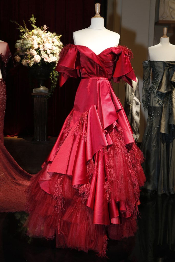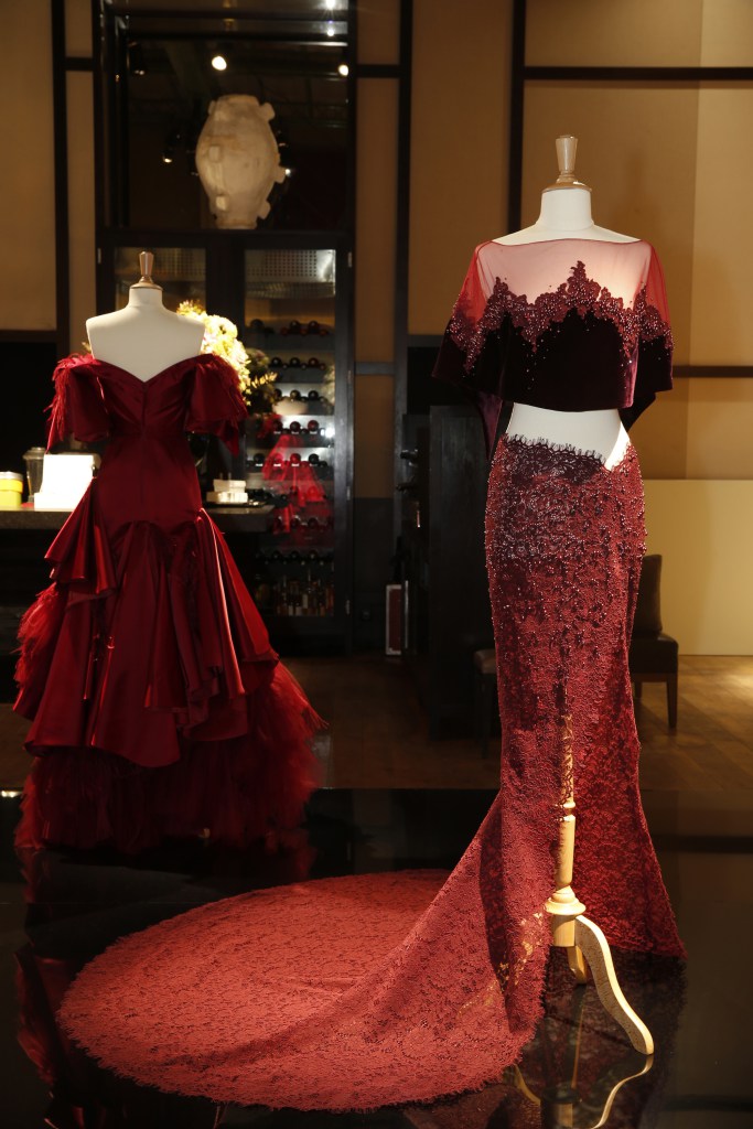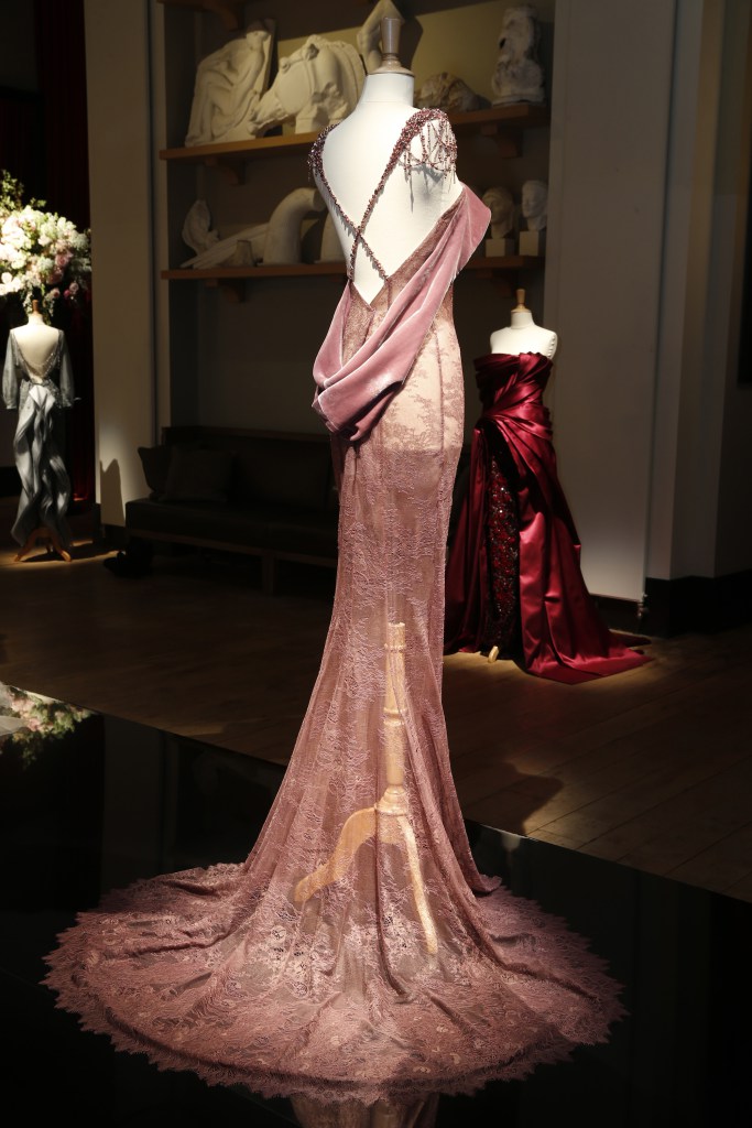 Présentation LAN YU au Mini-Palais: la créatrice chinoise nous entraîne dans le tourbillon des années folles où insouciance, luxe et music-hall donnaient le tempo. Soie, satin, velours, dentelle, voile, broderies de perles et de cristal, dos échancré, épaules dénudées, taille fluide ou marquée, manches bouffantes ou volantées, liens délicats, drapé de tulle chair ceinturé d’un corset brodé de fleurs serties de pierre topaze, traîne en dentelle grenat interminable. Les robes aux coupes parfaites, tout à la fois fluides et structurées, sont magnifiques et exacerbent la féminité.