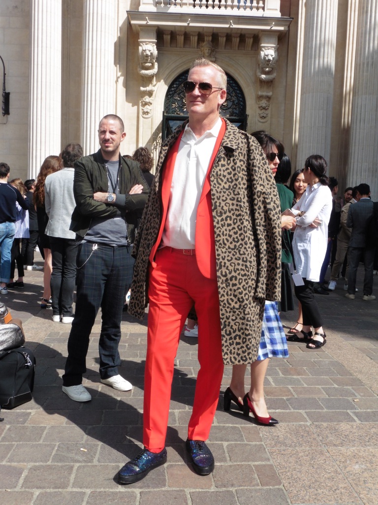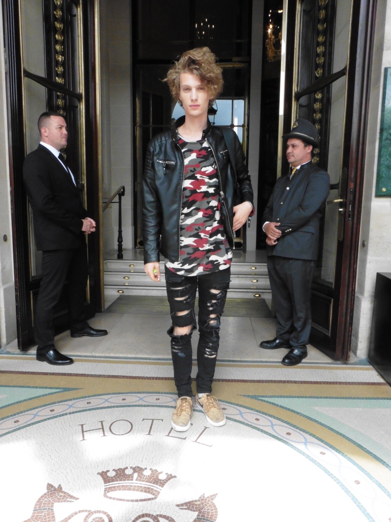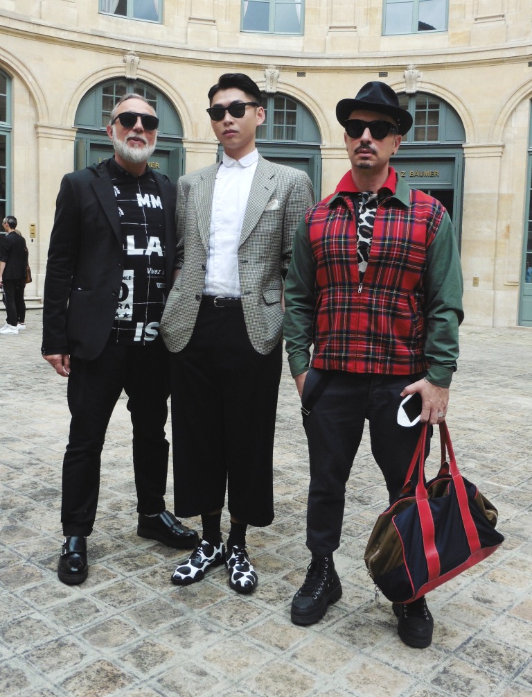 DEFILE RYNSHU A L’HOTEL LE MEURICE: fidèle à lui-même, le créateur japonais qui fête cette année le 25ème anniversaire de sa marque a présenté une collection d’un style très couture et complètement unisexe. Une ligne rock, métallisée, avec une abondance de pantalons slim et d’imprimés floraux, python ou jacquard. Les vestes longues et tuniques tombant sur des leggings en cuir sont très sexy. On ressent comme toujours l’amour du travail des textures. Les coupes sont parfaites. Des silhouettes d’avant-garde et une élégance topissime!