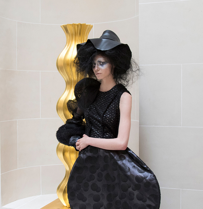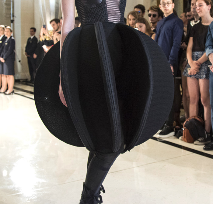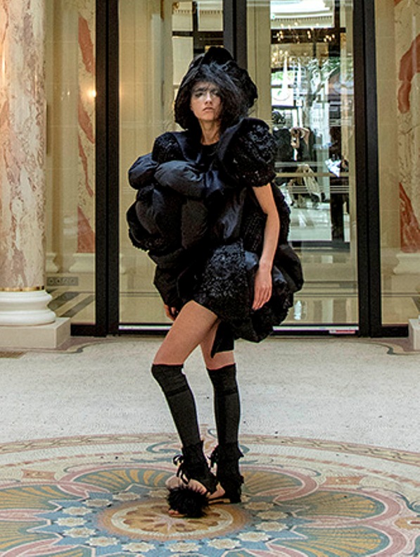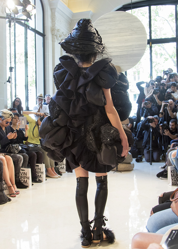 DEFILE BOWIE WONG AU PENINSULA HOTEL: pour son cinquième défilé à Paris, le créateur australien a présenté une collection intitulée « Eclipse » dans laquelle il explore toutes les nuances de noir sur des silhouettes audacieuses et sophistiquées, jouant sur les proportions et les formes géométriques. Laine et cuirs australiens, impressions en 3D. La collection combine savoir-faire artisanal et nouvelles technologies. Il s’en dégage une élégance très artistique et tout à fait hors normes.