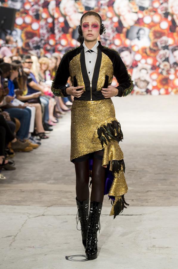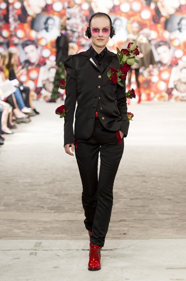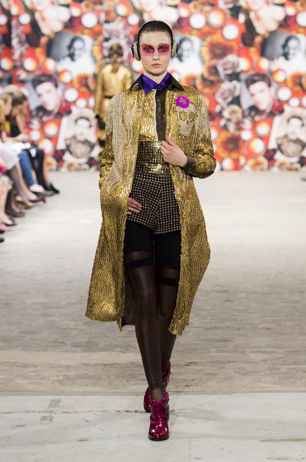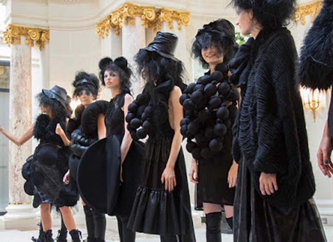 DEFILE ANTONIO ORTEGA AU GARAGE LUBECK: pour cette nouvelle collection le créateur mexicain a trouvé son inspiration dans les différentes cultures vouant un culte de souvenir et d’amour aux morts, tant en Amérique Latine – tout particulièrement au Mexique- qu’en Inde, en Russie et en Chine. Les offrandes faites aux morts, fleurs, présents, photos, images pieuses apparaissent ainsi sous forme de motifs tout au long de la collection. Dentelle découpée au laser à l’effigie des disparus, applications florales en relief apposées sur des vestes, manteaux ou robes. Pour la journée, tailleurs aux coupes nettes et ornementés de détails précieux, vestes structurées et jupes patineuses bi ou multicolores. Pour le soir, longues robes à sequins brillants. Les couleurs sont riches: or et argent aux effets irisés, pourpre et rouge cardinal s’imposent. C’est festif, amusant et très créatif!