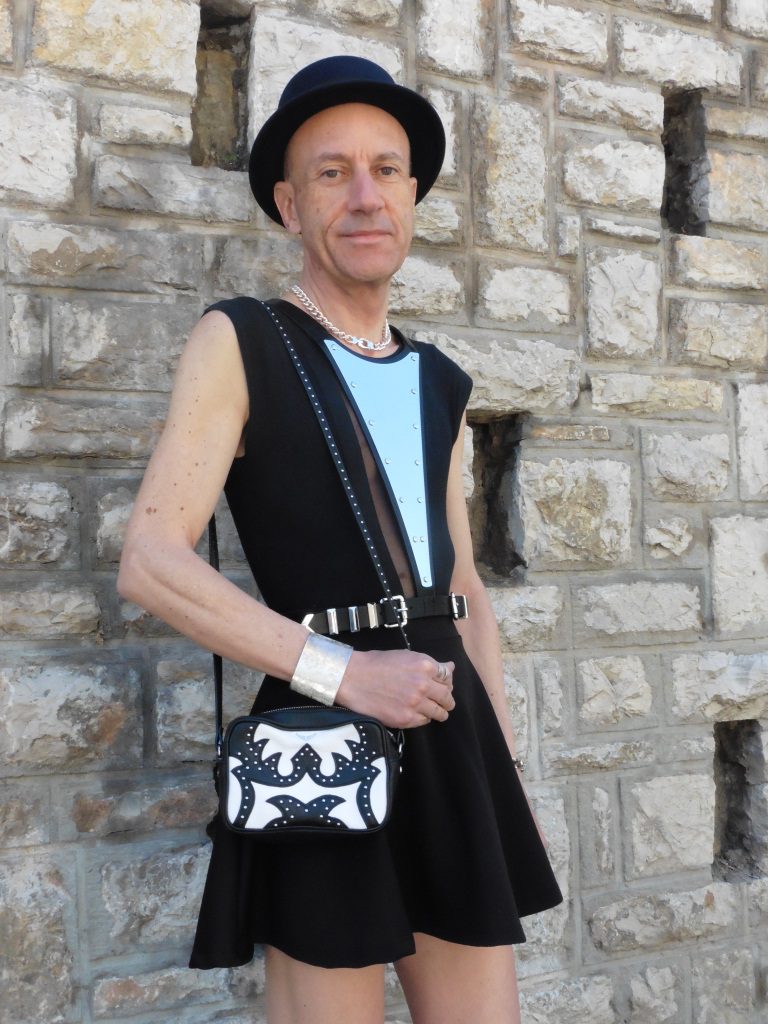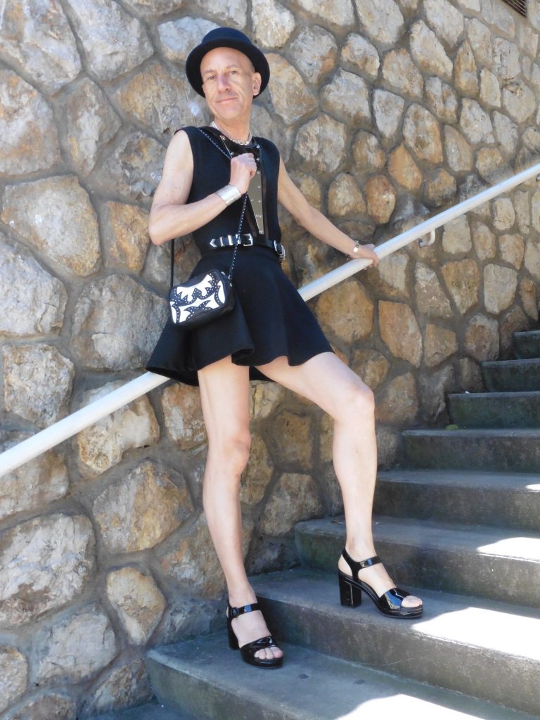 Avant l’arrivée du froid on profite du beau temps persistant pour montrer (encore et encore) ses jolies gambettes, tout en restant très chic. Pour une allure résolument moderne on agrémente le noir de touches rock qui sublimeront votre look. Harnais avec miroir: The Kooples; mini sac patchwork de cuir clouté: Zadig&Voltaire; body sans manches: American Apparel; jupe courte: Pull&Bear; collier en argent: Clio Blue; chapeau canotier en feutre: Maison Michel; bracelets et bagues: Clara Jasmine (côté droit), Crezus (côté gauche); chaussures à talons en cuir verni: What For.