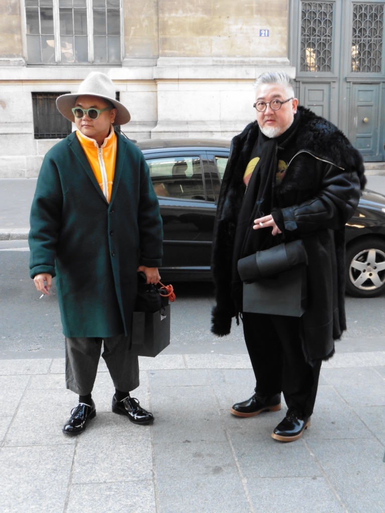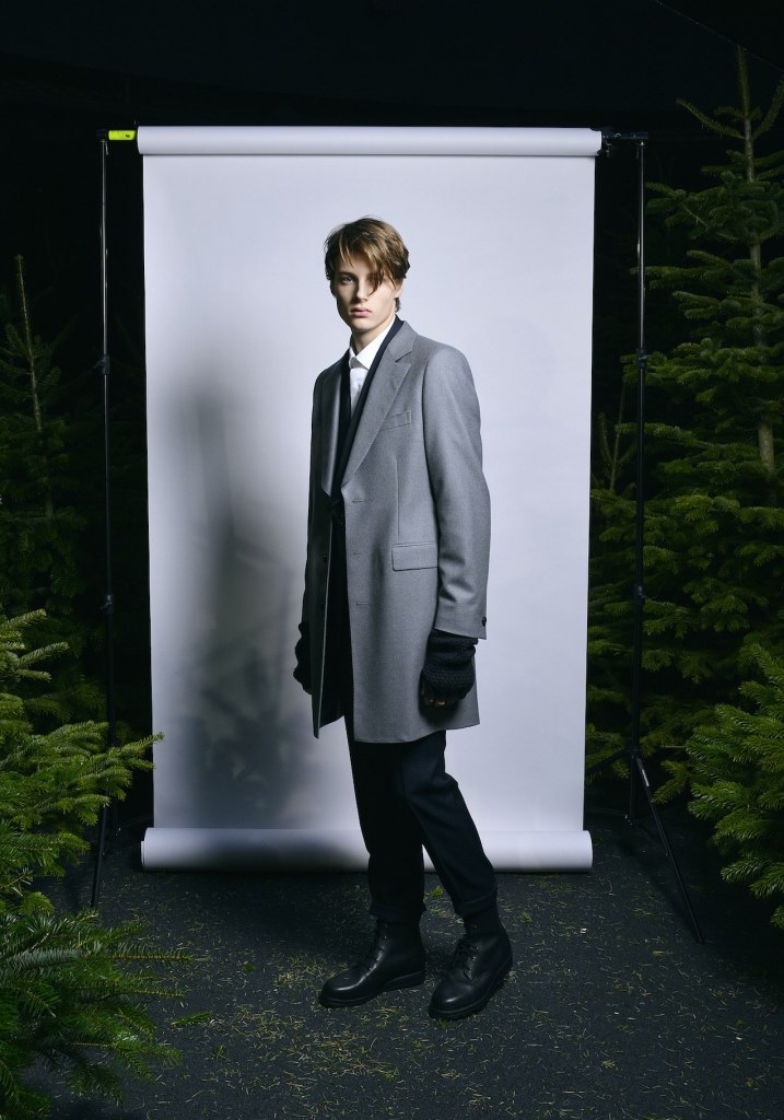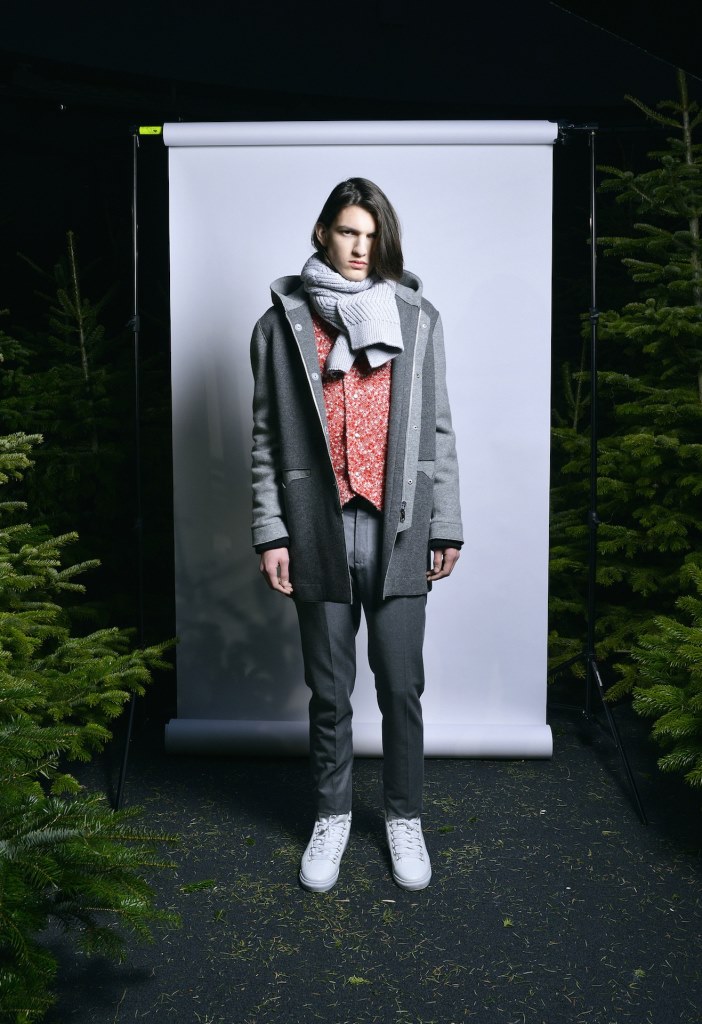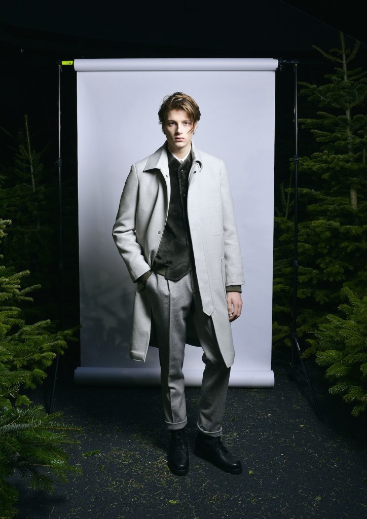 PRESENTATION ESSIUS A L’ELEPHANT PANAME: Les deux créateurs de cette jeune marque suisse, Youn Chong Bak et Adel Najah, ont présenté une collection très élégante inspirée de la forêt et des sapins. Costumes, manteaux, parkas, chemises, écharpes en soie, vestes et pulls brodés sont confectionnés dans des textures de grande qualité: laine, cachemire, fourrure, tweed. Les couleurs sont sobres, mais malgré tout assez variées: noir, gris, blanc, jaune moutarde, vert sapin, bleu, bordeaux. L’allure d’ensemble est très chic. Un luxe discret, sans ostentation, mais très efficace.