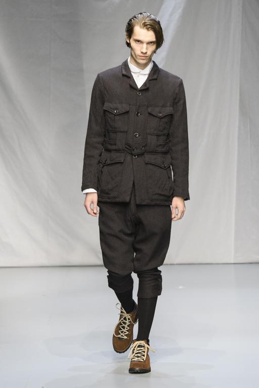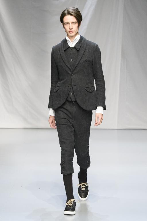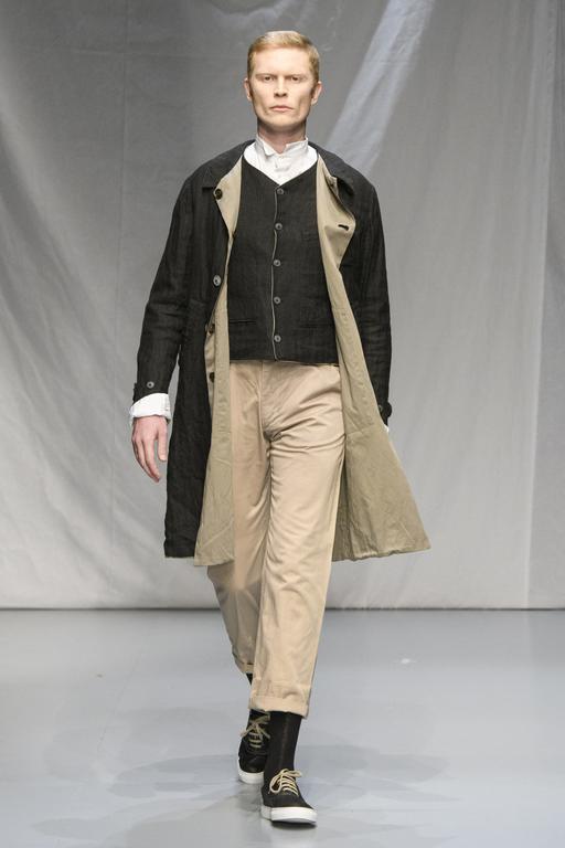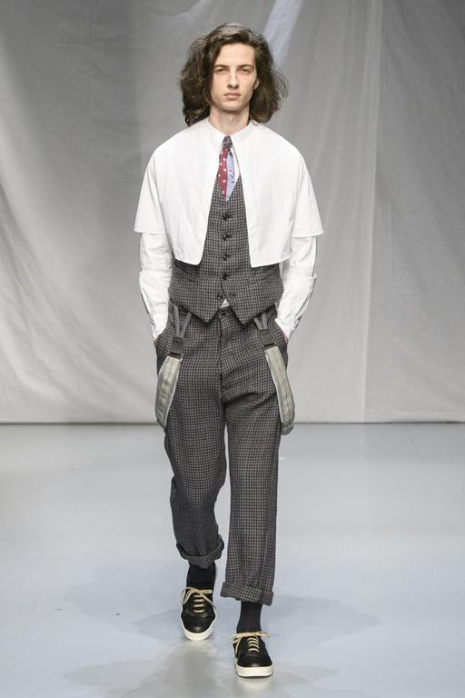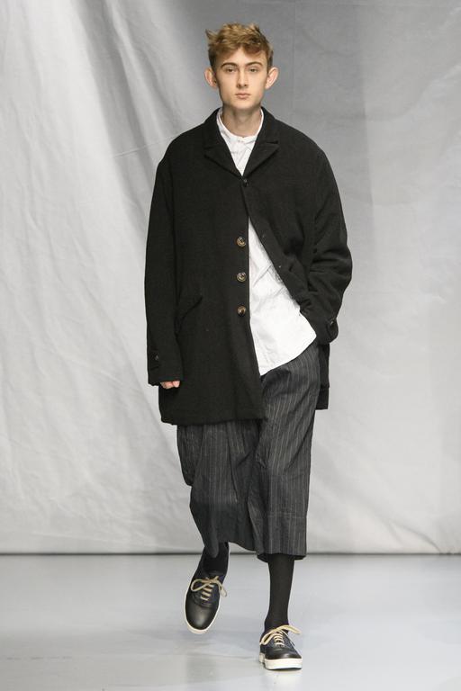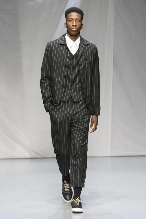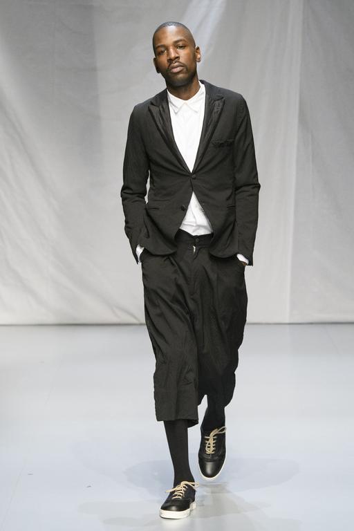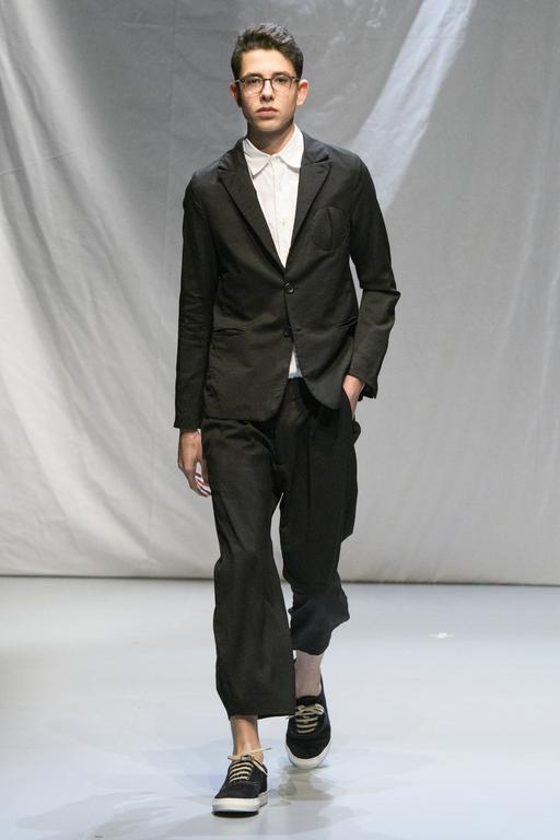 DEFILE GEOFFREY B. SMALL A L’ESPACE SAINT MARTIN: Pour cette nouvelle collection, le designer américain installé en Italie, adepte du concept de vêtement durable et écologique, a présenté des tenues d’allure décontractée dans des matières souples et de qualité. Toutes ses pièces sont fabriquées à la main dans son atelier de Venise, avec des procédés écologiques. Cette saison, le noir se pare de rayures, de motifs fleuris, de petits carreaux et se porte avec du blanc et du beige. Les pantalons sont souvent amples, avec des formes sarouel ou jogging, et s’arrêtent généralement au-dessus de la cheville, voire carrément à mi-mollet. Les vestes évoluent également vers des formes plus amples. L’allure d’ensemble est d’une élégance très romantique.