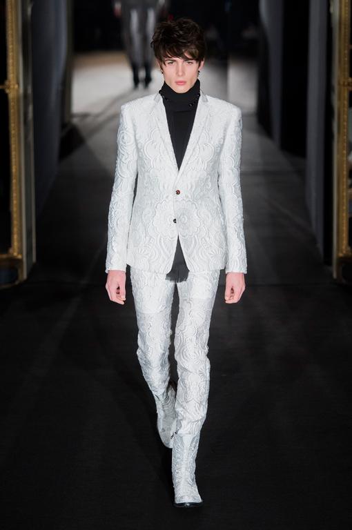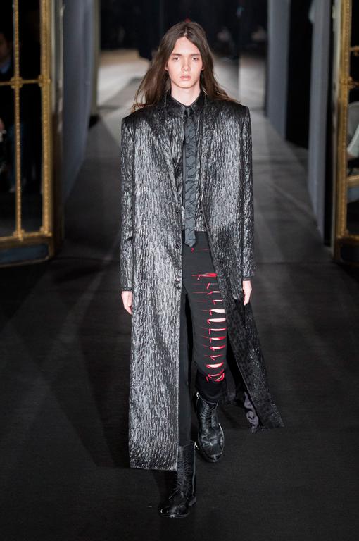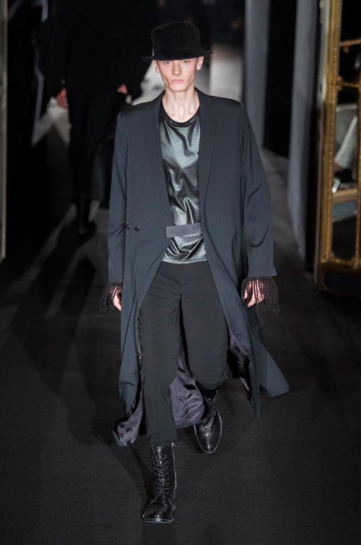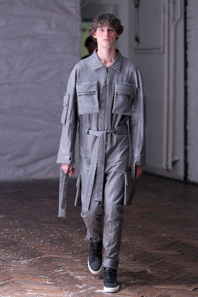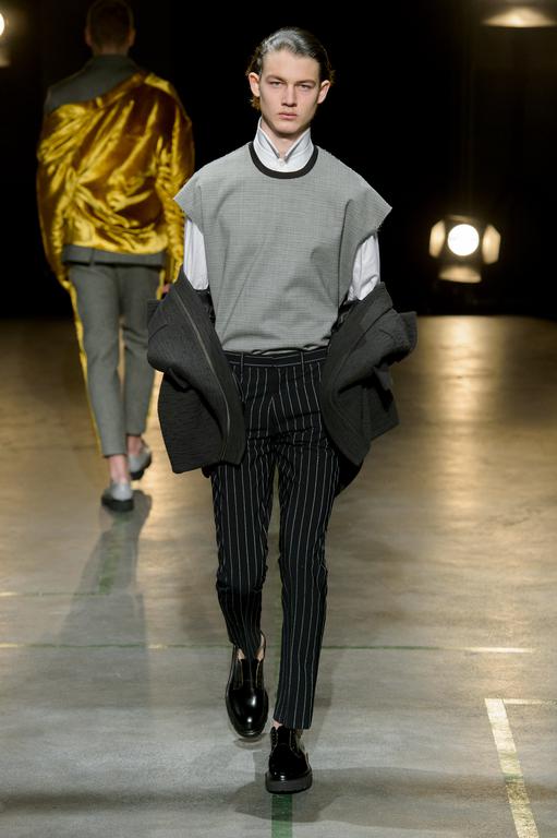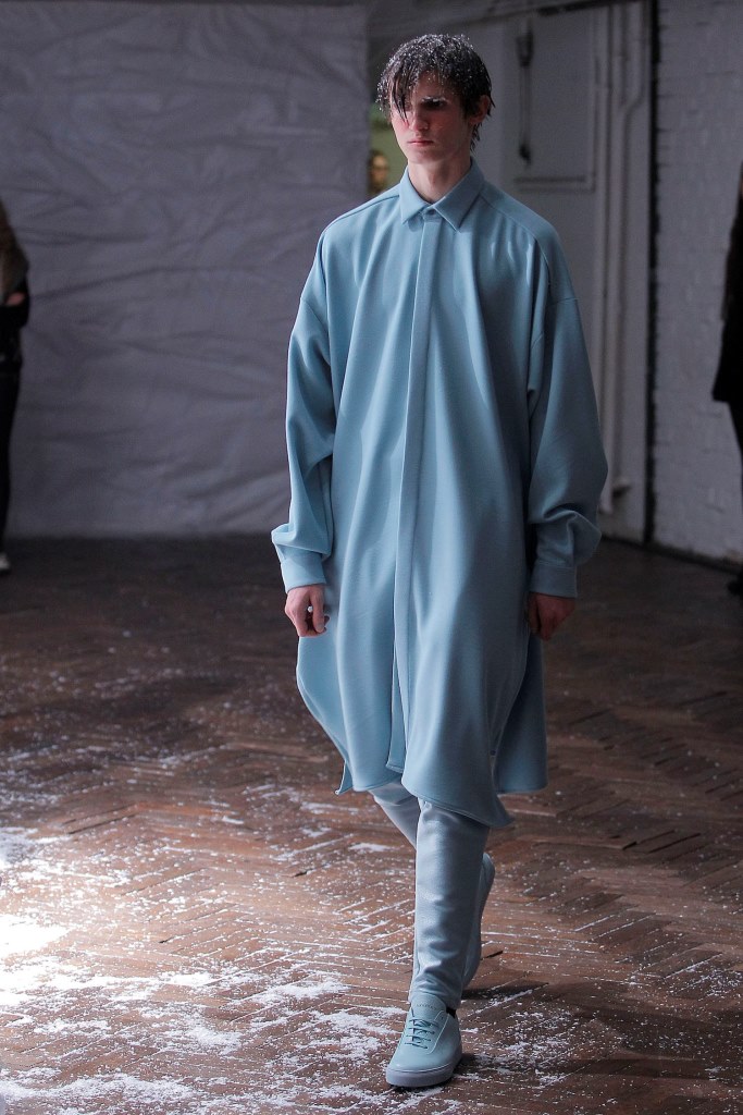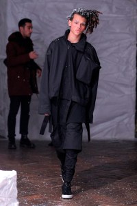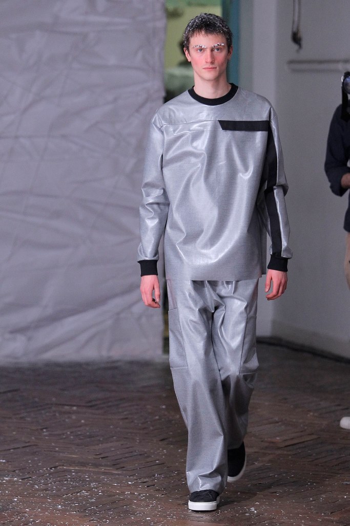 PRESENTATION HUGO COSTA AU THEATRE TREVISE: Le créateur portugais a trouvé son inspiration chez l’explorateur norvégien Roald Amundsen, qui est le premier à avoir atteint le pôle sud en 1911. Cette nouvelle collection se veut ainsi un tribut à la nécessité pour l’homme d’explorer l’inconnu. Ceci se traduit par un ensemble cohérent de silhouettes imposantes d’une grande modernité, avec des manteaux longs, capes, redingotes et autres combinaisons très seyantes. Tops à capuches, pantalons amples. Les matières jouent le confort: laine, jerseys, matières techniques. La collection fait la part belle aux poches (sur le haut des vêtements et sur les manches) et aux ceintures, qui servent également d’ornements sur certaines pièces. La palette de couleurs est très soignée, allant du noir et gris argenté au blanc, en passant par de délicats bleus et verts. Une allure sporstwear particulièrement séduisante et très chic.