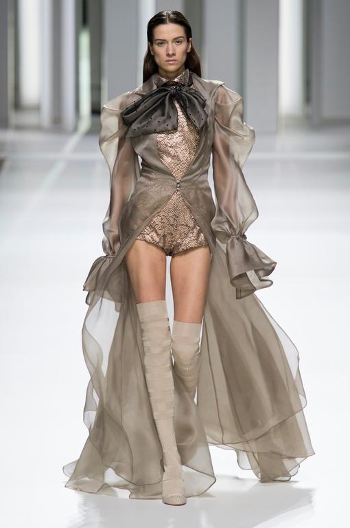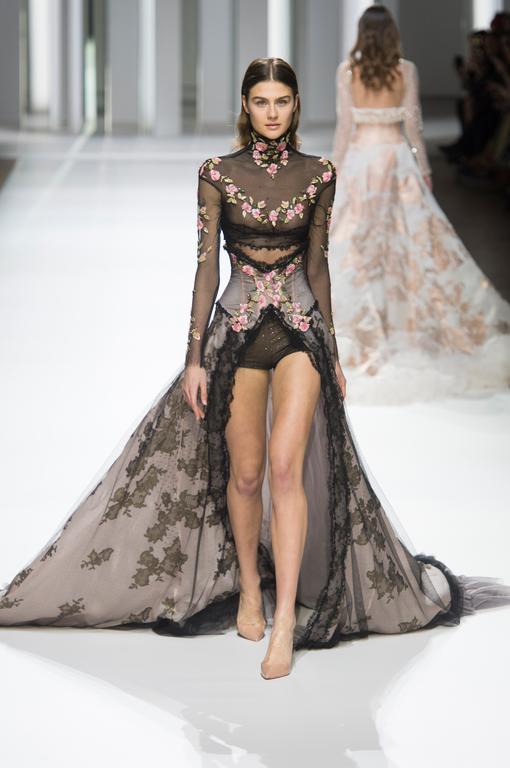 DEFILE GALIA LAHAV AU GRAND PALAIS: Première créatrice de mode israélienne à intégrer le calendrier officiel de la fashion week « Haute Couture » (en tant que membre invité), Galia Lahav a présenté sa nouvelle collection de robes du soir et de mariée « Victorian Affair », inspirée de l’ère victorienne et de son pendant français la Belle Epoque, période de changements et d’innovation dans de nombreux domaines. Les robes sont garnies de longues traînes, de manches bouffantes, de cols montants et d’une débauche de dentelles et de broderies signées Lesage. Les coupes sont audacieusement modernes et sexy: découpes profondes dans le dos, décolletés vertigineux, jeux de transparences qui mettent les dentelles en valeur. Une palette de couleurs fortes où le noir, le rouge vif, le doré et le bronze côtoient le blanc des robes de mariée traditionnelles. Somptueux!