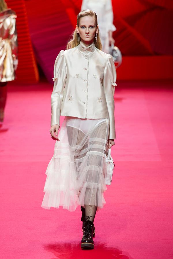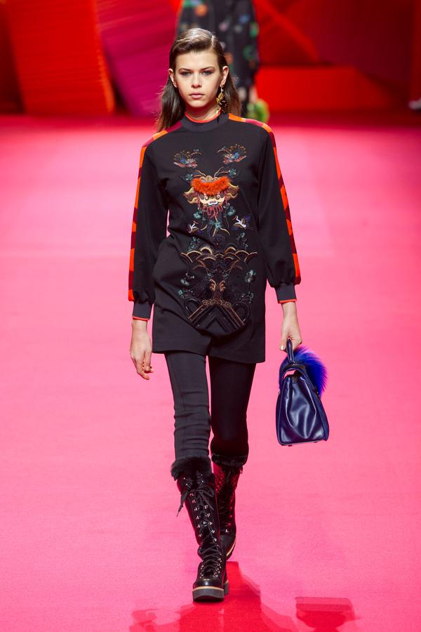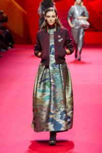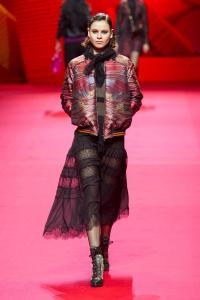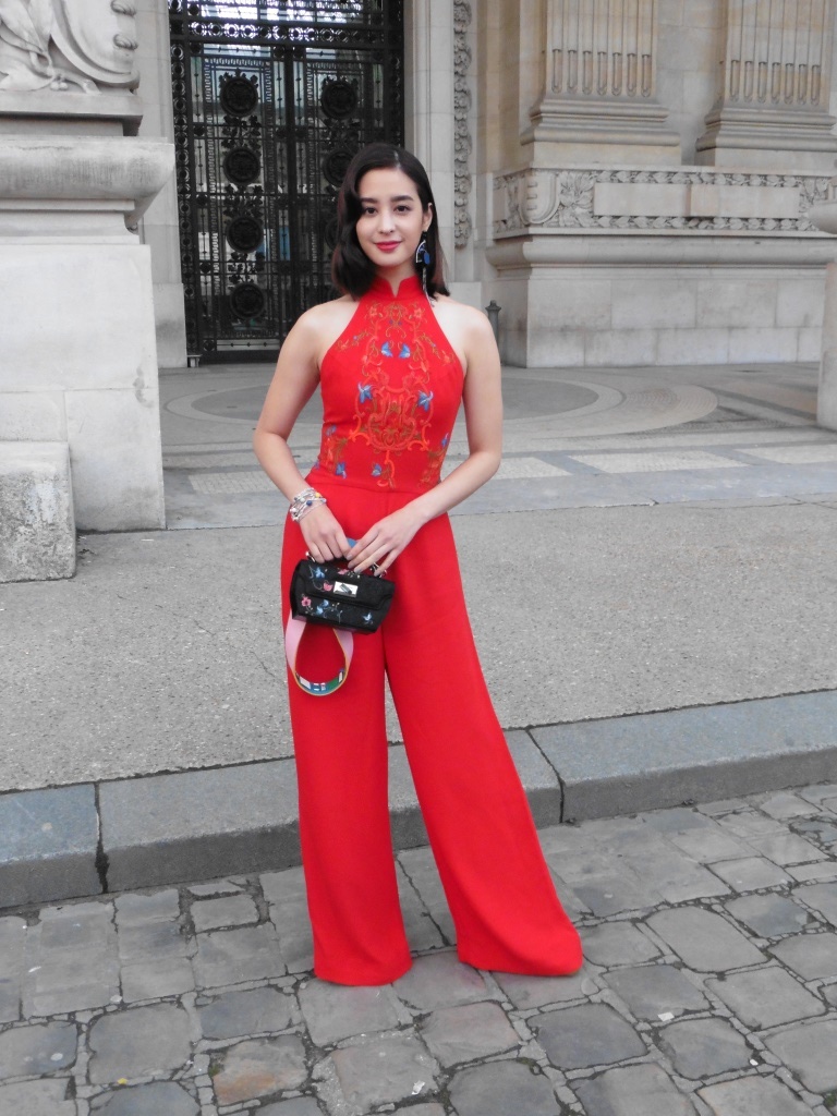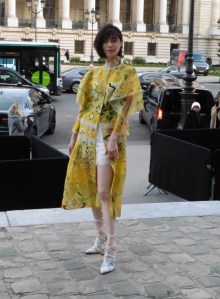DEFILE SHIATZY CHEN AU GRAND PALAIS: Cette nouvelle collection intitulée « Celebration » est une véritable ode à la fête dans laquelle la créatrice taïwanaise Wang Chen Tsai-Hsia puise son inspiration, comme à son habitude, dans les cultures orientale et occidentale. Une référence tout à la fois au Siècle des Lumières et aux épopées remarquables de la mythologie asiatique. Ainsi des imprimés ancestraux mettant en scène dragons, lions et phoenix se conjuguent avec brio à un style parisien très actuel. Fins collages de dentelles et longues jupes fluides se combinent à la modernité d’une capuche ou d’un matelassé. Vestes et manteaux aux coupes précises flirtent avec des combinaisons et doudounes d’allure plus décontractée. La collection d’une grande richesse dans les coupes et les matières propose tout à la fois manteaux, robes longues et courtes, pantalons, shorts, combinaisons, petits blousons et longs gilets dans une palette resplendissante et très fournie de couleurs vives et chaudes. L’exploit est vraiment de parvenir avec un tel panache à une transposition d’un univers très oriental dans une modernité chic et élégante toute occidentale.