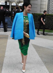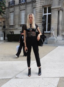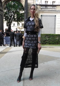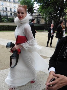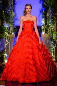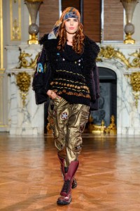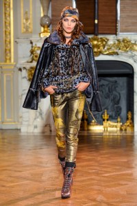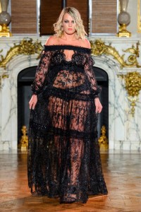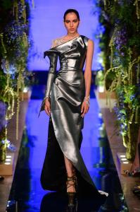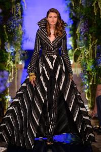 DEFILE EWA MINGE A L’HOTEL SHANGRI-LA: La créatrice polonaise a présenté une collection inspirée par les anciennes fables tziganes et leur monde enchanté, joyeux et dansant. Les silhouettes multicolores aux nombreuses superpositions, les détails et les accessoires évoquent l’univers riche et chantant de cette culture. De somptueuses robes longues, mais aussi des pantalons et des robes courtes qui apportent une touche de modernité. Un large éventail de matières: fourrure, soie, dentelle, tulle, organza, mousseline, cuir. De la transparence, des plumes et des motifs floraux pour le glamour. Les vêtements sont recouverts de broderies artisanales et de papillons, ces derniers ayant été réalisés par les « élèves » de la fondation Black Butterflies dans un cadre d’art-thérapie: sous l’oeil de la créatrice, des femmes qui se battent contre le cancer ont ainsi réalisé des « petites oeuvres d’art » à partir de perles. La créatrice a également fait défiler plusieurs mannequins « plus-size » afin de montrer que la beauté n’a pas de taille.
