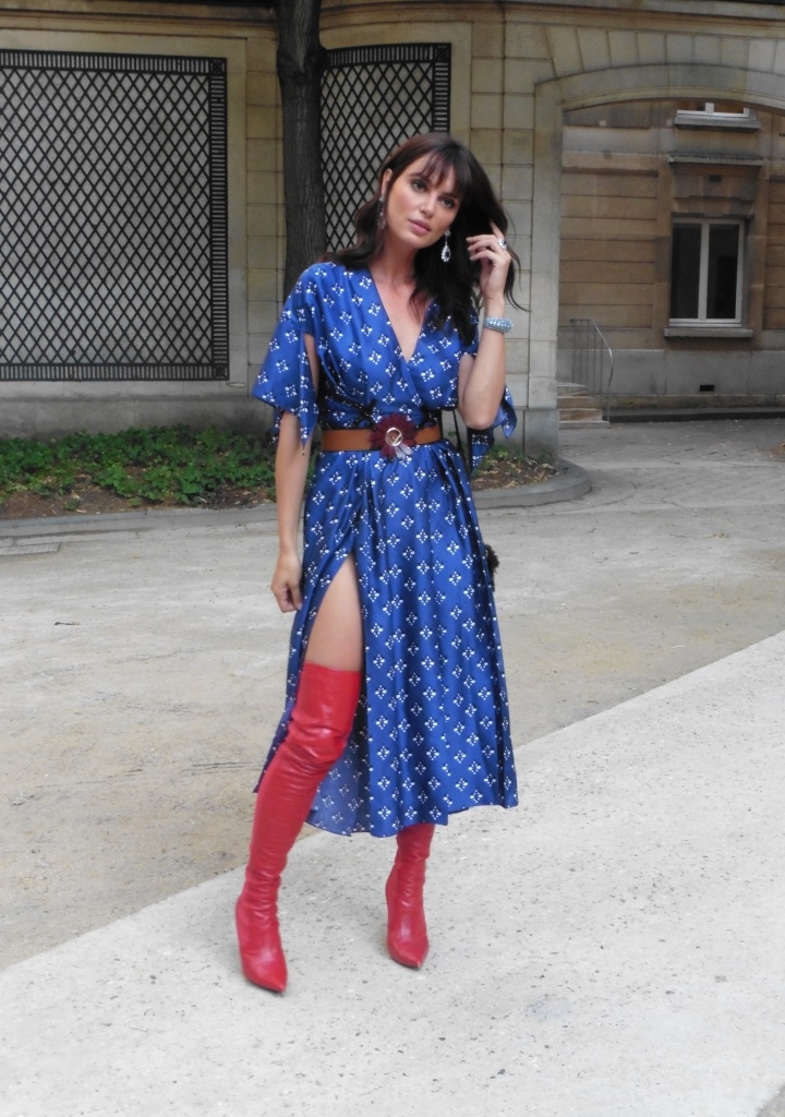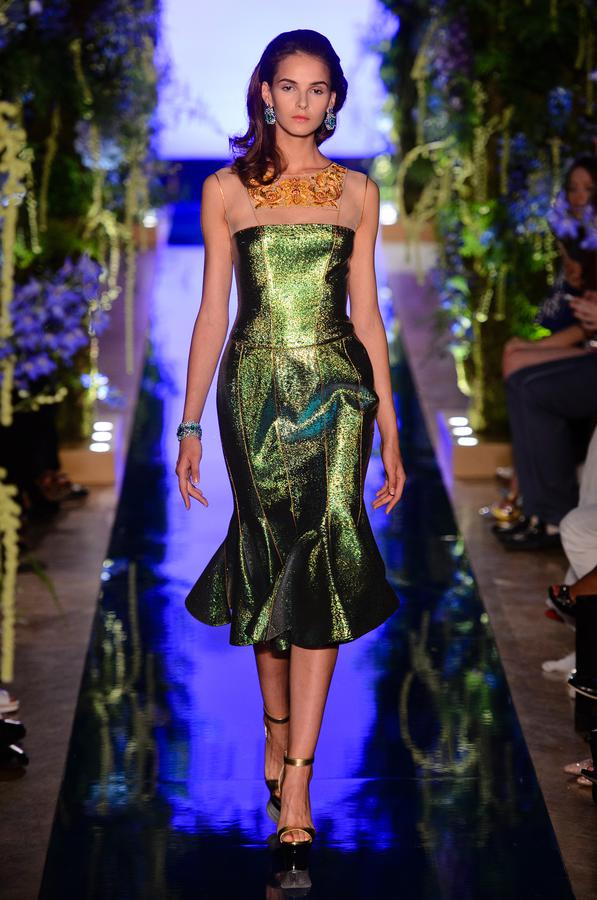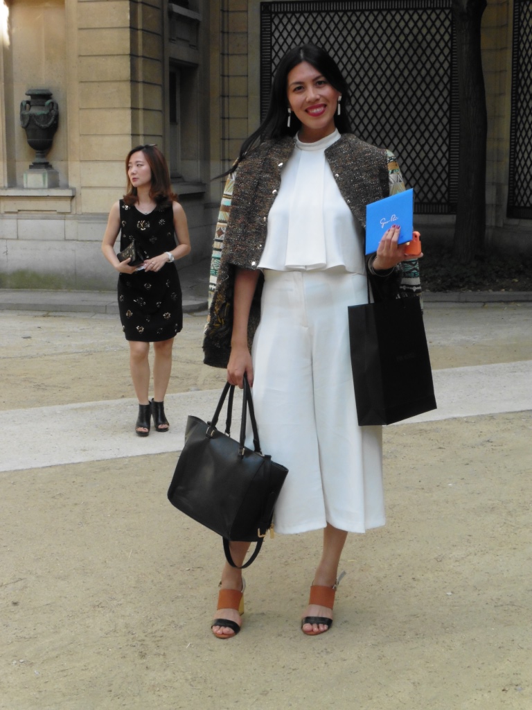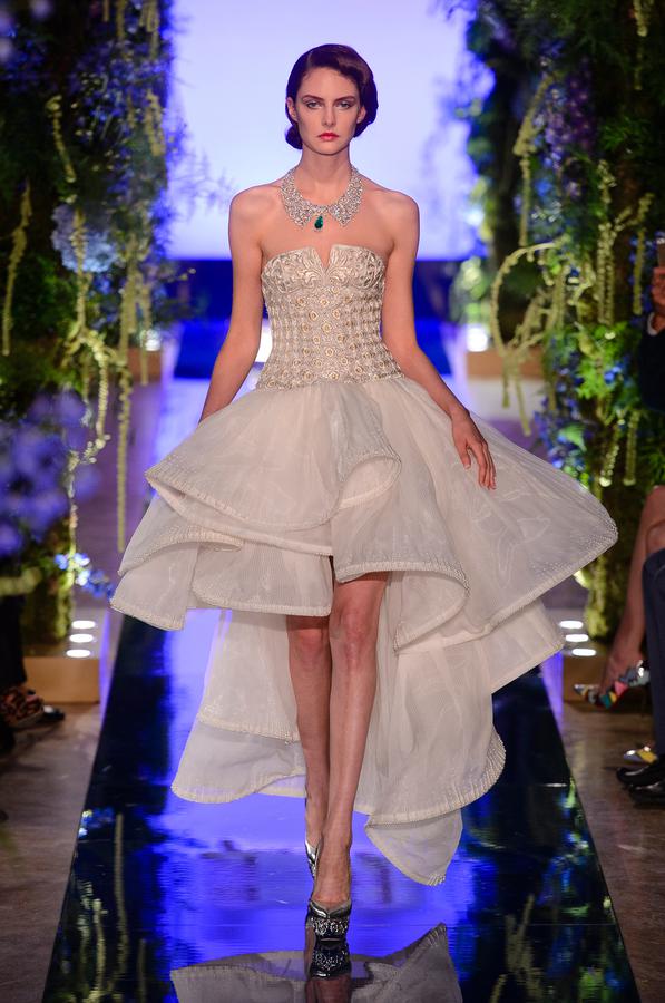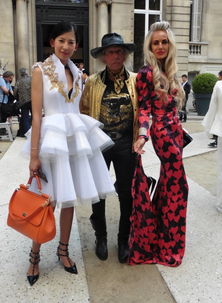 DEFILE EWA MINGE A L’HOTEL SHANGRI-LA: La créatrice polonaise a présenté une collection inspirée par les anciennes fables tziganes et leur monde enchanté, joyeux et dansant. Les silhouettes multicolores aux nombreuses superpositions, les détails et les accessoires évoquent l’univers riche et chantant de cette culture. De somptueuses robes longues, mais aussi des pantalons et des robes courtes qui apportent une touche de modernité. Un large éventail de matières: fourrure, soie, dentelle, tulle, organza, mousseline, cuir. De la transparence, des plumes et des motifs floraux pour le glamour. Les vêtements sont recouverts de broderies artisanales et de papillons, ces derniers ayant été réalisés par les « élèves » de la fondation Black Butterflies dans un cadre d’art-thérapie: sous l’oeil de la créatrice, des femmes qui se battent contre le cancer ont ainsi réalisé des « petites oeuvres d’art » à partir de perles. La créatrice a également fait défiler plusieurs mannequins « plus-size » afin de montrer que la beauté n’a pas de taille.