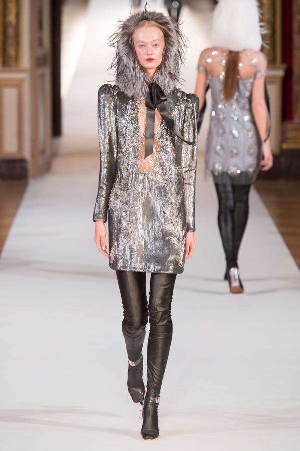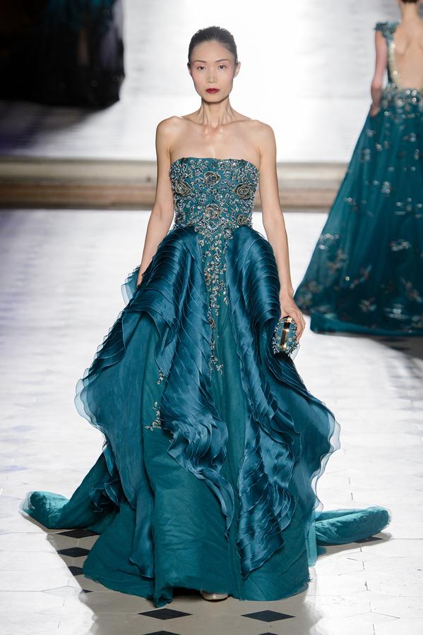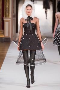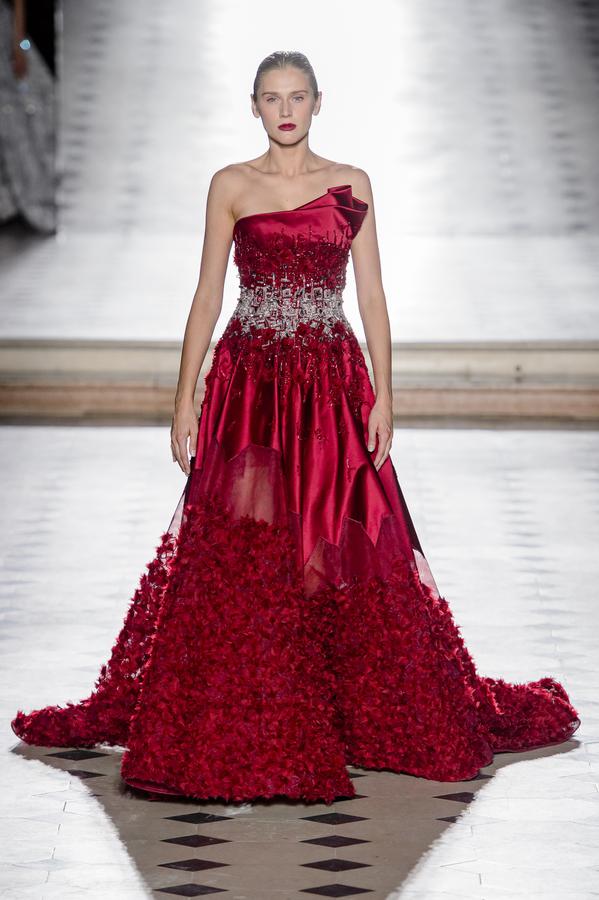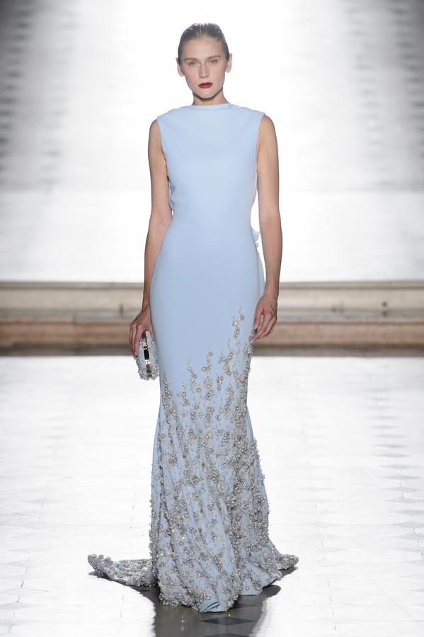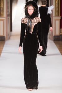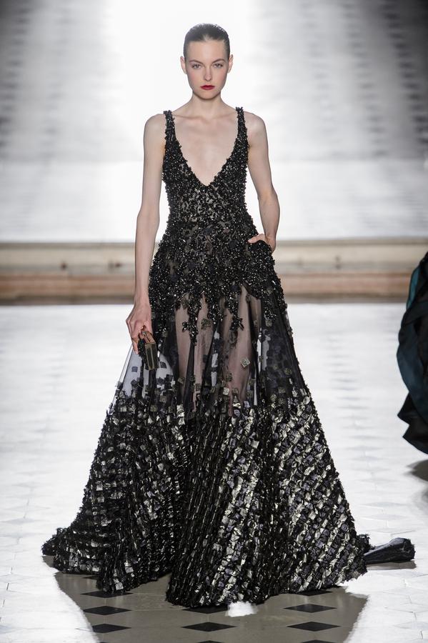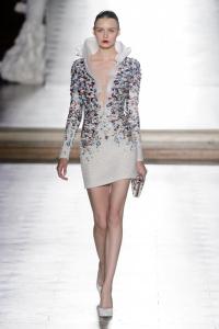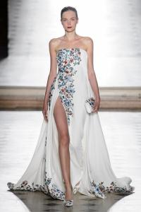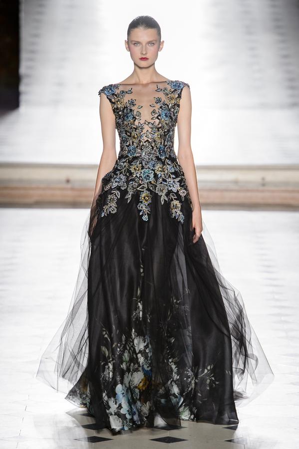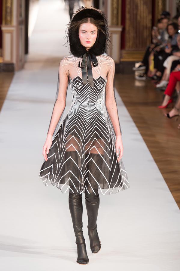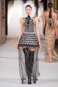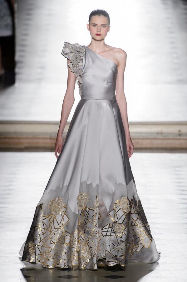 DEFILE TONY WARD A L’ORATOIRE DU LOUVRE: Une nouvelle collection pour laquelle le créateur libanais déclare avoir trouvé son inspiration dans une rencontre entre la géométrie et les fleurs. La délicatesse des fleurs est ainsi associée à des motifs géométriques réinventés qui sont finement brodés à la main sur des robes de soie vaporeuses. Les courbes des fleurs sont transposées dans les silhouettes. Les couleurs franches comme le bordeaux et le jade sont complétées par des teintes plus douces comme l’argent et le rose, sans oublier le noir et blanc intemporel. Magnifique!