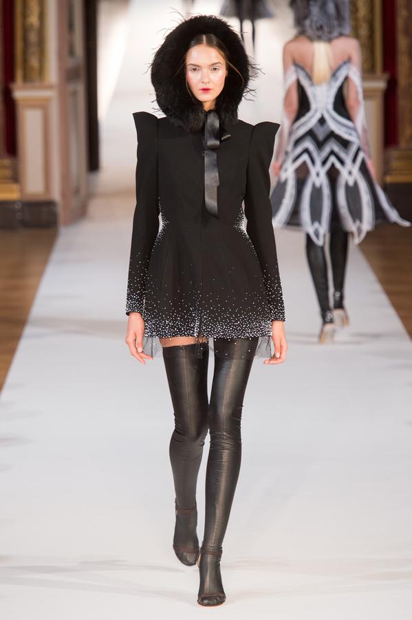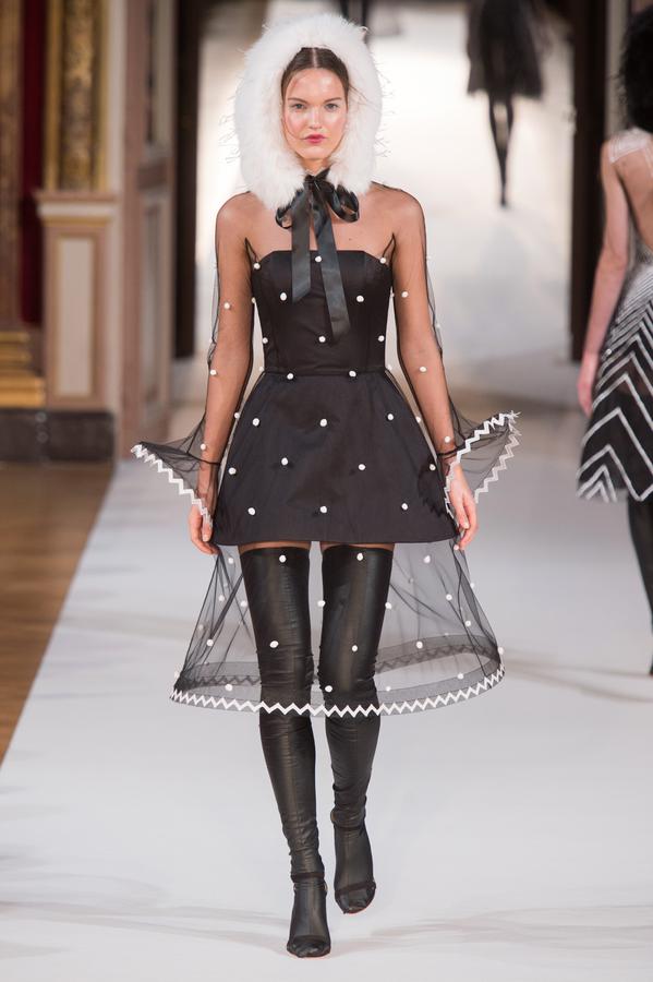 DEFILE YANINA COUTURE A L’HOTEL WESTIN: Pour cette nouvelle collection la créatrice russe a trouvé son inspiration dans l’un des contes d’Andersen qu’elle affectionne tout particulièrement, « La Reine des Neiges », et dans la beauté des hivers russes. Sa Gerda des temps modernes est une voyageuse érudite et romantique, qui vit dans ses rêves et recherche l’amour et la passion. Le réel et le magique s’entremêlent dans cette collection dans laquelle les robes représentent les différents héros et héroïnes que Gerda rencontre dans son voyage: un petit voleur, une finlandaise, une femme de Laponie…Ceci se traduit par un ensemble de capes, de robes de toutes longueurs, de fourreaux, de capuches, de manches, de moufles. Noir et blanc dominant, allure très graphique, matières fluides jouant sur la transparence. Sublime!