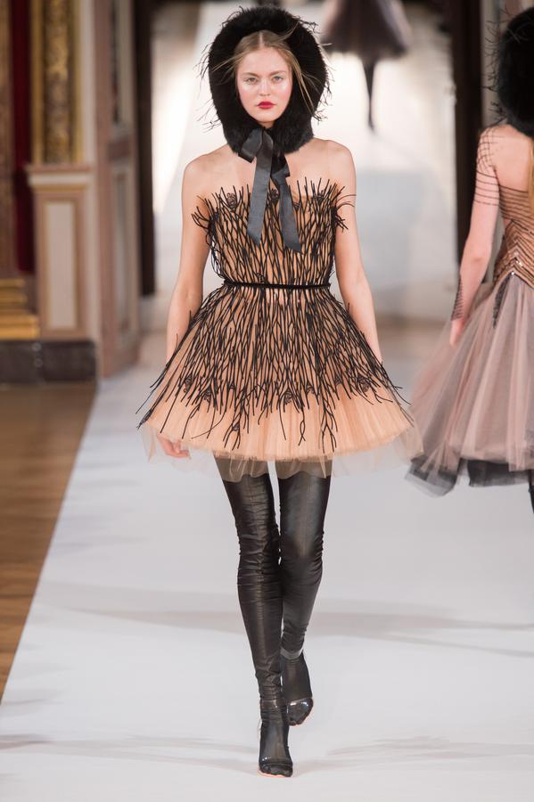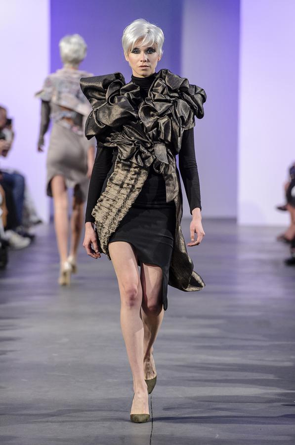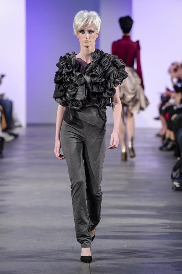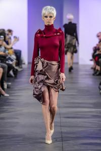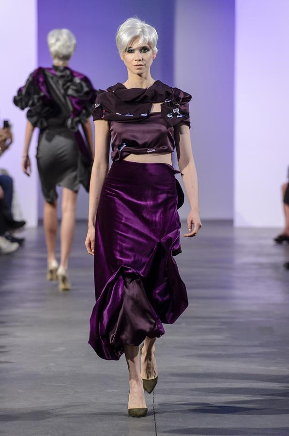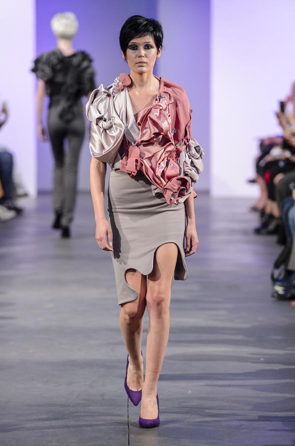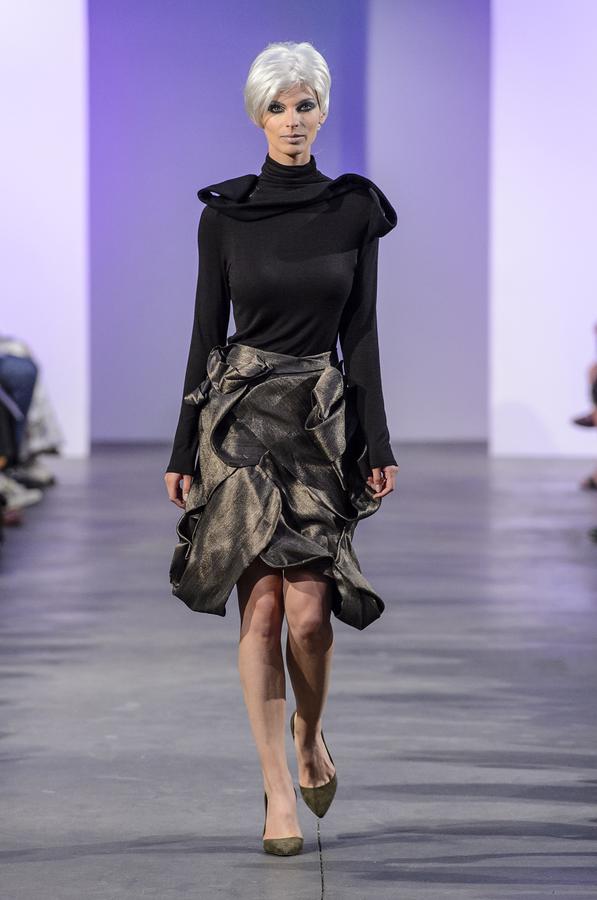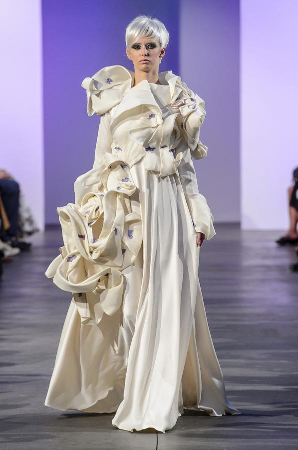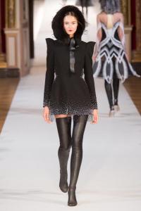 DEFILE PATUNA AU FAUST: La créatrice d’origine géorgienne a présenté une nouvelle collection qui se veut une rencontre entre l’architecture organique inspirée de la nature de Gaudi et l’abstraction onirique de Dali. Les silhouettes proposées combinent rigueur et fluidité, et jouent sur le contraste féminin/masculin. Les tenues aux lignes ondulantes et asymétriques semblent s’enrouler autour du corps. Les matières utilisées, soie, laine, velours, coton, maille permettent cette flexibilité et sont déclinées dans une palette de couleurs cohérente qui va du noir au rose pâle, en passant par le gris, le violet et le blanc; Une collection qui a du caractère!