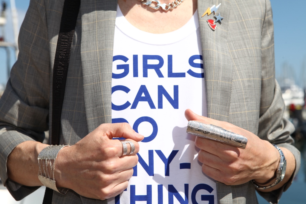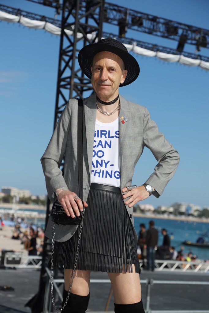 Un nouveau look d’allure très androgyne autour de cette jolie veste longue en laine prince de galles et de ce délicieux débardeur à slogan, tous deux Zadig&Voltaire collection printemps/été 2018, de même que le petit sac/besace en cuir avec bandoulière en tissu et chaîne argentée. Pour les sublimer je les ai assortis avec ma jupe préférée avec double rangée de franges en cuir (Zadig&Voltaire collection antérieure). Pour le reste: chapeau en paille Maison Michel, collier en argent Clio Blue, choker H&M, manchette et bagues argentées Clara Jasmine, baskets/cuissardes souples en suede Ash (aussi parmi mes chaussures préférées tellement elles sont confortables). Photos prises pendant mon passage au Festival de Cannes 2018.