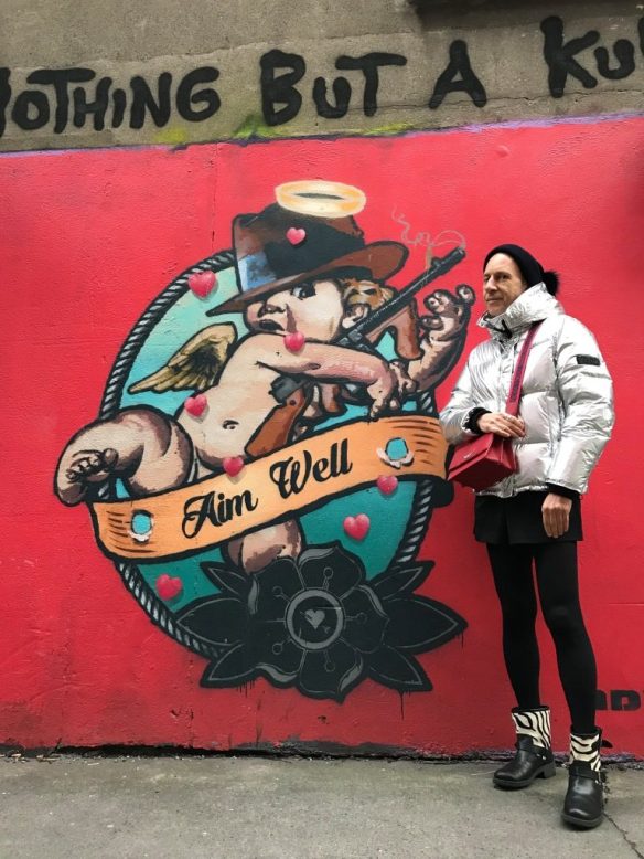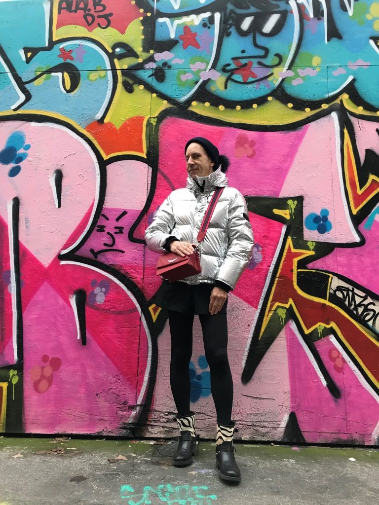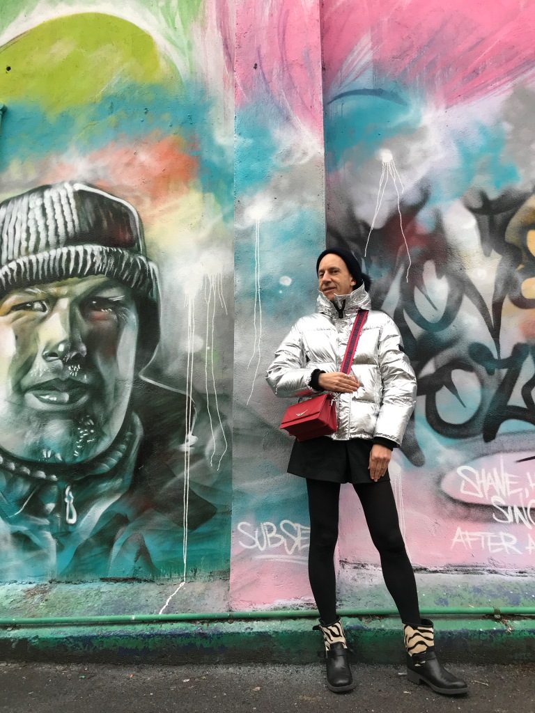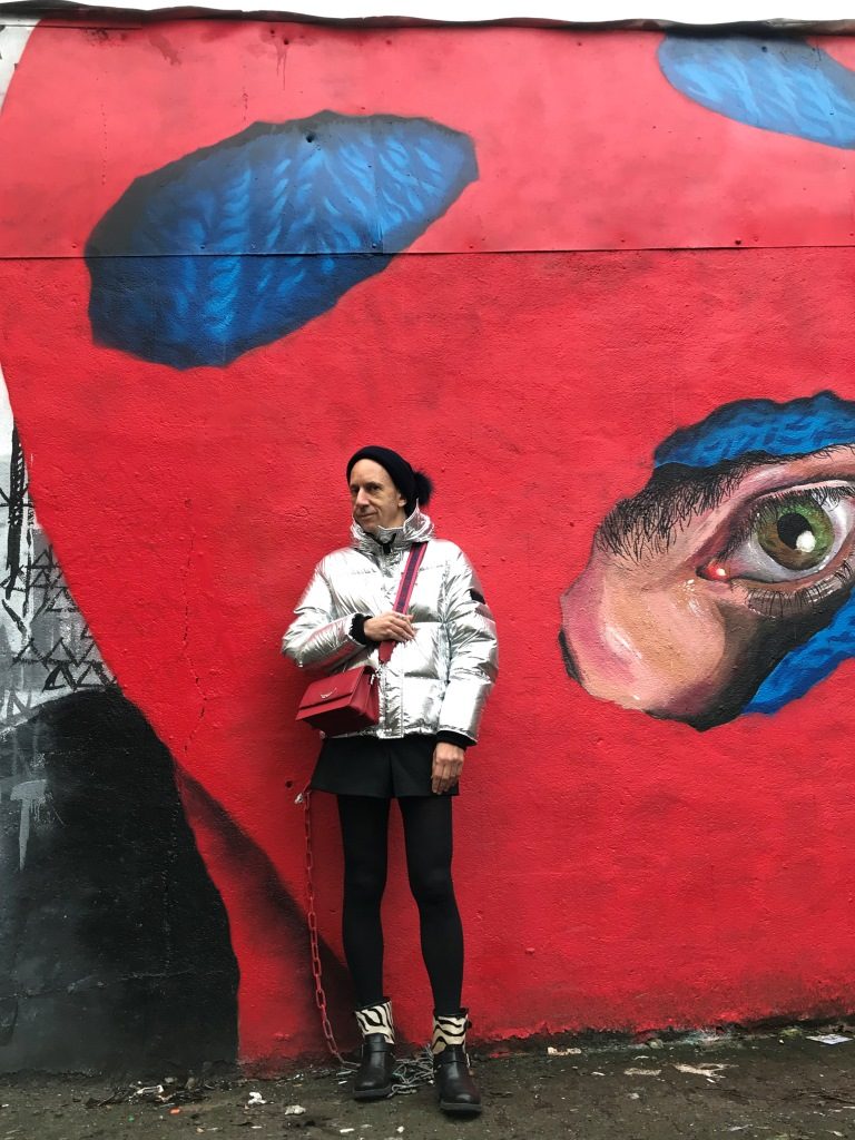 La « glittermania » s’impose cet hiver pour booster vos looks! Mais quel plaisir de s’envelopper par grand froid dans cette superbe doudoune matelassée à capuche Kenzo (collection hiver 2018/2019) au coloris rayonnant! Très chaude et confortable, son col montant et sa capuche protègent très efficacement du froid. En plus, elle est très pratique avec ses deux grandes poches devant. Une pièce forte pour un look stylé à l’allure futuriste (existe dans les collections homme et femme). Pour un twist élégant et flashy je l’ai assortie avec un petit sac en cuir rouge porté en bandoulière de Zadig&Voltaire (sac « Lolita », collection hiver 2018/2019). Pour compléter le look tout en ayant bien chaud: bonnet en laine et cachemire à pompon Inverni (couleur bleu marine), short noir à effet jupe Sandro (collection ancienne), collant fin en laine, boots à motif zébré Les Petites Parisiennes (collection ancienne). Les photos ont été prises à Noël lors d’un très sympathique séjour à Dublin (Irlande), une très jolie ville qui dispose d’un street art remarquable que je vous fais ainsi découvrir! Et bien sûr un immense merci à ma photographe du jour pour toutes ces magnifiques photos!