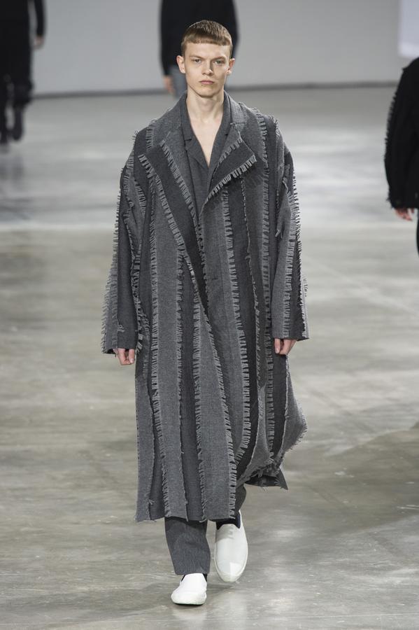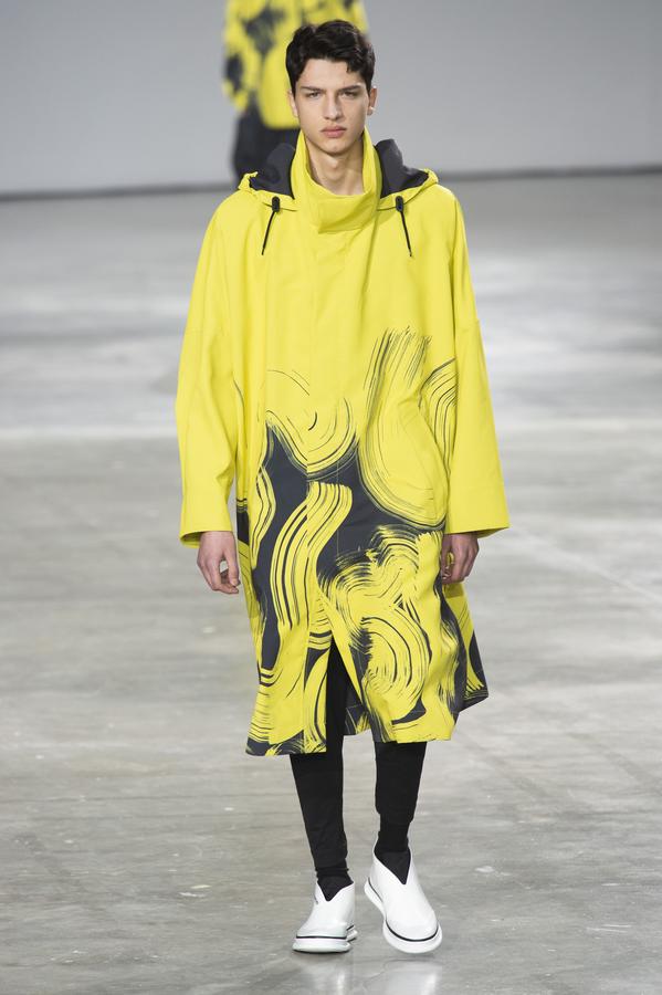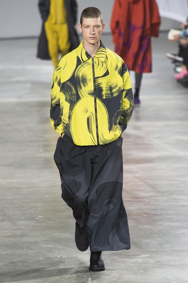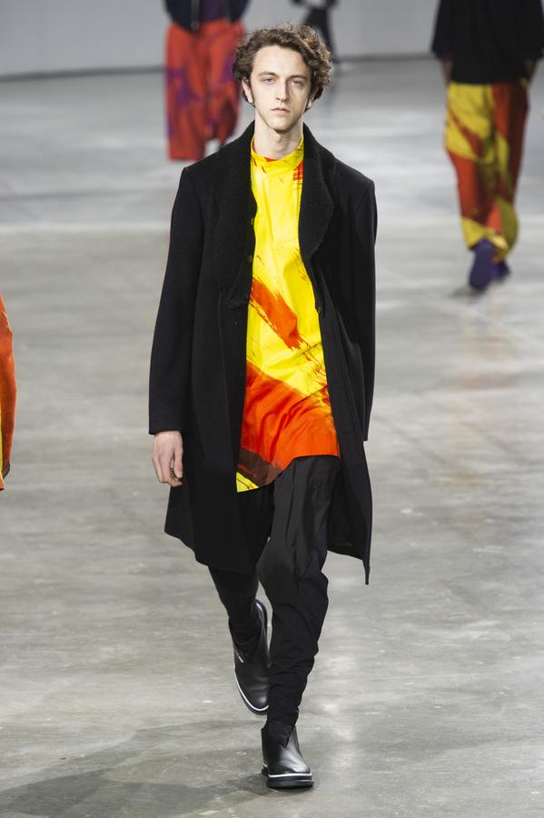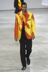 DEFILE ISSEY MIYAKE MEN AU PALAIS DE TOKYO: Pour cette nouvelle collection intitulée « Wind », le directeur artistique Yusuke Takahashi a trouvé son inspiration dans les sensations de liberté et d’énergie que procure le vent. Alliant comme toujours créativité et technicité, artisanat et technologie, il propose un ensemble très varié de silhouettes aérées, amples et colorées en s’appuyant sur différentes techniques de teinture et de tissage: batik, ikat, franges, jacquard, tweed,… Les imprimés sont du plus bel effet avec ces rayures en diagonale, horizontales et verticales, ces dégradés arty, ces délicieuses combinaisons de coloris à base d’orange et de jaune. Et, comme toujours, se dégage de l’ensemble une grande impression de confort.