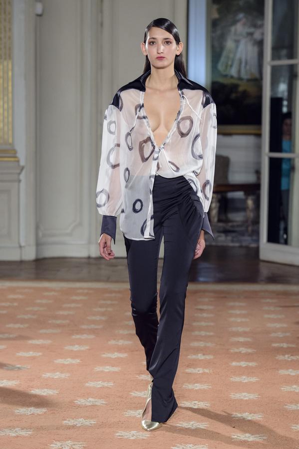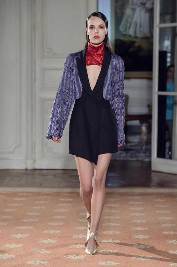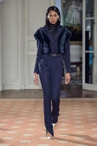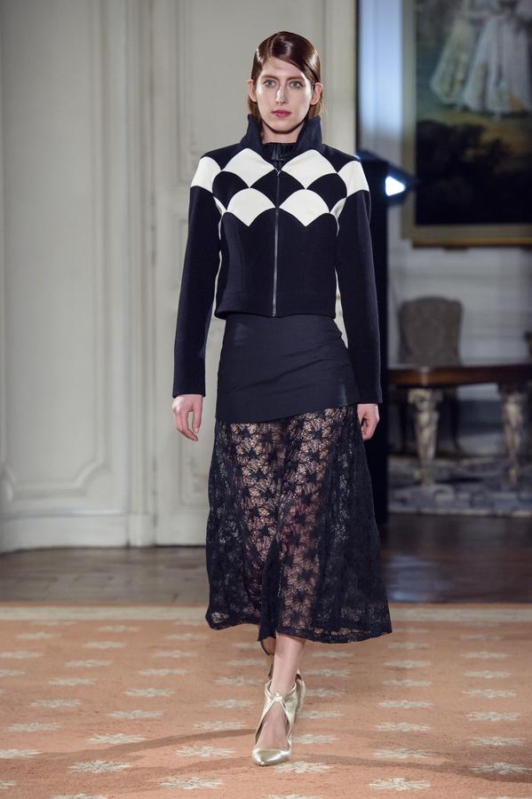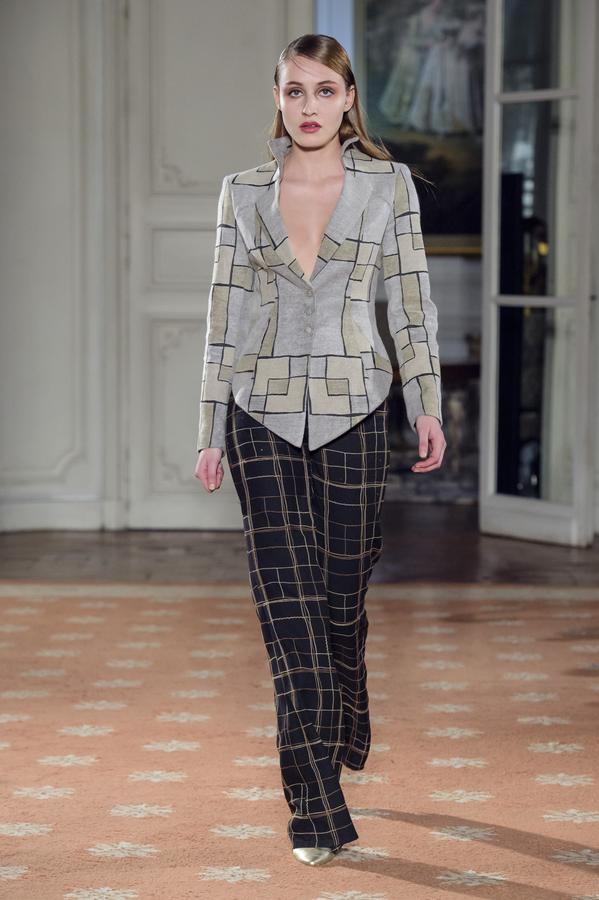 DEFILE FATIMA LOPES A L’AMBASSADE DU PORTUGAL: Une nouvelle collection toute particulière pour la créatrice portugaise qui fêtait le vingtième anniversaire de son premier défilé à Paris. Elle a donc tout naturellement tenu à rendre hommage à ses origines, à l’âme portugaise et sa mélancolie que l’on retrouve dans les paysages de sa lumineuse capitale Lisbonne. Le Portugal s’est ainsi invité dans de nombreux détails de cette riche collection. Coupes graphiques faisant écho à la « Calçada Portuguesa » et jouant sur le contraste du noir et du blanc. Robes épaulées et drapées, manteaux structurés et sophistiqués dans des matières nobles qu’affectionne la créatrice, se déclinant dans les couleurs organiques du Portugal. Des bleus profonds en cachemires et soie pour la mer et la « Saudade », des verts naturels rappelant l’intensité de la « Serra » portugaise, tout comme les bruns, ocres et autres tons de terres. Les souliers dorés en guise de rayons de soleil illuminaient cette collection très inspirée.
