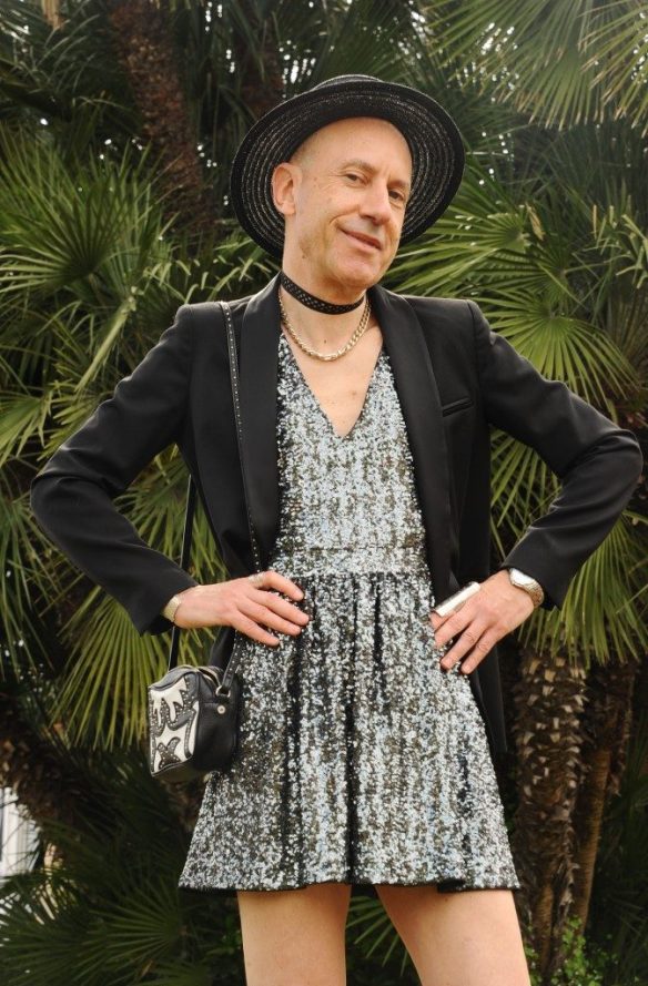 Une tenue pour briller lors de vos soirées et réceptions d’été, avec cette superbe robe Balmain, délicieusement courte, sans manches et entièrement recouverte de sequins très fins. Le succès assuré! Veste Sandro style smoking avec col châle en satin. Mini-sac à bandoulière en cuir clouté Zadig&Voltaire. Choker H&M. Collier ras-du-cou en argent Clio Blue. Chapeau en paille Maison Michel. Manchette et bagues argentées Clara Jasmine. Boots en cuir suédé What For (Photos prises à Cannes pendant le dernier Festival. Dernière photo: un grand merci à Miss Elégance pour sa tendre complicité)
