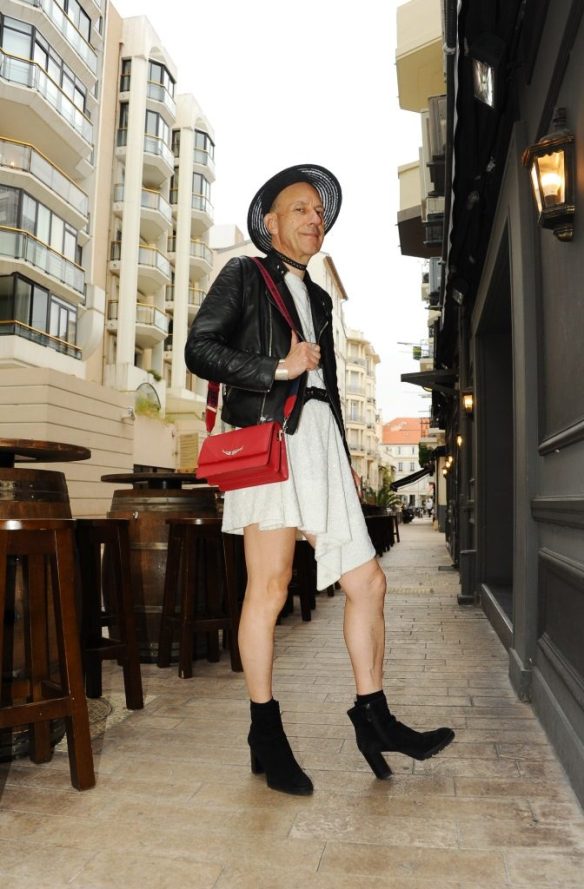 Toujours dans l’idée de composer de nouveaux looks avec des pièces des saisons précédentes, voici un look facile à porter jouant élégamment sur les oppositions de matières en combinant les sequins de la robe et le cuir du perfecto, le tout dans un trio de couleurs puissant où le petit sac rouge vient booster délicieusement le noir et blanc chic et intemporel. Robe blanche courte et asymétrique entièrement recouverte de sequins, portée avec une ceinture tressée en cuir et métal pour bien marquer la taille, l’ensemble Zadig&Voltaire. Perfecto en cuir et petit sac cartable rouge Zadig&Voltaire. Chapeau en paille à larges bords Maison Michel. Choker H&M. Sautoir en argent Clio Blue. Manchette et bagues en métal argenté Clara Jasmine. Boots en cuir suédé What For.