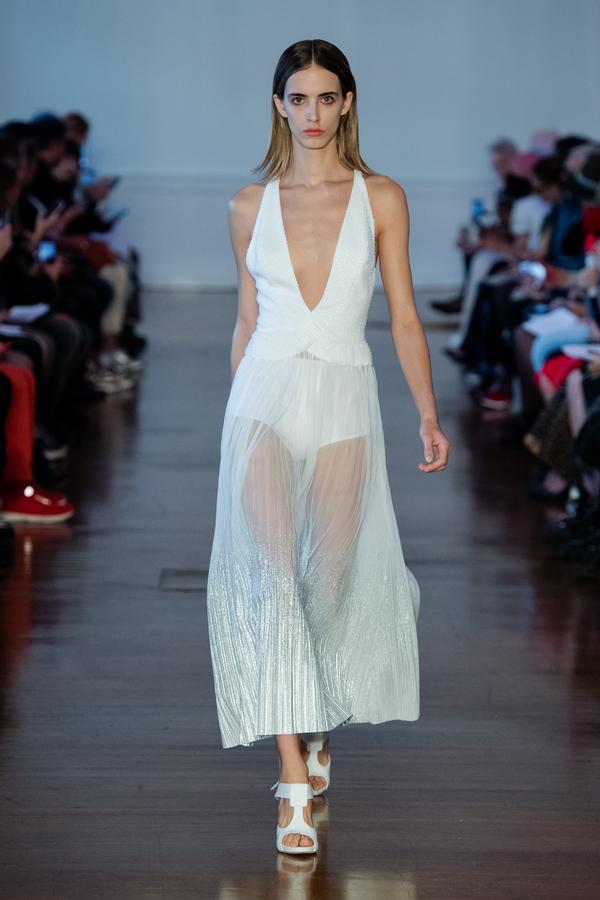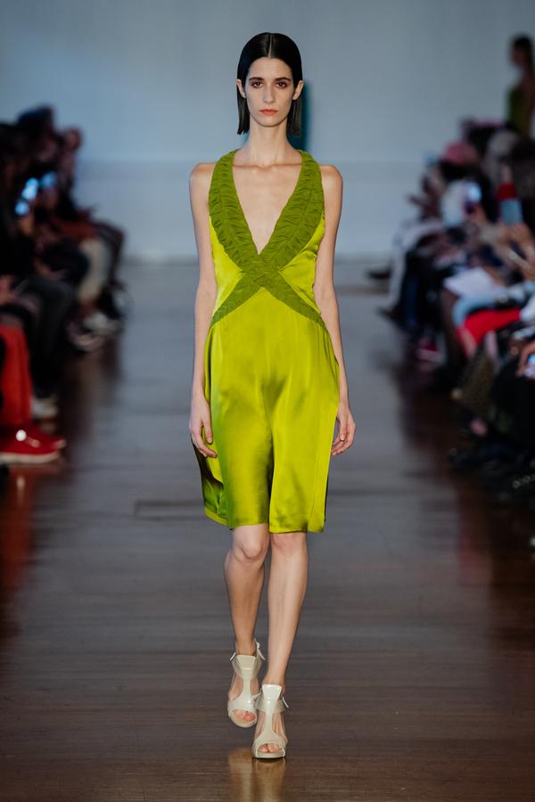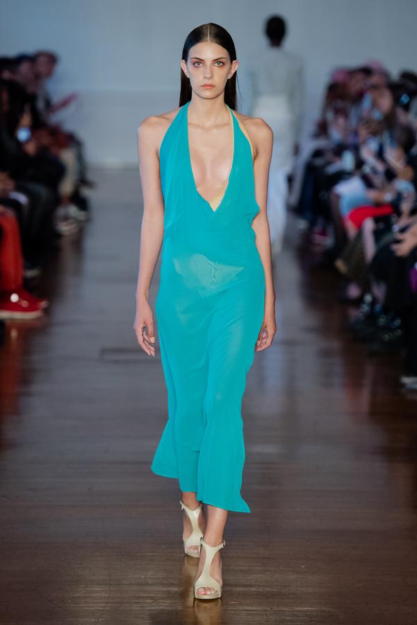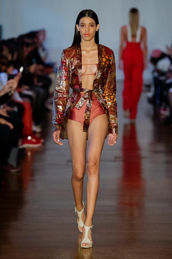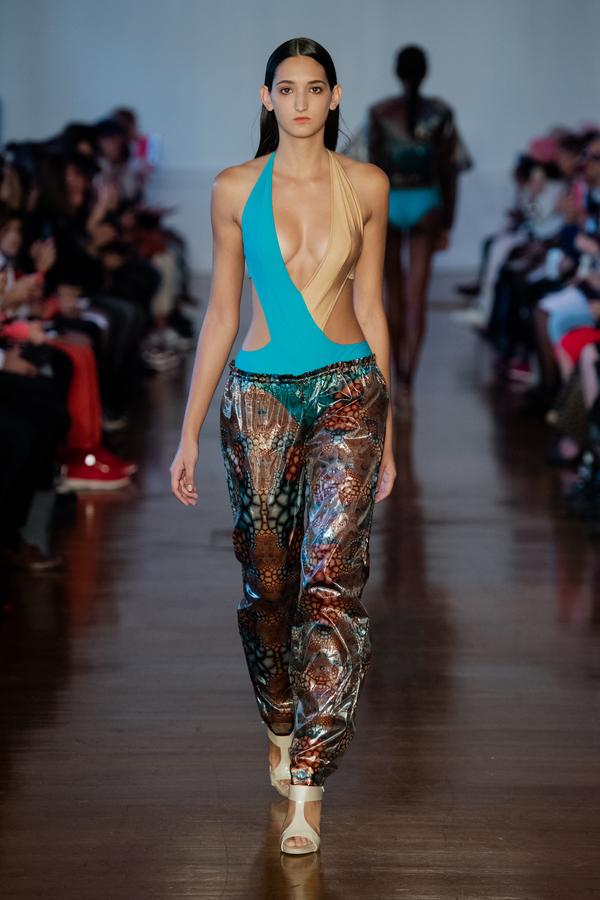 DEFILE FATIMA LOPES AU SALON DES MIROIRS: La créatrice portugaise a présenté une nouvelle collection intitulée « Exotic Nature », inspirée par l’esthétisme, la poésie et le raffinement des fleurs exotiques. Les silhouettes chic se déclinent dans des couleurs franches (verts exotiques, secs et subtils, turquoises lumineux, rouges intenses) qui se combinent à des nudes, saumons et roses délicats, des noirs absolus et des blancs purs. Trikinis graphiques pour la plage. Robes cocktail longues aux drapés onctueux. Mousselines de soie, laines froides, viscoses, mélanges singuliers de dentelles pailletées et de plumes, transparences… Une élégance moderne et intemporelle.