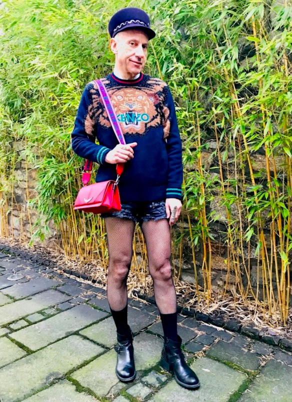 L’hiver c’est toujours le plaisir de porter de jolis pulls bien chauds et très colorés. Et la marque Kenzo nous comble chaque année avec de magnifiques pulls revisitant son fameux logo Tigre avec une touche à la fois sauvage et toute en délicatesse. Pour finaliser ce look: casquette officier en feutre « Abby », avec chaîne en métal, Maison Michel (collection automne-hiver 2019/2020); mini-sac rouge en cuir à bandoulière Zadig&Voltaire; short en jean noir agrémenté de détails métalliques; bagues en métal argenté Clara Jasmine; collant résille; chaussettes épaisses en laine; boots en cuir Minelli.