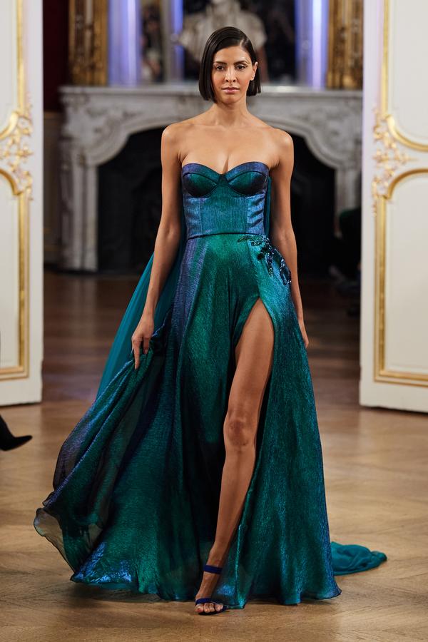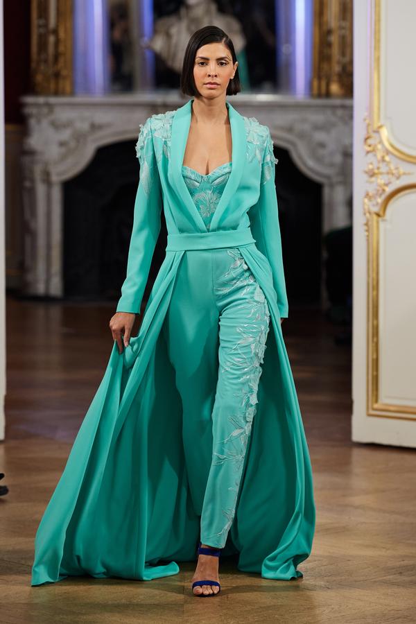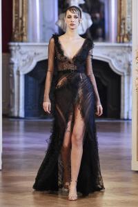 DEFILE ALEEM YUSUF A L’HOTEL LE MAROIS-FRANCE AMERIQUES: Avec cette nouvelle collection intitulée « Obsession » le créateur d’origine pakistanaise basé à Melbourne (Australie) explore les variations de l’amour, de l’individualité et de la beauté, comme autant de pétales d’une rose. Inspiré par les formes féminines, il entend traduire toute la sensibilité naturelle de la femme, sa délicatesse et les contrastes entre sa force intérieure et sa beauté fragile, dans une collection reprenant les bases de la couture traditionnelle: drapés provenant de tissus luxueux, recours aux techniques séculaires, attention portée au détail. Comme à son habitude le premier look en noir est un hommage au « noir Melbourne » porté par les Melbournois en toutes saisons.