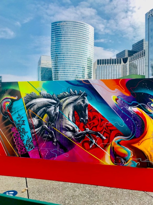 Du 16 au 20 septembre 2020 s’est tenue à Paris La Défense l’Urban Week 2020, un très sympathique événement dédié aux cultures urbaines, avec en particulier du streetart, mais aussi du sport et des stands de jeunes créateurs de mode et de design. Je vous présente ci-après les oeuvres conçues par les 15 street-artistes internationaux invités (dans l’ordre des photos: Koga, Gera1, Graff Matt, Jana&JS, Anna Conda, Raptuz, Abys, Phen, Xkuz, Iota, Raf Urban, Kraser, Scaf, Huariu, Smak3). Les oeuvres ont été réalisées sous les yeux des visiteurs, par chaque artiste, pendant les trois premiers jours de l’événement. Le résultat est fabuleux par la diversité et la confrontation des inspirations et styles de chacun.