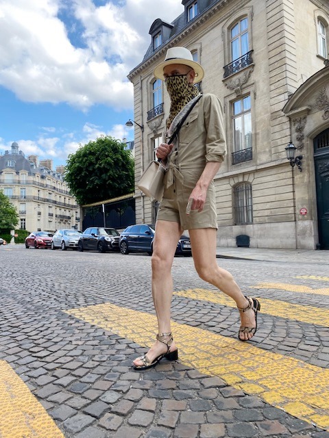 Pour l’été un combi-short est toujours une bonne idée. C’est une pièce à la fois chic et facile à porter. Alors, prêt(e) pour un safari urbain avec ce combi-short beige de la collection été 2021 de Zadig & Voltaire, comme l’ensemble des pièces de ce look? Combi-short en coton, avec ceinture et poches boutonnées « Cooki Twill ». Chapeau de paille « Girls Can Do Anything Paper Hat, Navy ». Masque foulard en coton biologique « Cecilia ZV Initiale ». Sac en cuir blanc avec détails en métal argenté « ZV Initiale Le City ». Sandales à talons mi-hauts, en cuir imprimé python avec clous « Ever Heel », coloris désert. Manchettes et bagues Clara Jasmine.