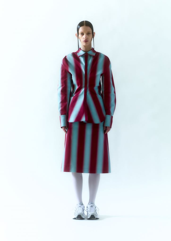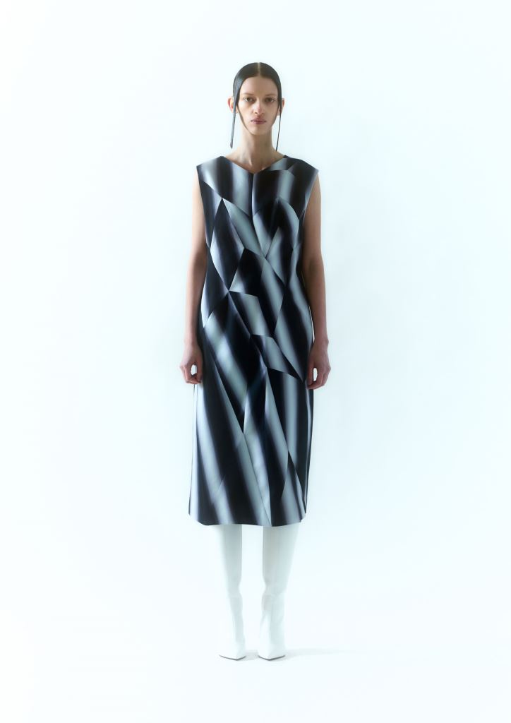 HANKIM: La marque propose une vision moderne de la féminité alliant humour et inspirations oniriques. Intitulée « Fly me to the moon », la collection combine coupes expérimentales, imprimés Op Art et silhouettes longilignes.