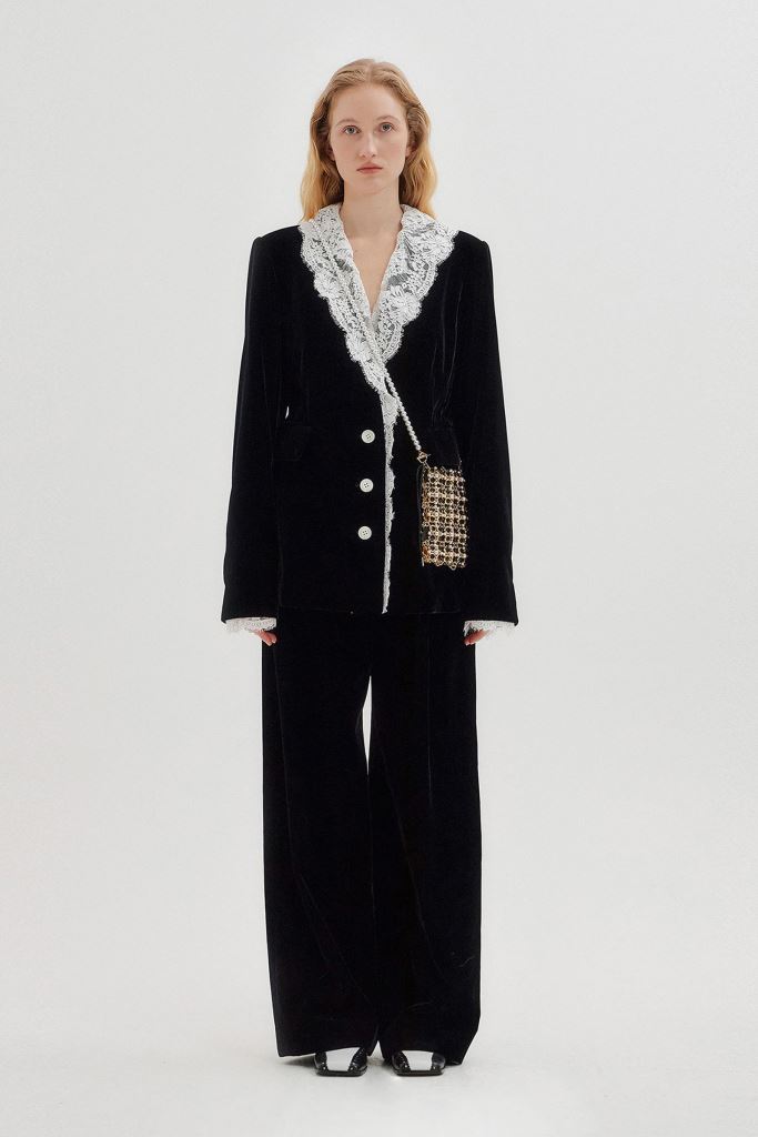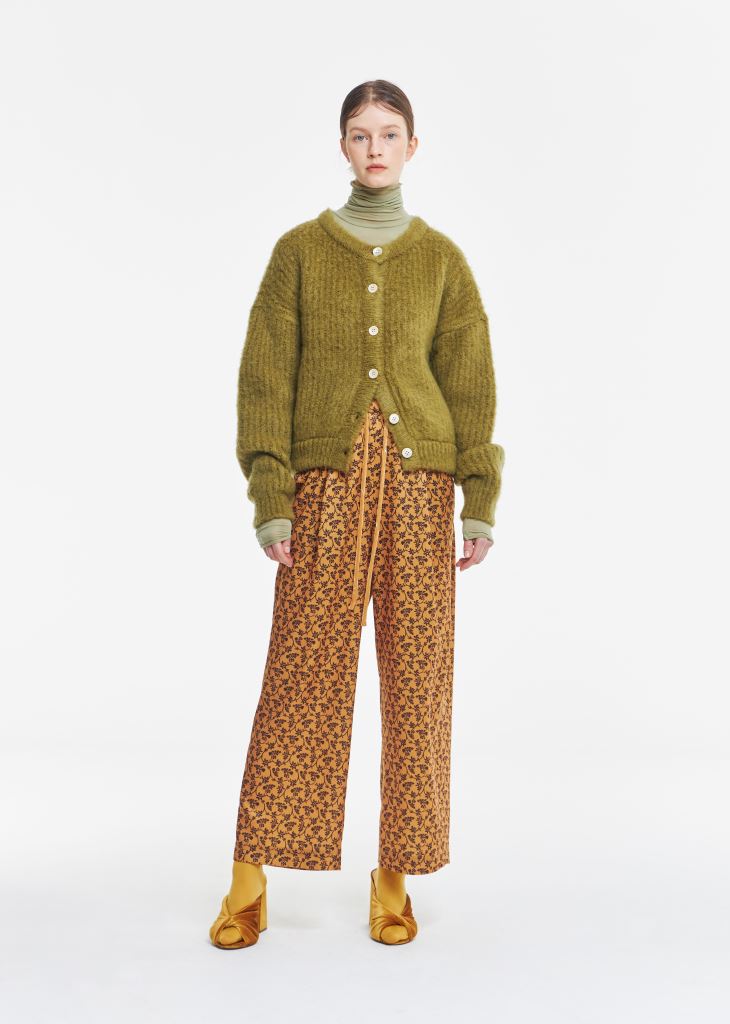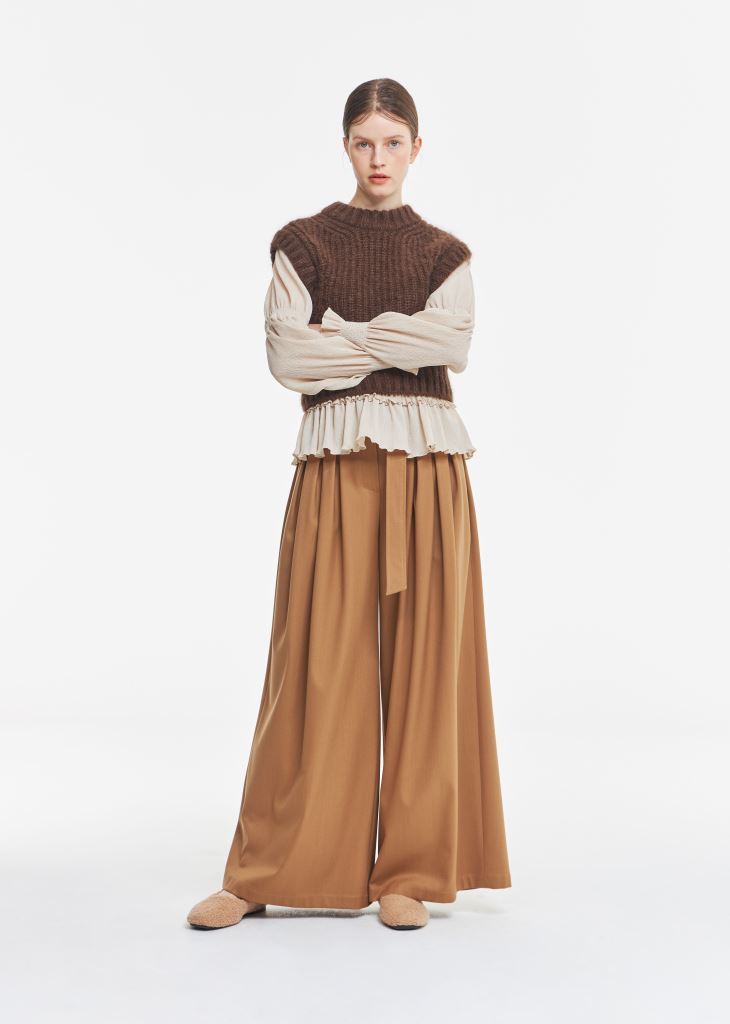 NEUL: Un style excentrique décliné dans une multitude de silhouettes et de matières. Des silhouettes intemporelles sont revisitées à l’aide d’une palette de couleurs détonante et de motifs complexes. Le familier se trouve décalé grâce à des détails inattendus. De cette collection intitulée « Boudoir » ressort une certaine élégance romantique à tonalité vintage.