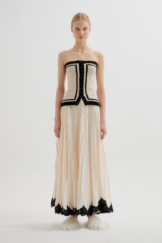 EENK: La marque propose une approche créative, joueuse et atypique. Superpositions pleines d’imagination,multiplicité des matières et souci du détail se déclinent dans des combinaisons particulièrement originales. La collection intitulée « T for Temptation » navigue entre retenue et audace troublante.