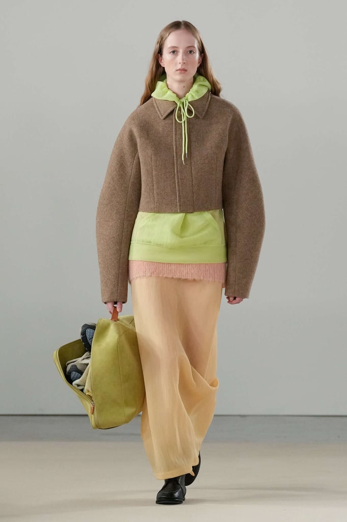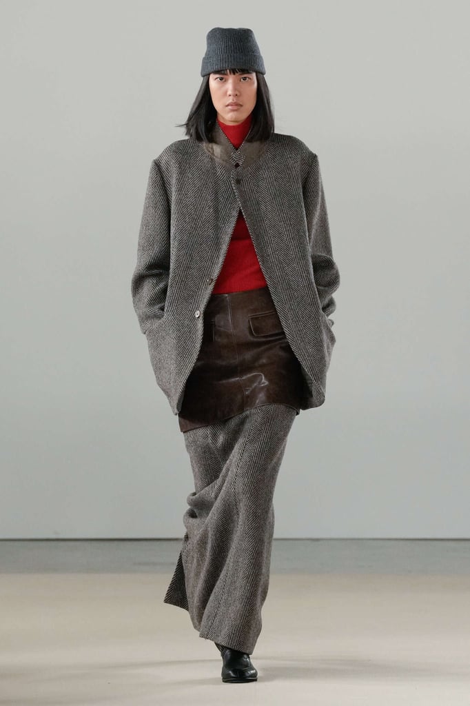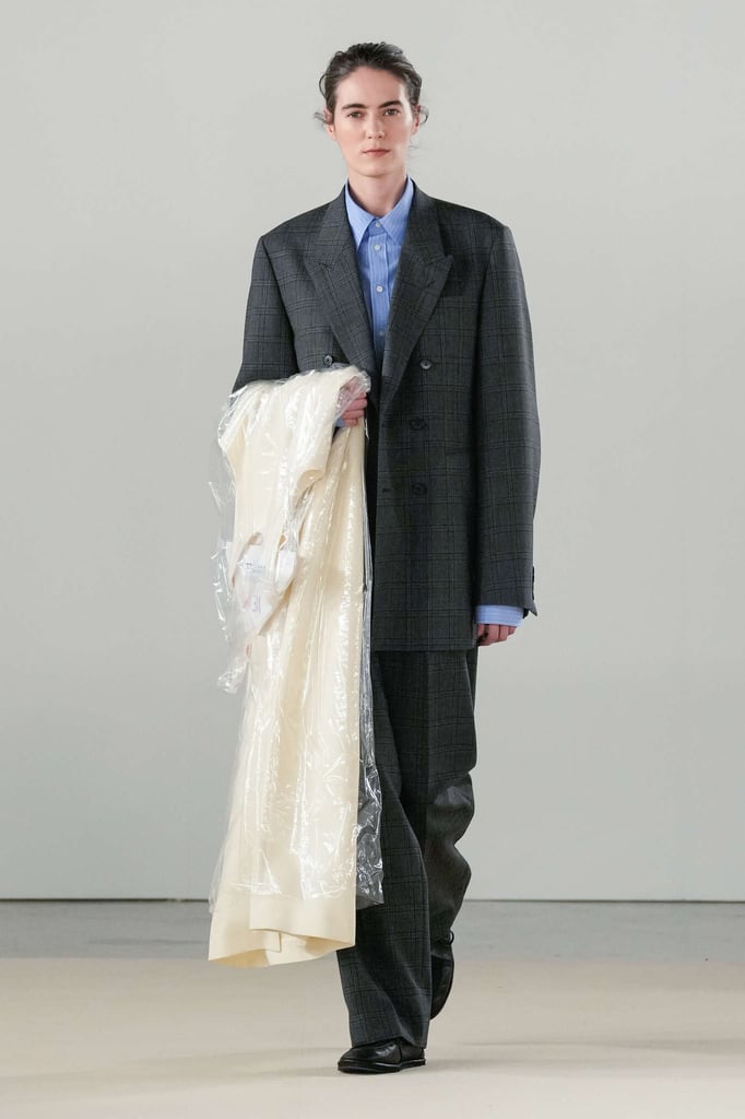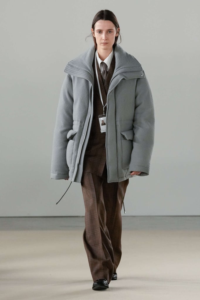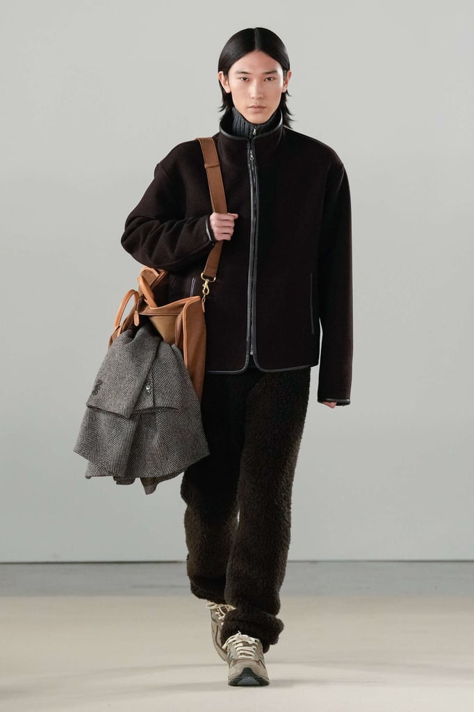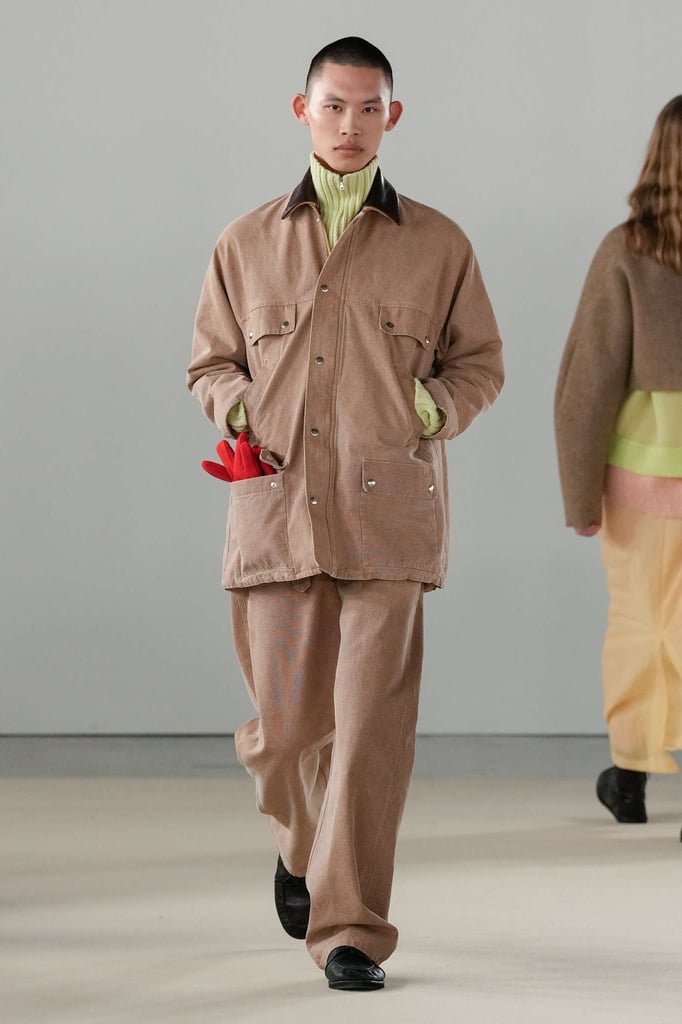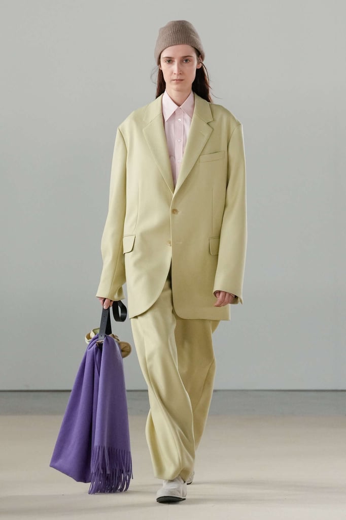 DEFILE AURALEE AU PALAIS DE TOKYO: La marque japonaise fondée en 2015 par Ryoto Iwai à Tokyo proposait son premier défilé à la Fashion Week parisienne (après être intervenue depuis plusieurs années dans le programme des présentations). Dans cette collection mixte toute en délicatesse le créateur revisite le vestiaire du quotidien en mettant en avant de somptueuses matières développées par la marque elle-même. Il imagine ce moment particulier qui caractérise la fin d’une journée de travail, quand on sort du bureau avec l’envie de rentrer chez soi ou la perspective d’une soirée au théâtre ou entre amis. Certains hommes ont le temps de passer au pressing récupérer leur tenue pour le dîner, d’autres ont mis leur doudoune ou leur chandail dans un sac, tandis que quelques-uns ont encore le badge du bureau autour du cou. Les mannequins arborent une élégance nonchalante, mélangeant avec un chic indéniable de l’outerwear, des pièces de workwear, comme cette veste en denim qui semble taillée dans ces grosses toiles servant à confectionner les typiques combinaisons de travail beiges, et un habillement de bureau plus classique à base de costumes aux proportions simples et confortables. Le créateur s’amuse à mixer et superposer habits et matières. La veste courte en tweed aux manches légèrement arrondies s’enfile sur un hoodie à capuche ultra doux, lui-même superposé à un pull-over ultra léger en cachemire. Le coupe-vent mauve long se porte sur la gabardine, qui protège à son tour du costume. Des couleurs incisives comme le rouge, le turquoise ou le violet s’immiscent avec naturel dans une palette de tons pastels. De superbes cabans sont réalisés dans une nouvelle matière, une laine éponge double-face. Une doudoune-parka en alpaga est à la fois résistante et légère. Les manteaux tombent impeccablement, tandis qu’en guise de chemise, une femme endosse sous la veste de son tailleur un cardigan mandarine impalpable. La qualité est omniprésente, s’exprimant à travers la douceur et la fluidité des vêtements.