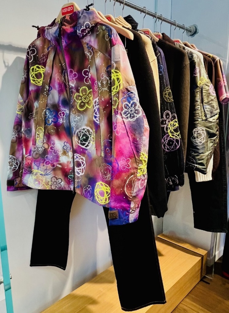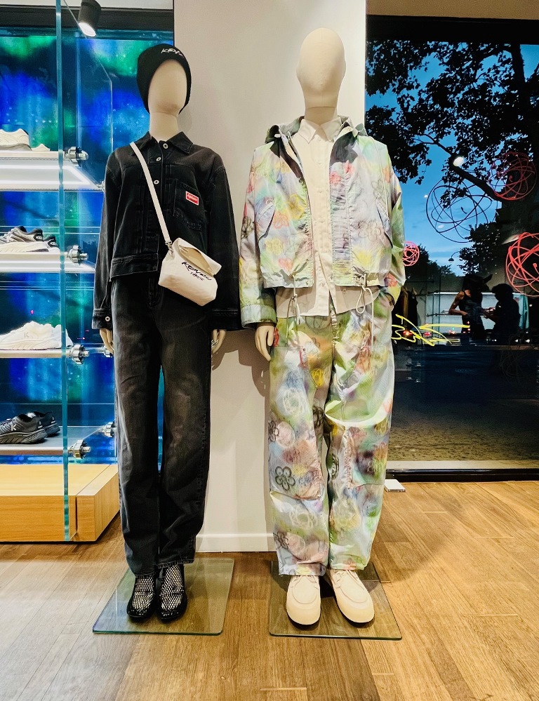 La Maison Kenzo vient de dévoiler une collaboration exclusive avec l’artiste Futura 2000, pionnier du graffiti dont la pratique s’est développée au cours des années 1970 dans la ville de New York. Il a été l’un des premiers artistes à introduire des formes abstraites dans l’art, repoussant les barrières et répandant son style futuriste dans les galeries d’art pendant les années 1980. La pièce phare de cette collection particulièrement réussie est un coupe-vent court en nylon à la coupe décontractée, garni d’un imprimé combinant le motif Boke Flower signature de Kenzo et le symbole Atom de Futura 2000, sur un fond coloré dégradé qui rappelle les graffitis (collection homme). Cet imprimé se retrouve également sur un magnifique pantalon en soie à taille élastique (collection femme), ainsi que sur un pantalon en nylon en bleu dominant à la coupe loose et avec des cordons de serrage à la cheville soulignant son inspiration urbaine (collection homme).