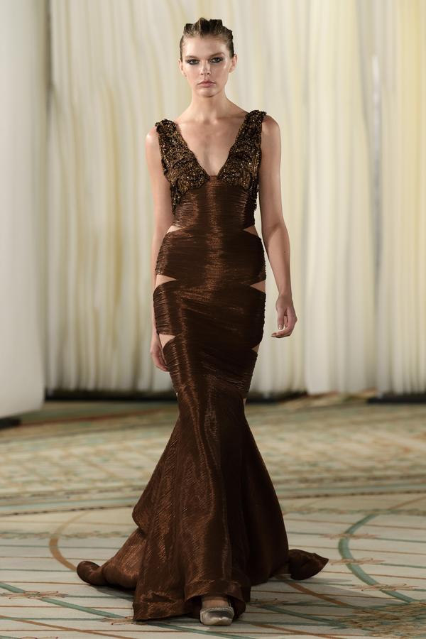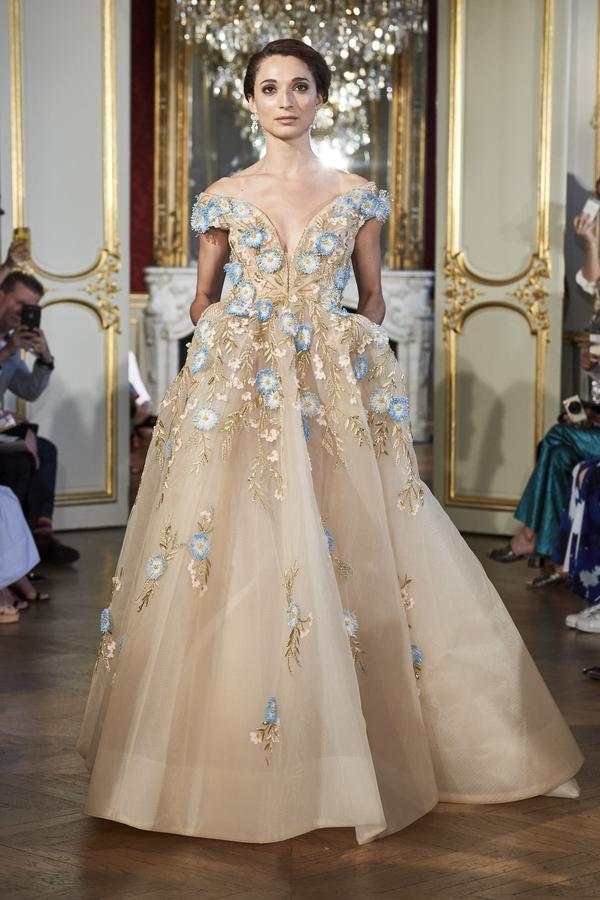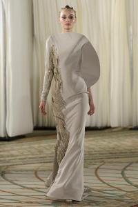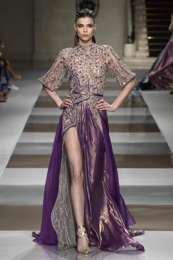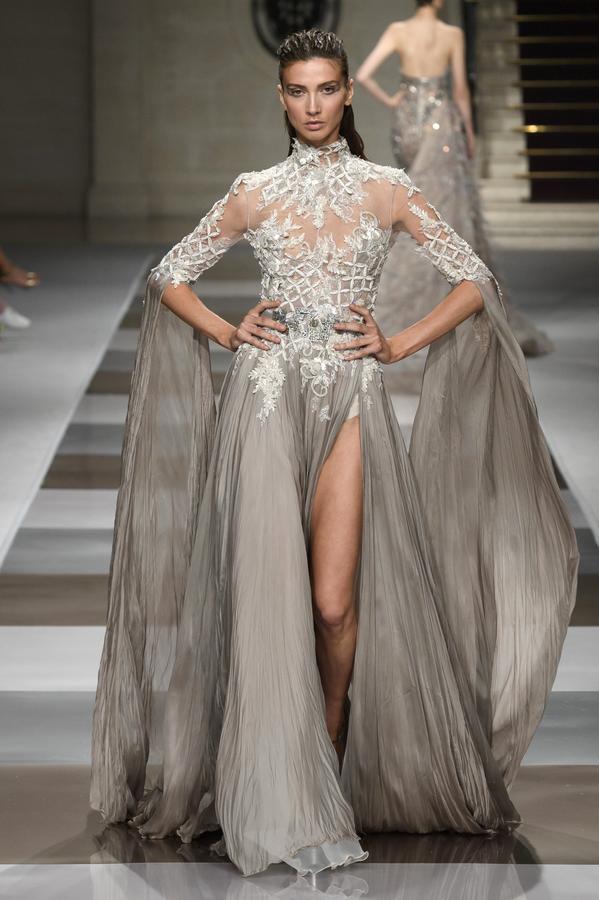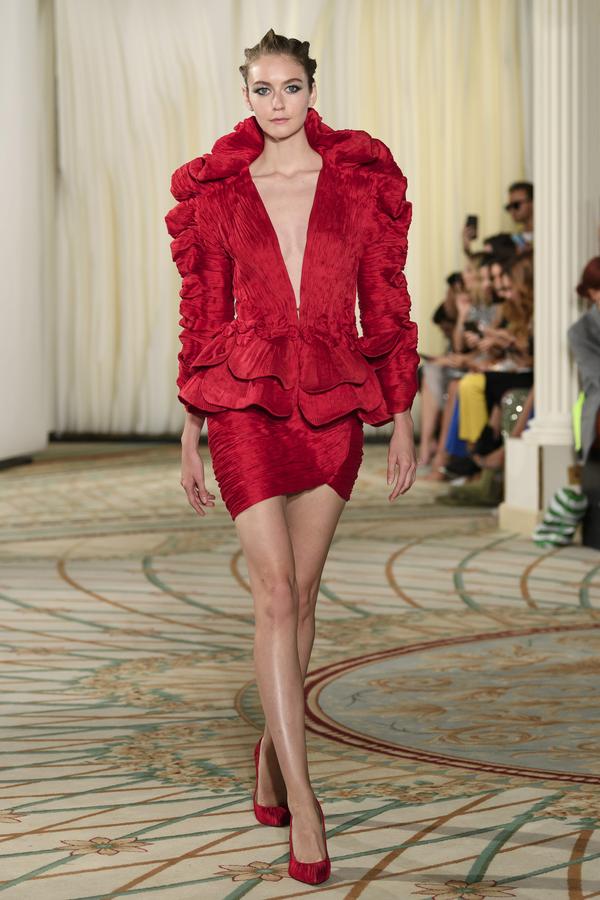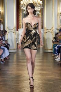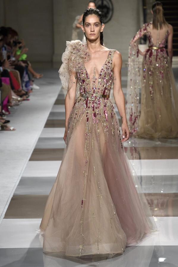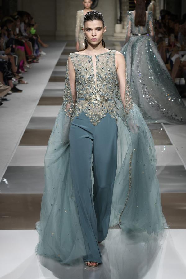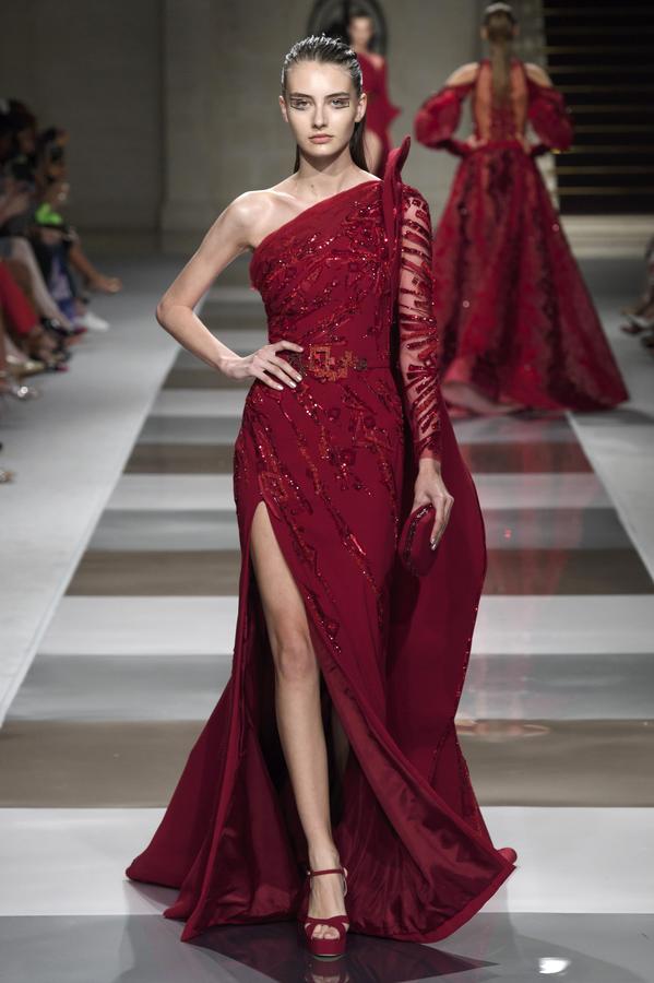 DEFILE ZIAD NAKAD AU PAVILLON CAMBON CAPUCINES: Pour cette nouvelle collection intitulée « Tessera » le couturier libanais s’est inspiré de la mosaïque antique et réalise ainsi une ode à l’architecture et à la géométrie. Mélangeant les tulles avec les chiffons, la dentelle et le velours, et maîtrisant parfaitement les coupes et les volumes, il donne à ses créations une dimension architecturale empreinte de modernité. Les silhouettes très féminines présentent des tailles marquées, ainsi que des manches oversize et asymétriques obtenues grâce à de véritables prouesses techniques tout en donnant une grande impression de légèreté. Les broderies ont été imaginées comme un assemblage de tesselles d’une mosaïque. Tout ceci se décline dans une palette de couleurs variées et raffinées avec du rouge, du bleu, du doré, de l’argenté et des pointes de noir.