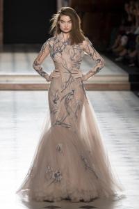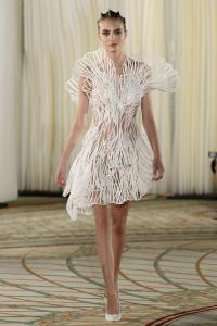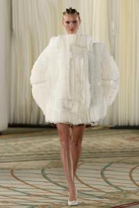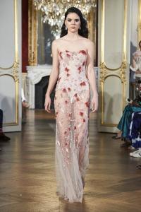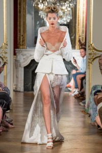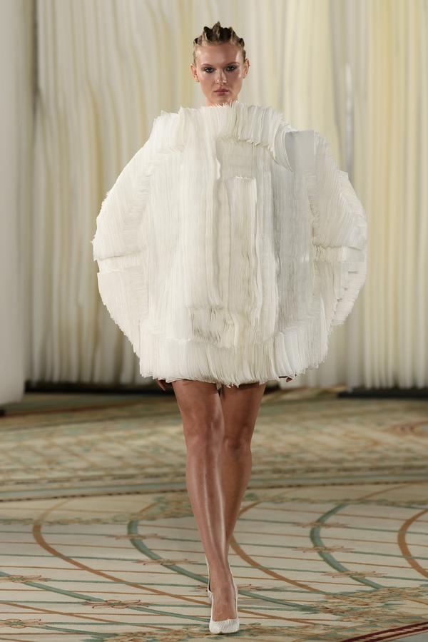 DEFILE TONY WARD A L’HOTEL INTERCONTINENTAL LE GRAND: Pour cette nouvelle collection intitulée « Blossoming Fibers » (fibres fleurissantes) le créateur libanais s’est inspiré de la première forme de vie connue dans l’univers, le champignon, et son côté un peu mystique. Il a ainsi cherché à transposer leur multitude de formes et d’espèces dans des volumes vertigineux obtenus grâce à l’introduction, pour la première fois, de l’impression 3D. Il a imaginé des organzas pliés en mille-feuilles, à l’image des branchies ornant leurs corolles. Les têtes spongieuses sont réinventées en formes volumineuses. Les broderies en fil-coupé et soie redessinent la structure filiforme du mycelium. La palette de couleurs allant du blanc au rouge profond en passant par le brun noyer et un bleu céleste nous plonge dans l’univers des sous-bois.