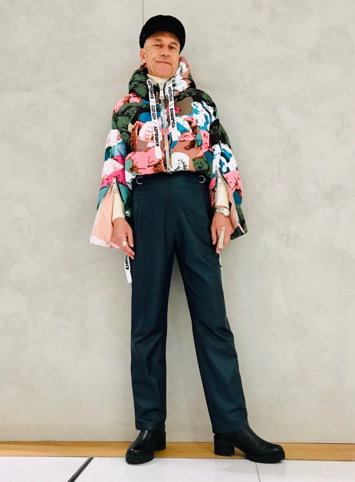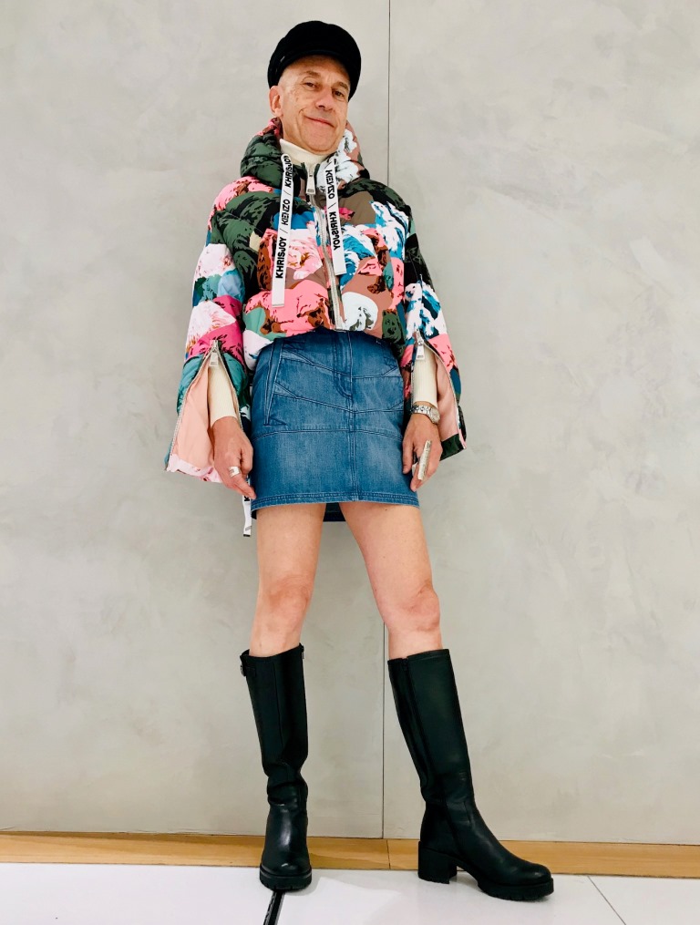 Je vous propose ci-après deux modèles particulièrement désirables: une doudoune croppée à manches longues, et une autre sans manches. Pour la première, je l’ai assortie successivement à un superbe pantalon en cuir lisse bleu à taille large et à une mini-jupe en jean bleue à effet délavé (le tout, collection Kenzo AW21). Pour la seconde, je l’ai combinée à une robe T-shirt noire asymétrique « Kenzo Logo » en coton organique (également collection Kenzo AW21). Tous les looks ont été finalisés avec des bottes en cuir de la marque espagnole Manas, une casquette Galeries Lafayette et mes bagues préférées de Clara Jasmine (jeune créatrice de bijoux parisienne qui vient d’ouvrir sa propre boutique dans le Marais à Paris au 79 rue Charlot).